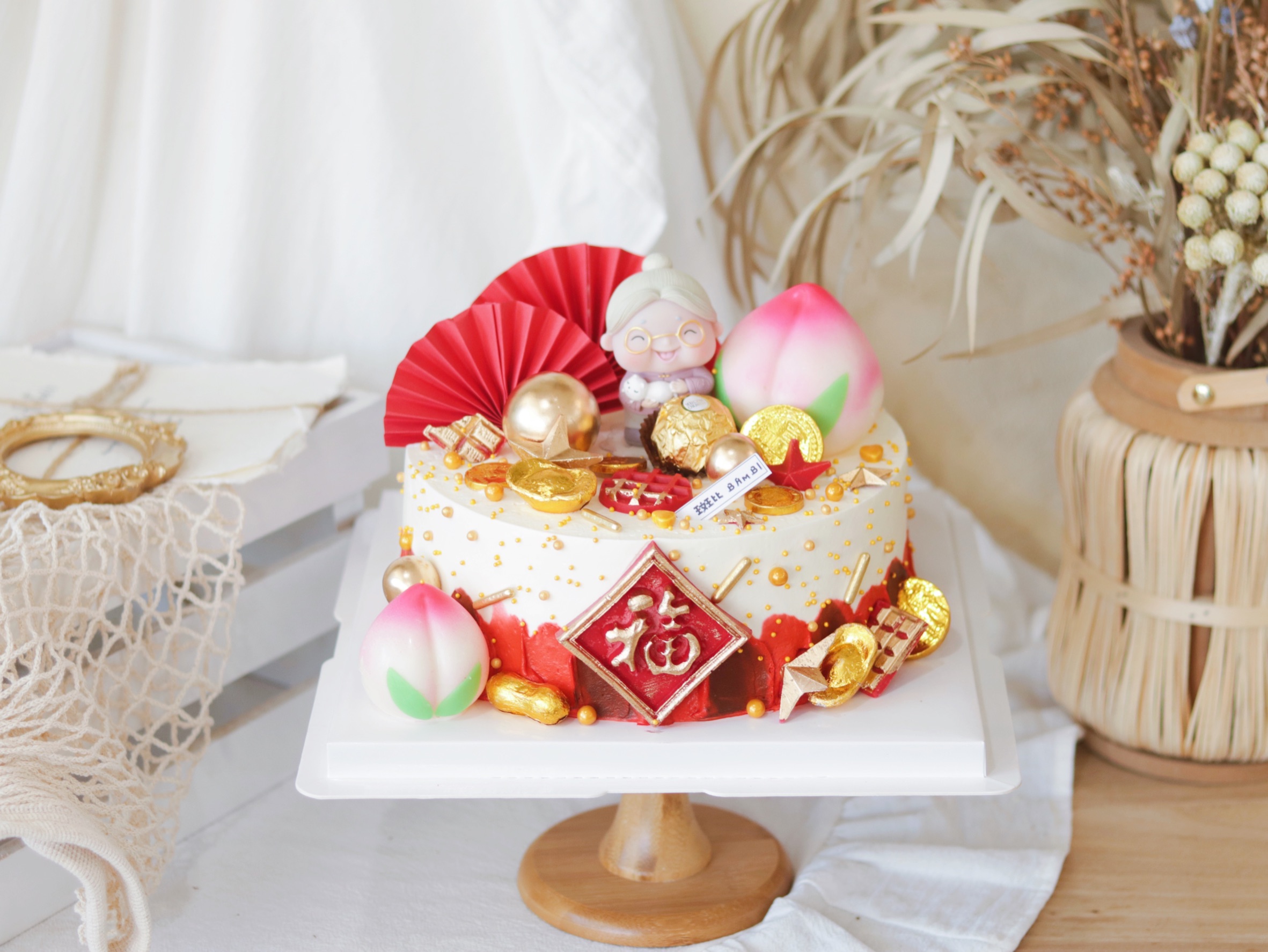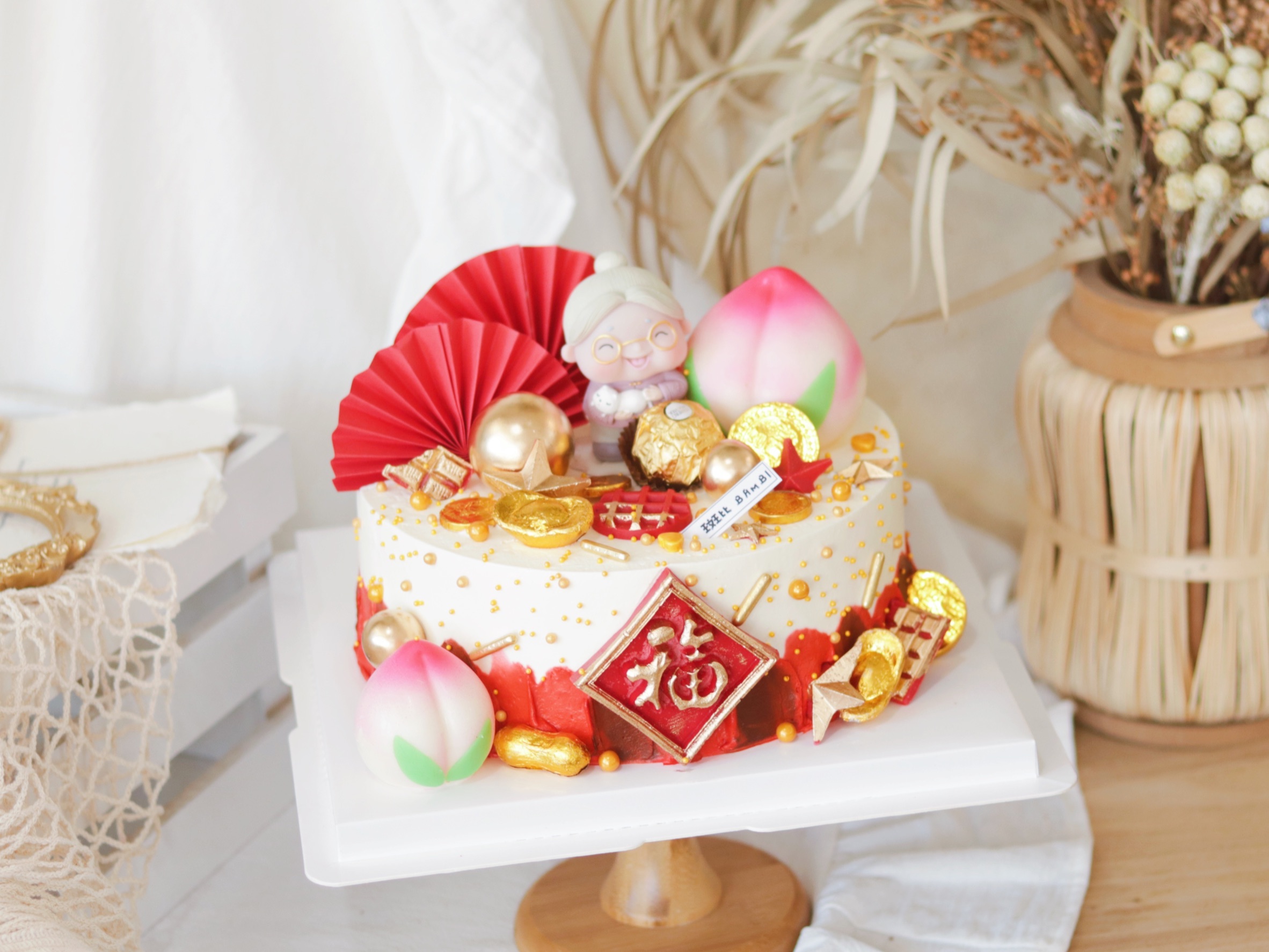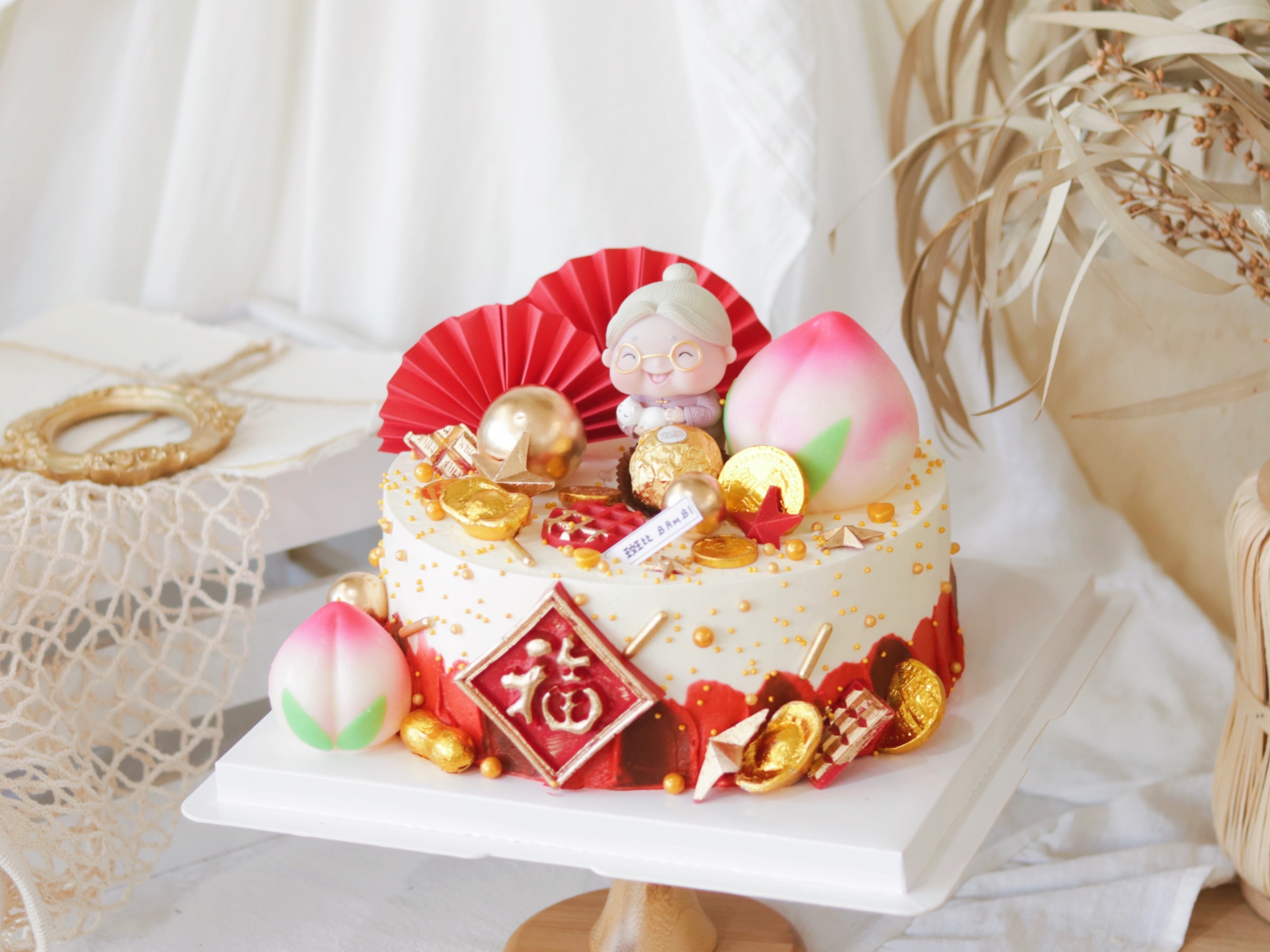 喜庆老奶奶老公公贺寿蛋糕