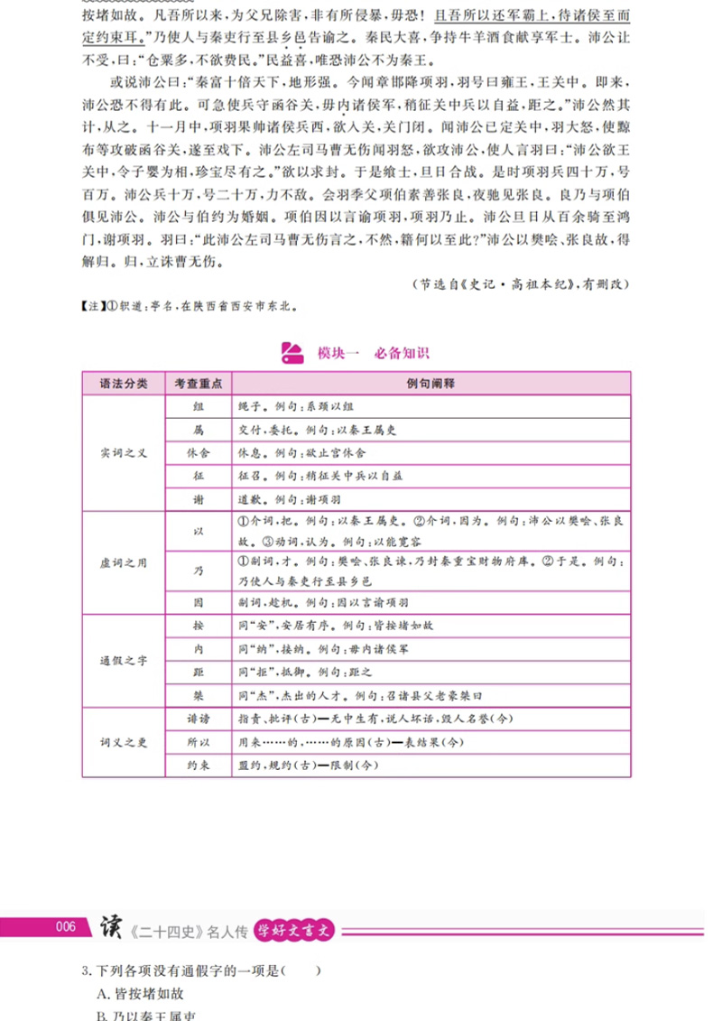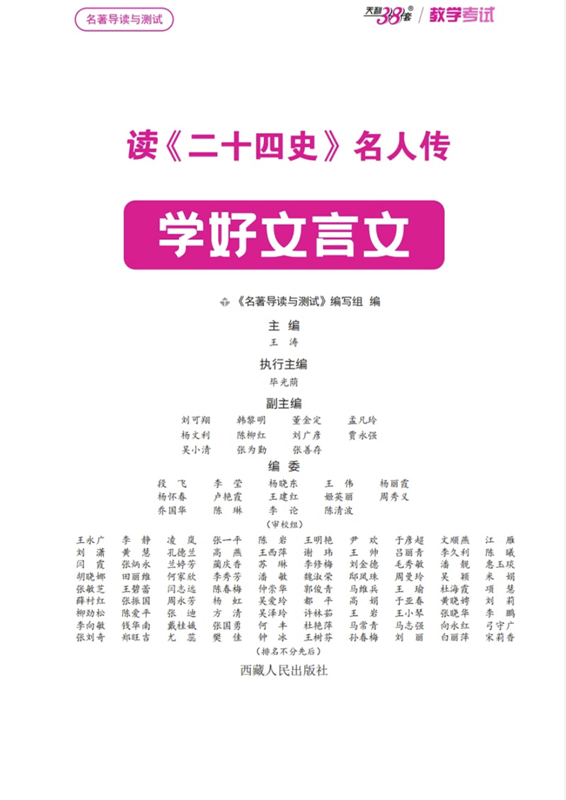 天利38套 王涛新课标大语文 读二十四史名人传 学好文言文