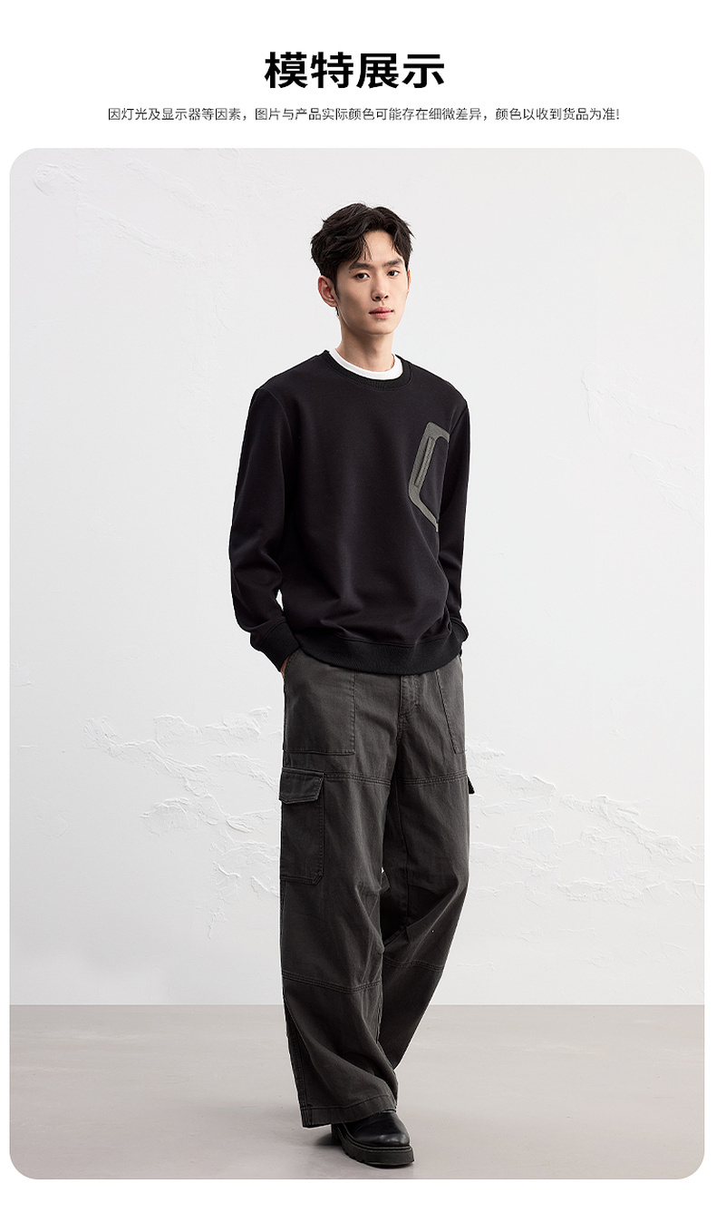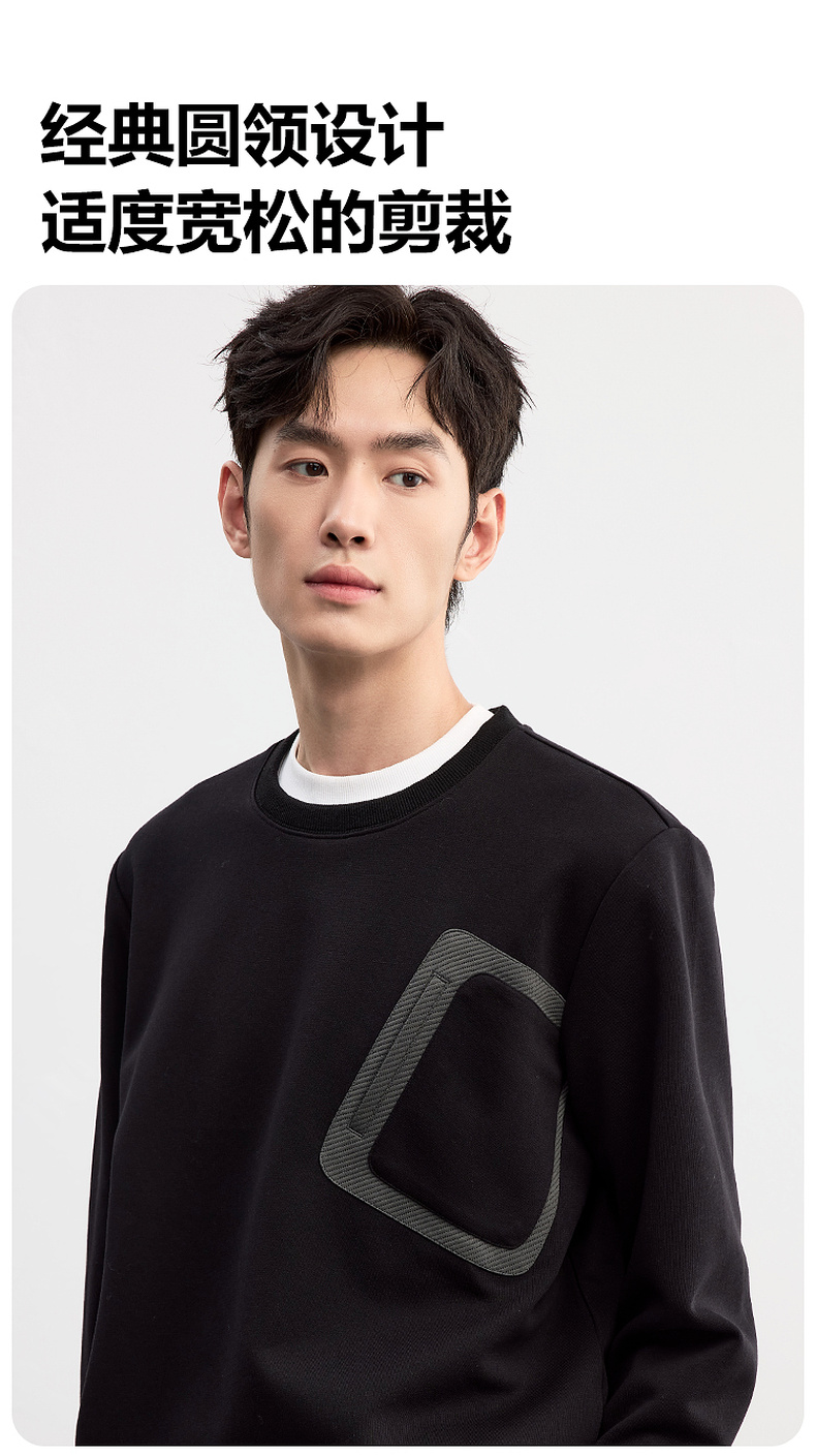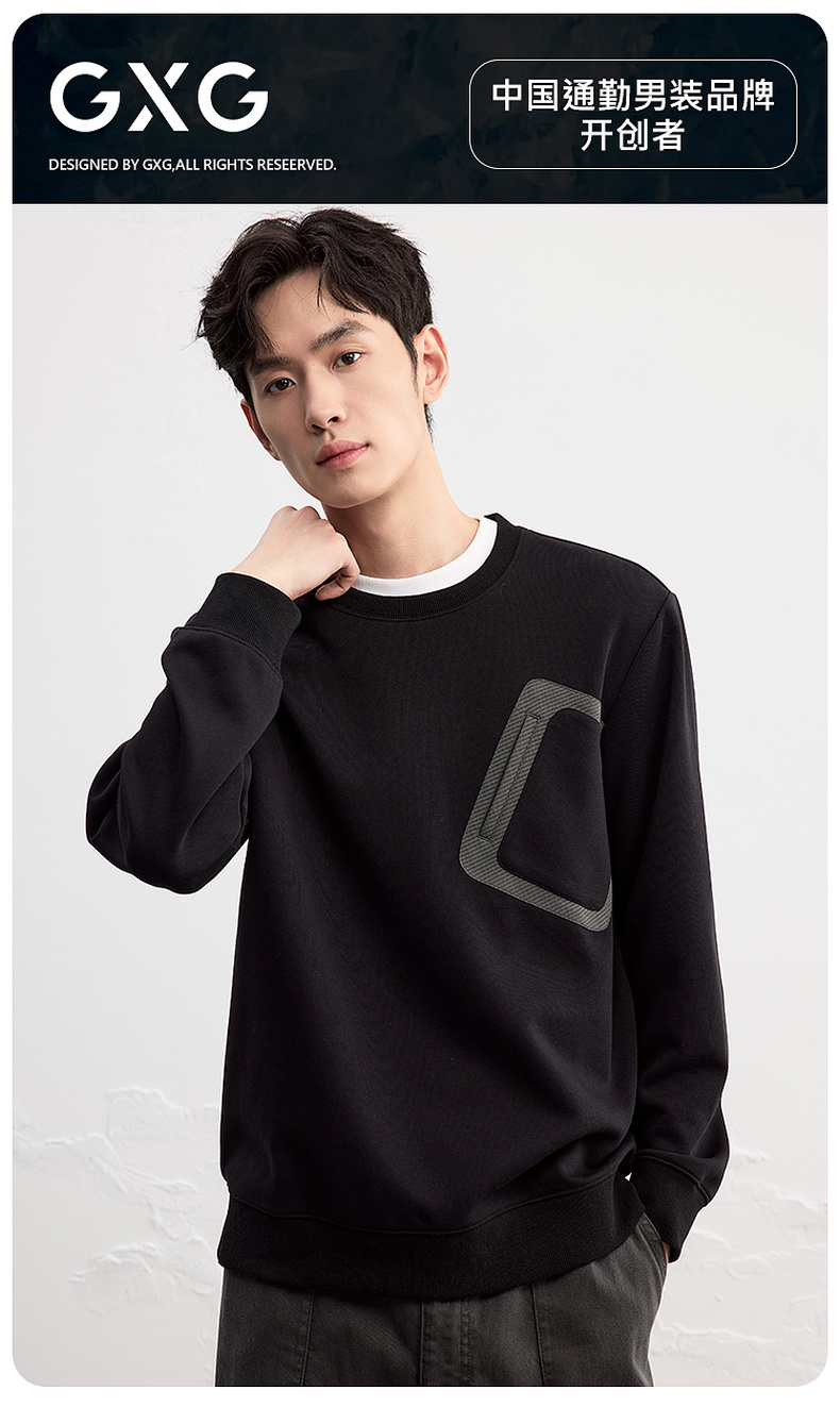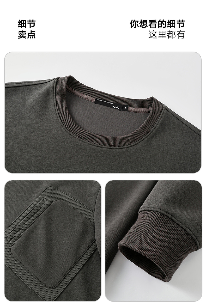 GXG男装25秋季时尚潮流口袋简约百搭运动宽松休闲男式圆领卫衣K&C