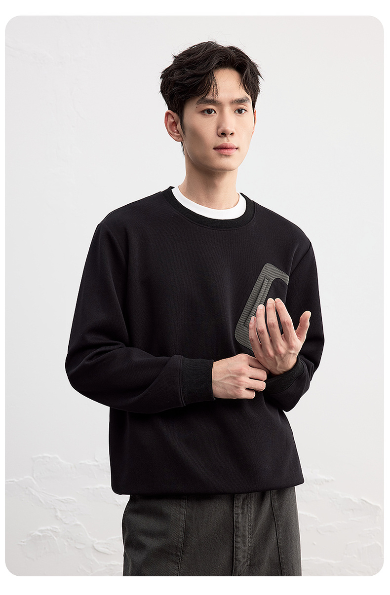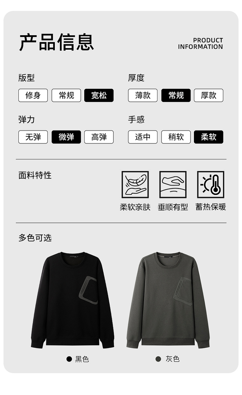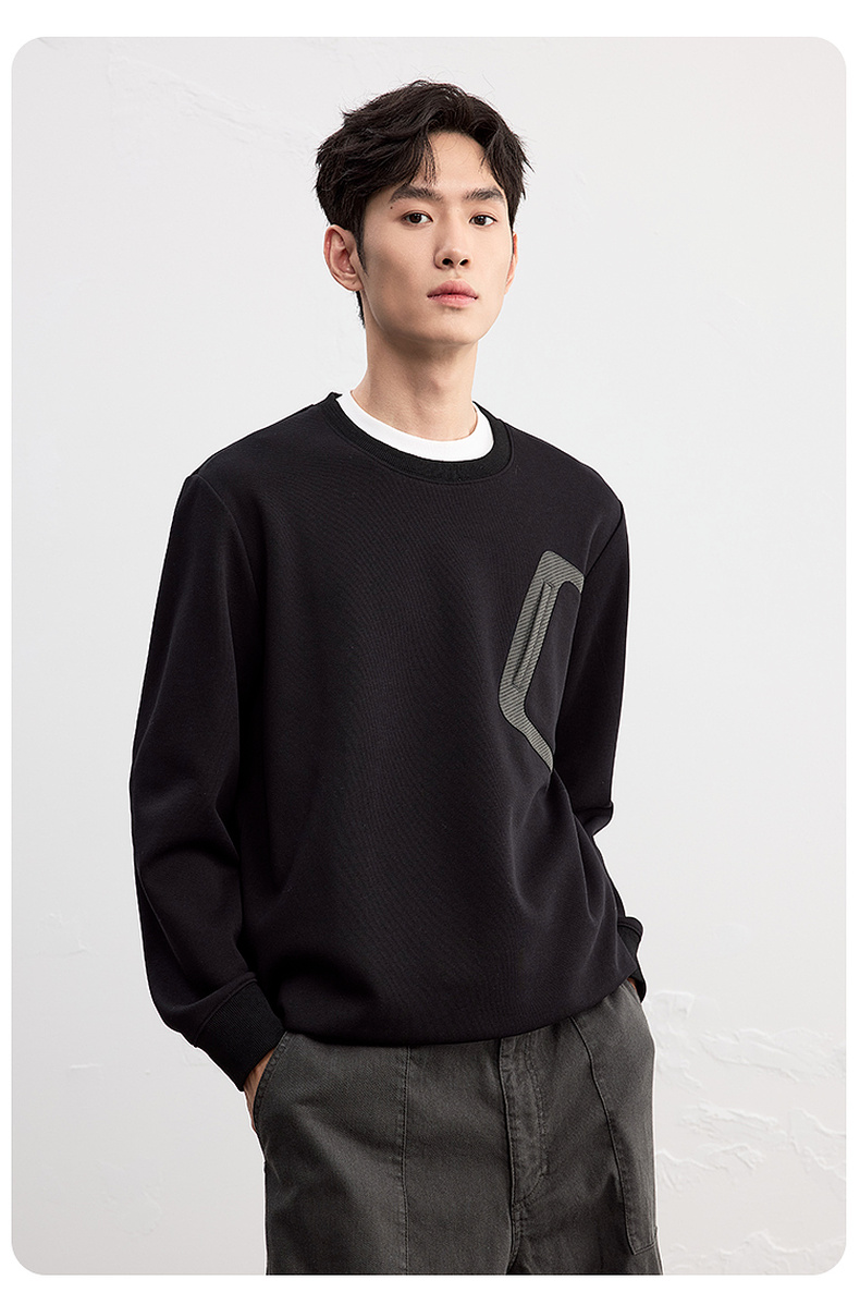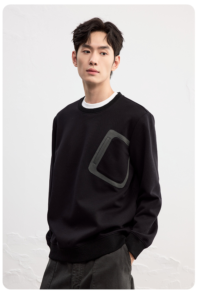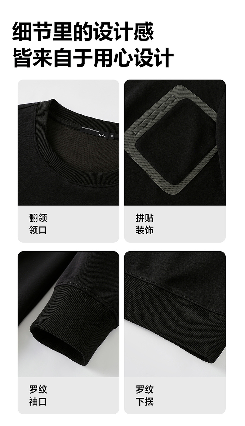 GXG男装25秋季时尚潮流口袋简约百搭运动宽松休闲男式圆领卫衣K&C