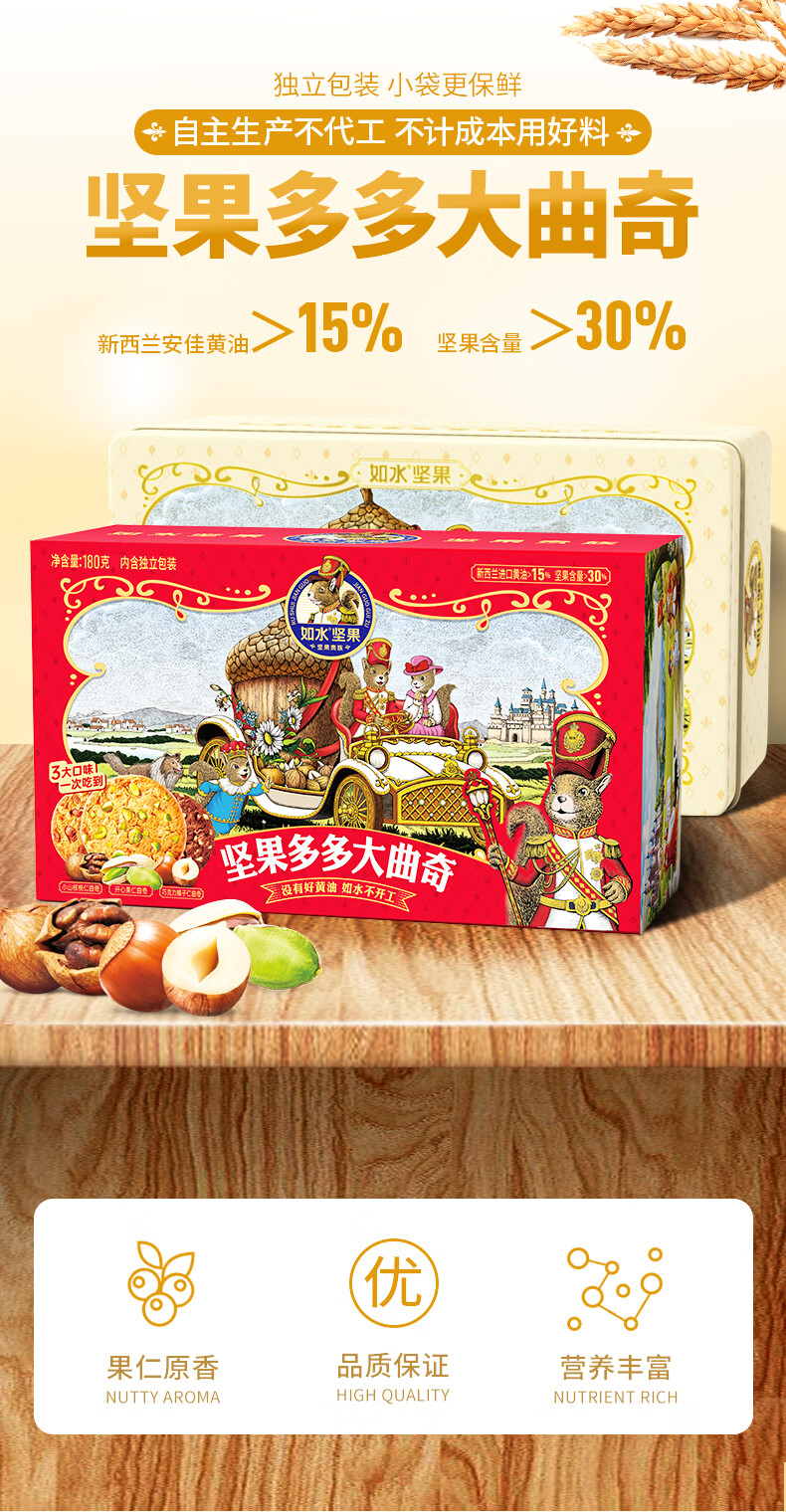 如水坚果多多大曲奇(180g多多方铁盒)180g