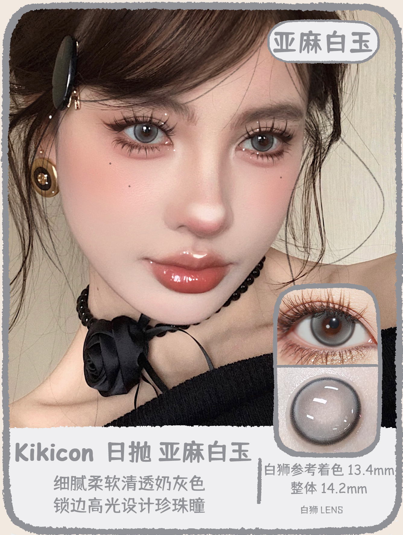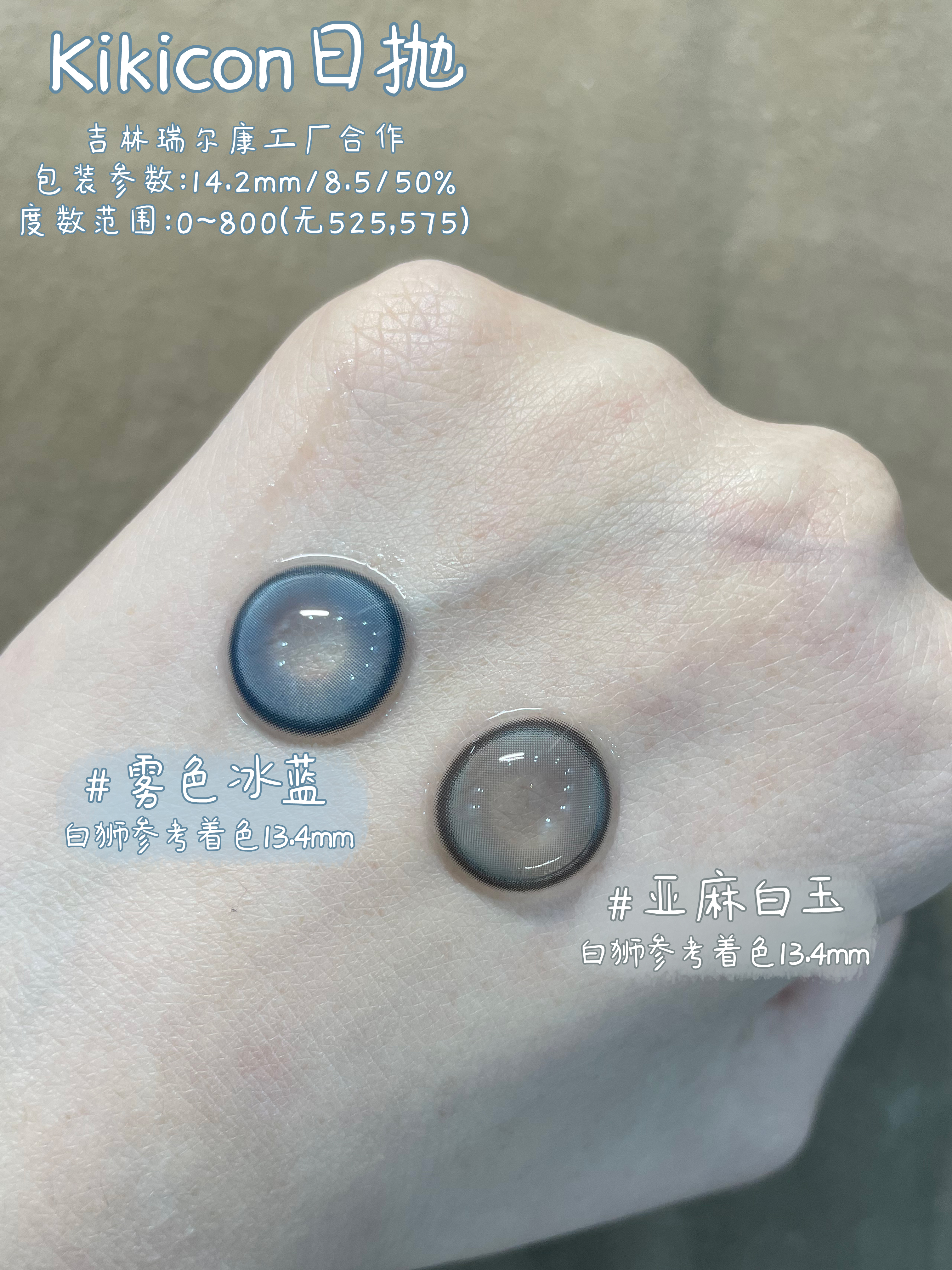 Kikicon旗下 ·亚麻白玉&雾色冰蓝|14.2m白狮参考着色中等直径|日抛 一盒十片装