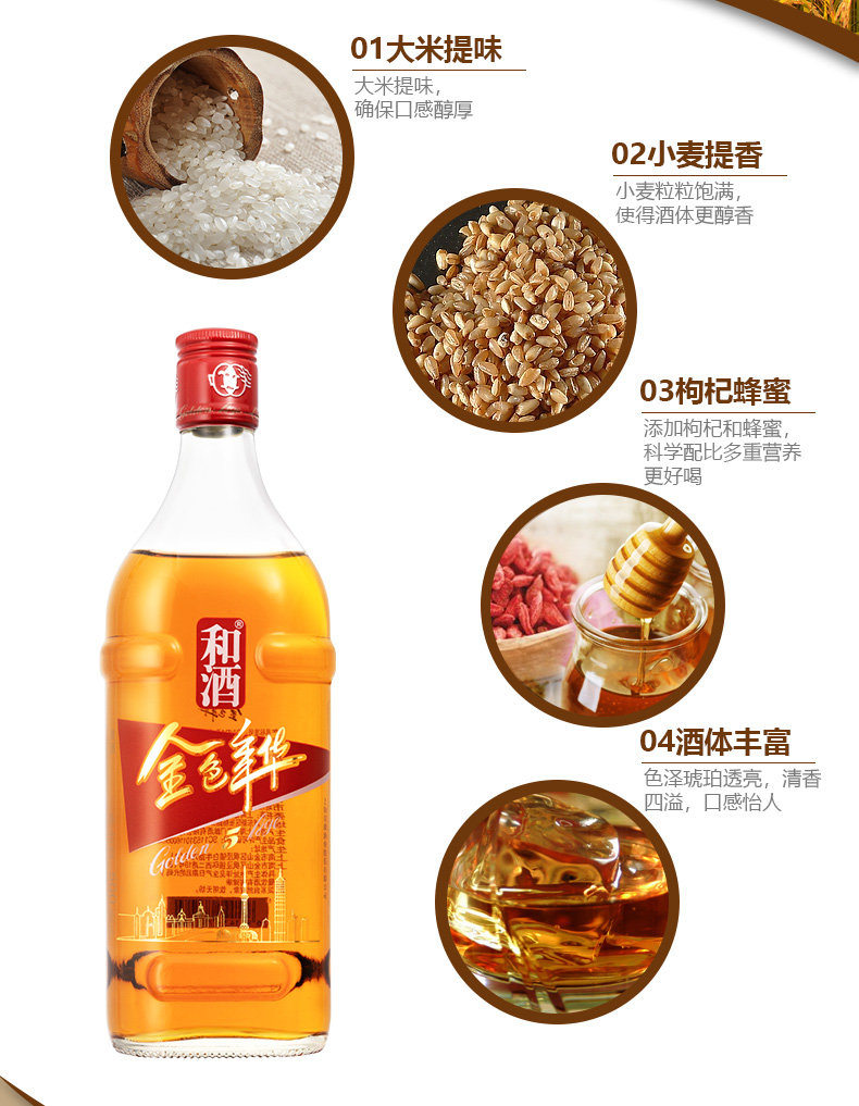 和酒 金色年华五年陈500ml*6瓶 整箱 黄酒 老酒 米酒 和酒 金色年华 5年陈 黄酒