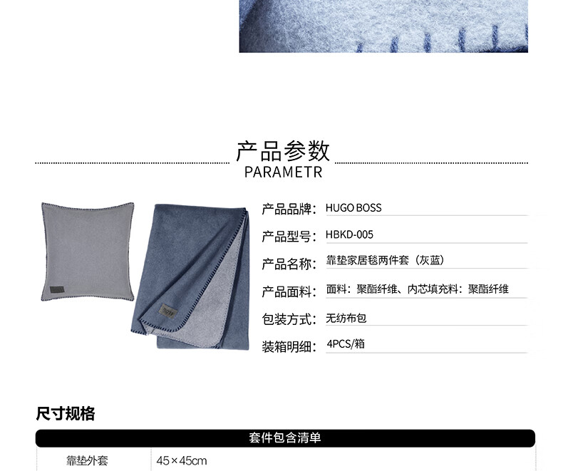 【分仓直发包邮】BOSS靠垫家居毯两件套(灰蓝)HBKD-005