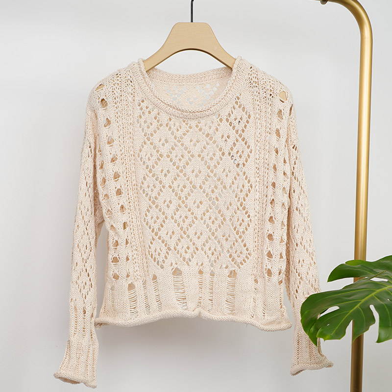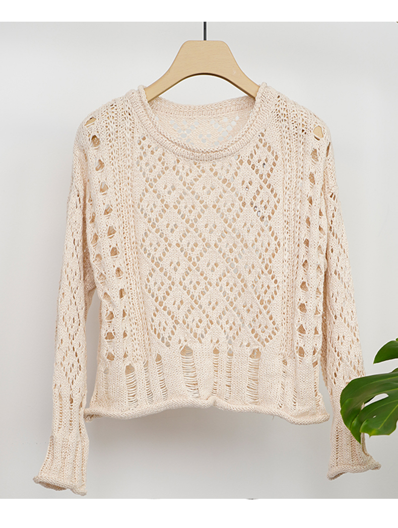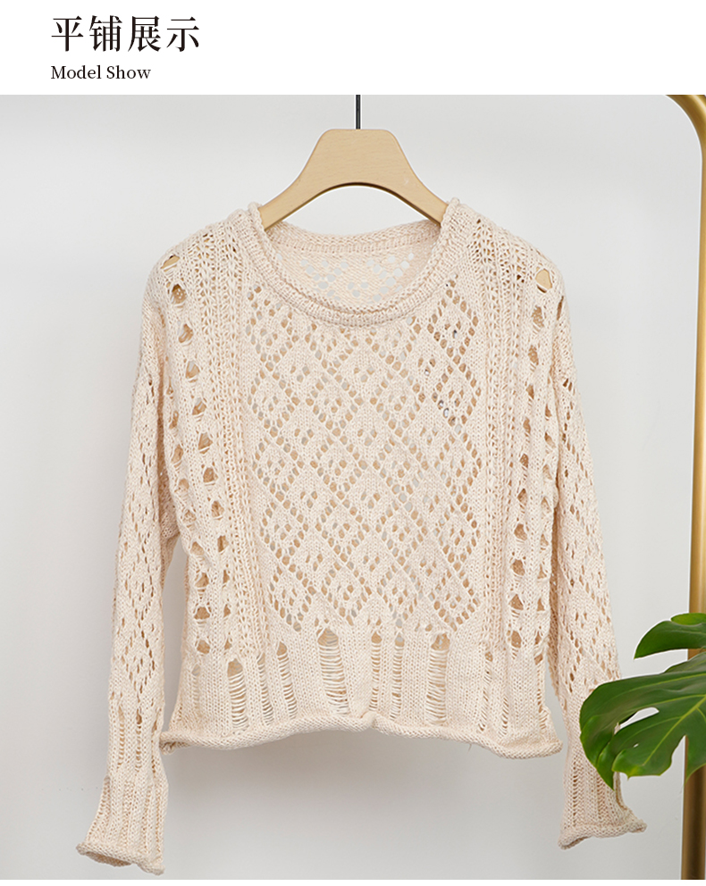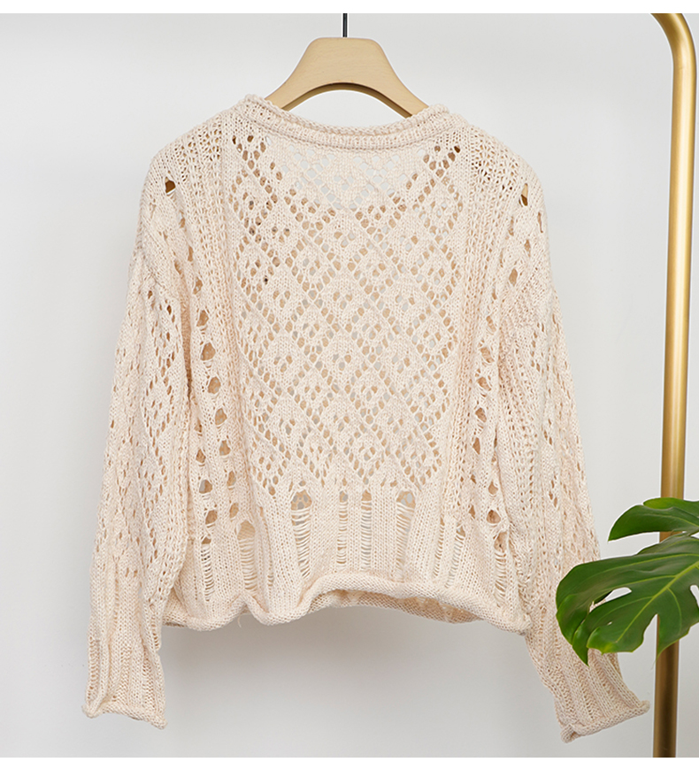 NUTS商场同款慵懒风卷边镂空针织衫女131052139