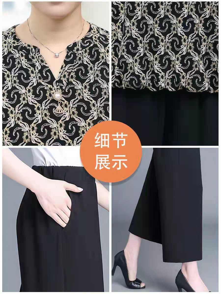 面料:台湾纱,柔软透气有弹性,搭配阔腿裤和小脚裤都可以,适合50岁以上的人群穿着