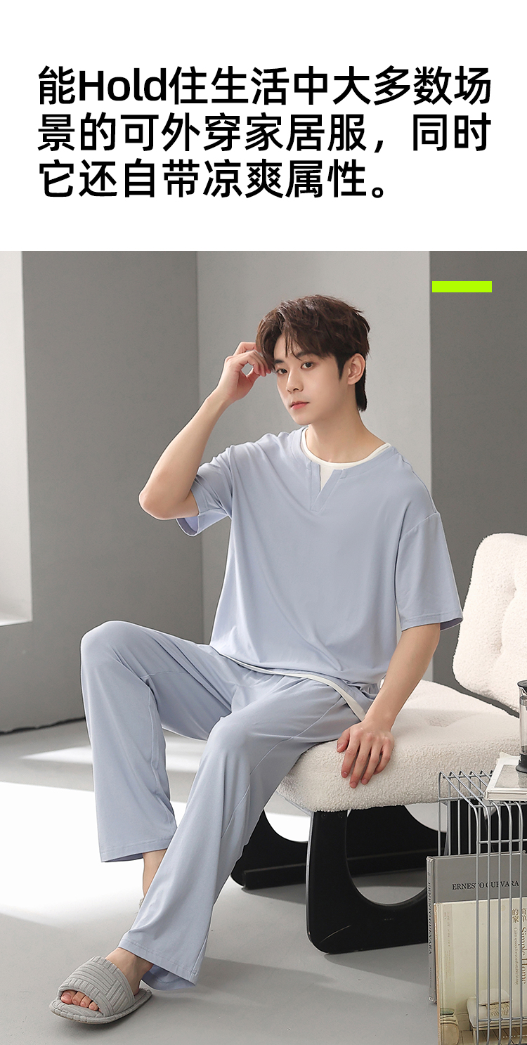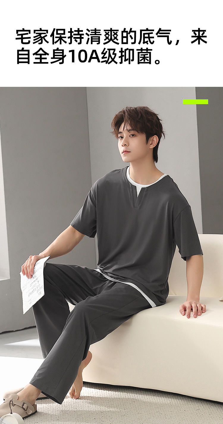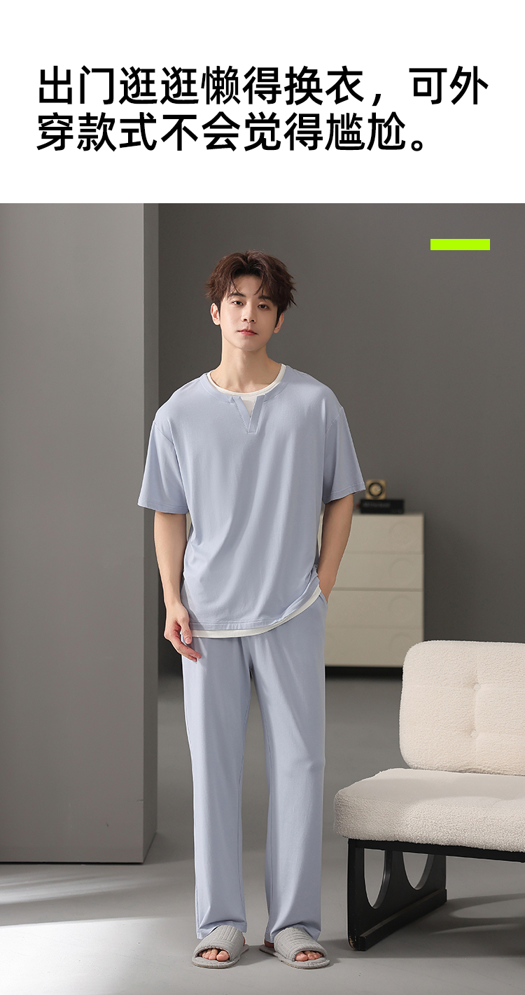 【L-3XL】【兰精莫代尔】【有棵树】男士夏季短袖长裤家居服套装