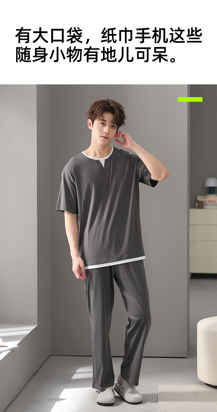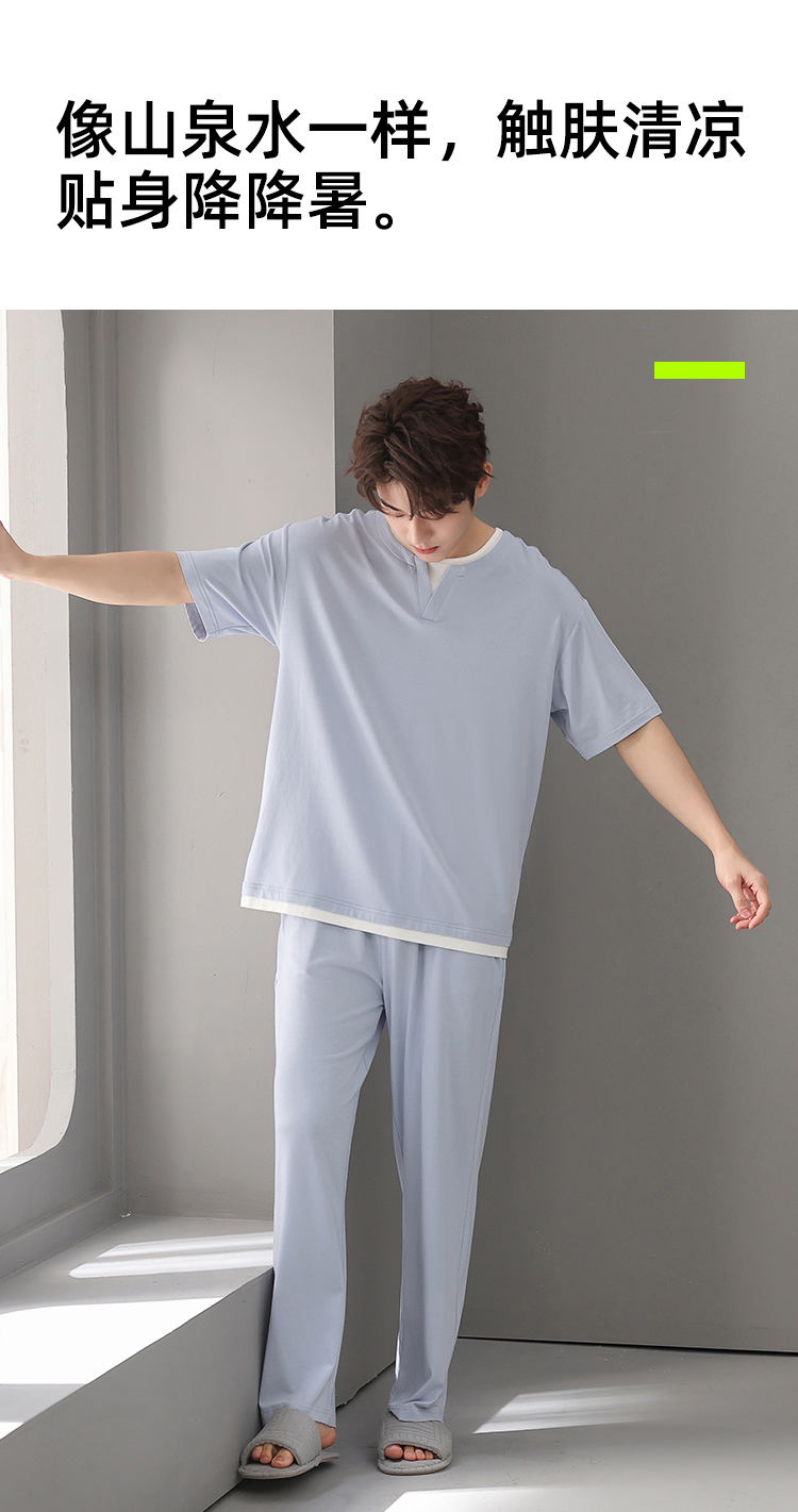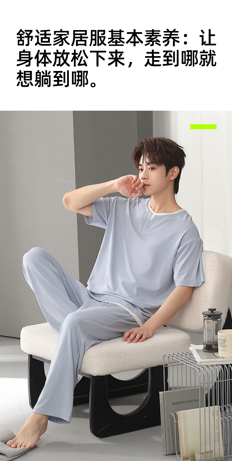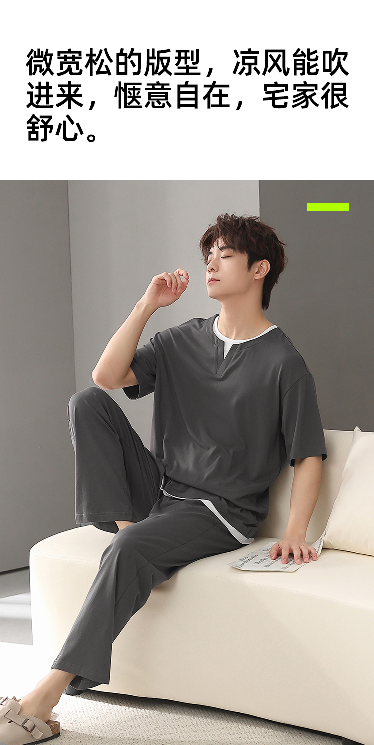 【L-3XL】【兰精莫代尔】【有棵树】男士夏季短袖长裤家居服套装