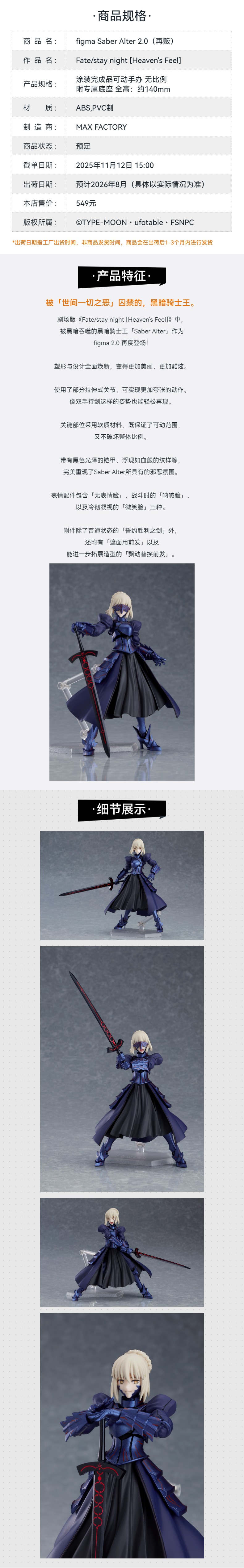 【GSC预售定金】figma Saber Alter 2.0 手办模玩 Fate/stay night [Heaven's Feel]
