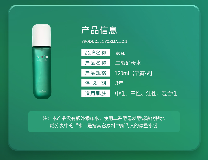 【体验立减50元】安茹二裂酵母水120ml【神仙水】90%酵母浓度+10植物精粹高浓养分补水保湿细嫩丝滑肌肤水