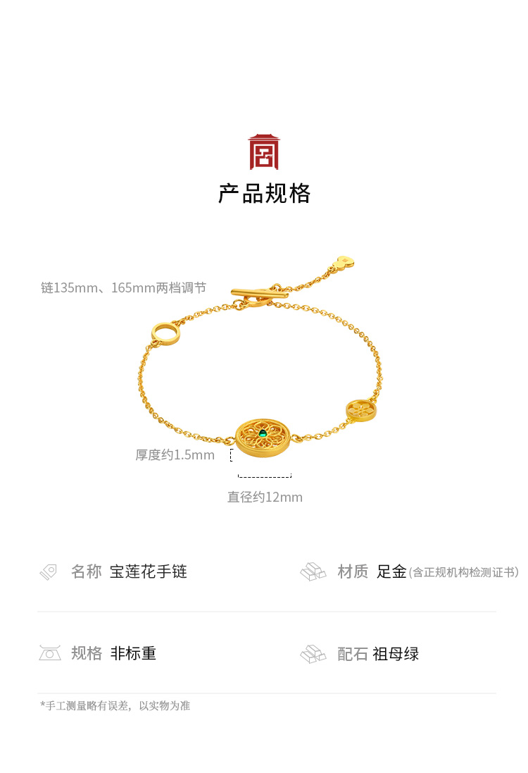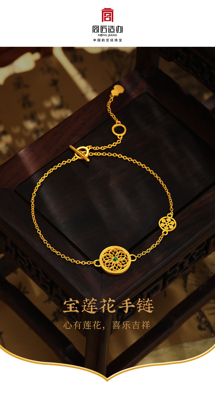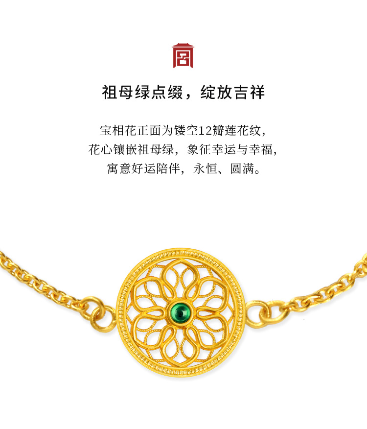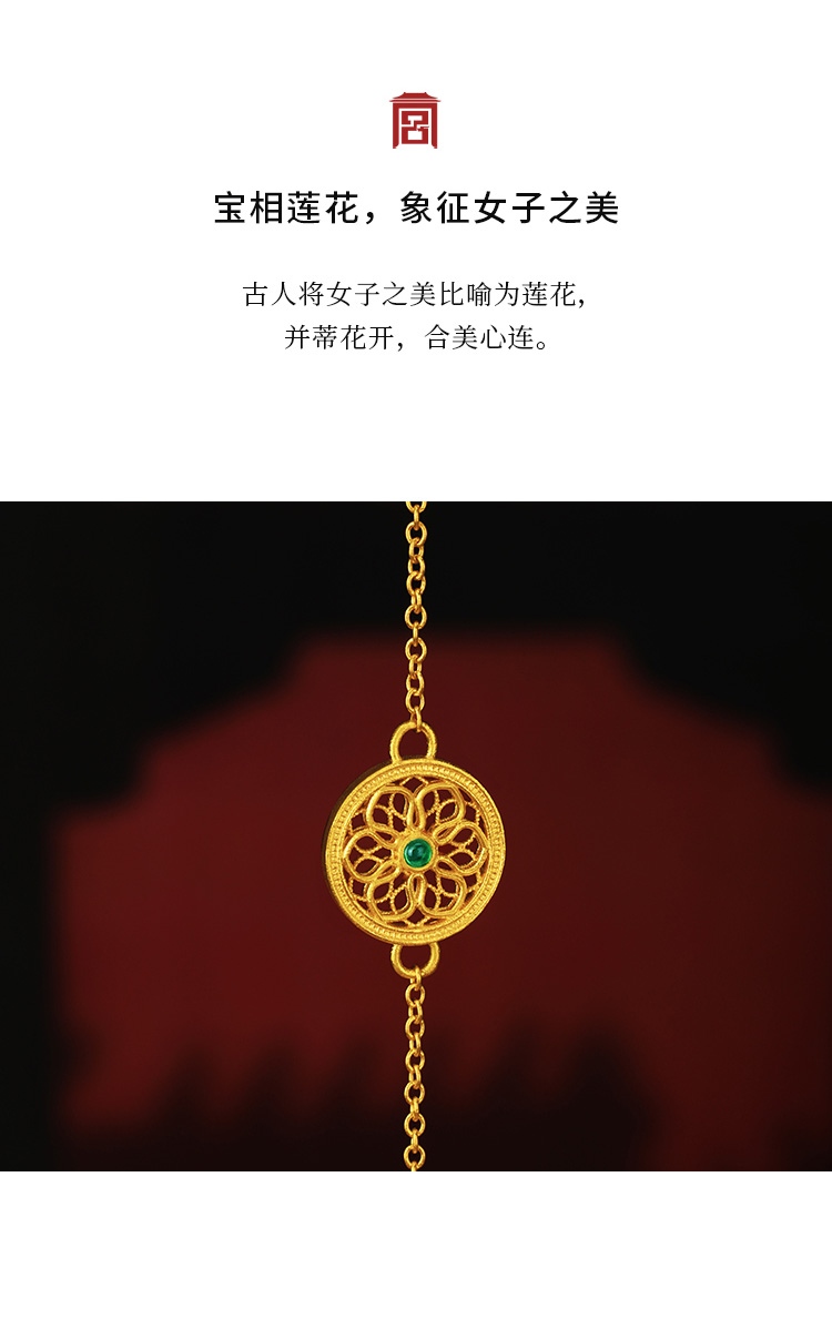 宫匠造办 宝莲花手链 黄金镶祖母绿