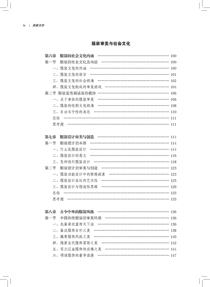 本书结合服装专业学习的需要,以普通美学为基本构架,联系服装行业的相关实例,综合介绍了现代美学概述、基础美论、美感与心理、艺术创作与流派、形式元素与形式法则、服装的社会文化内涵、服装设计审美与创造、古今中外的服装风格、姐妹艺术与设计艺术、服装与美育、服装与穿着艺术、服装设计大师这几部分内容。