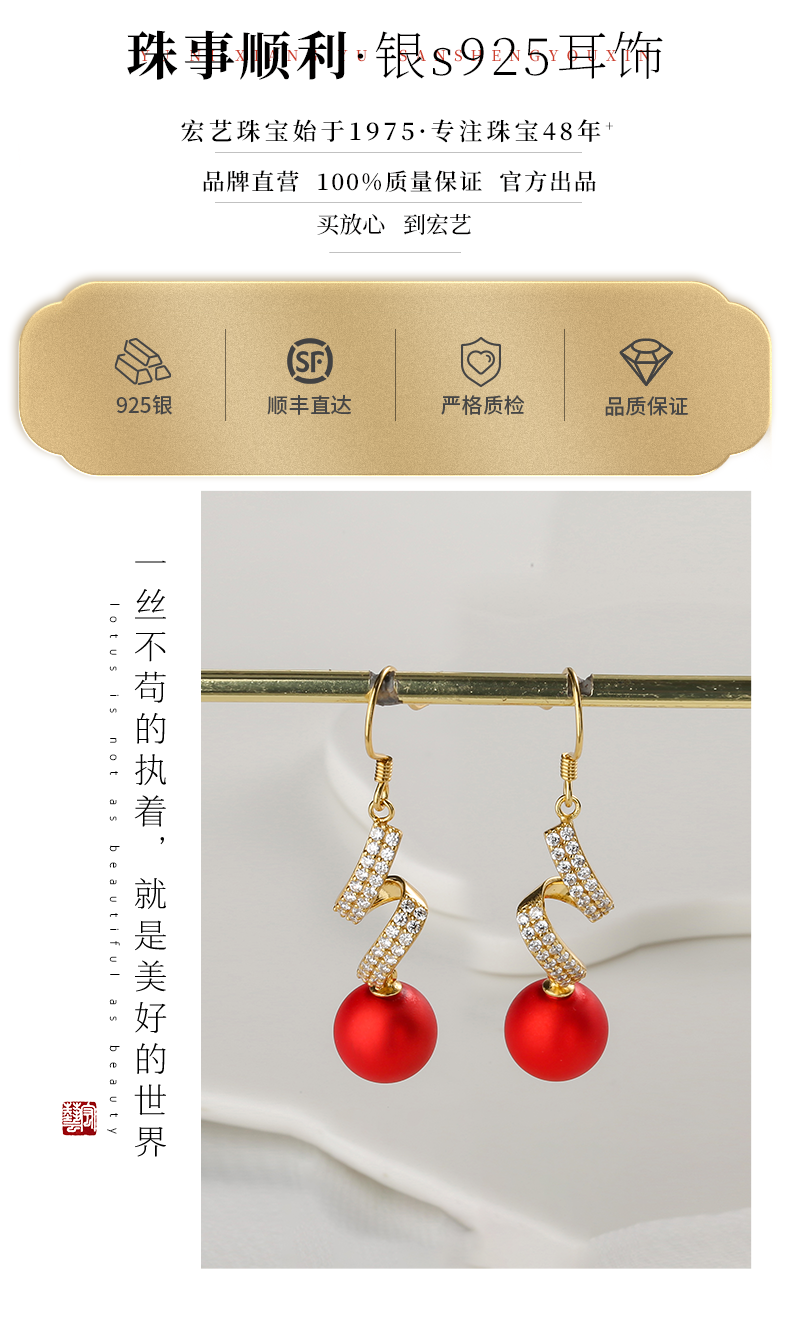 【宏艺珠宝】珠事顺利·银s925耳饰