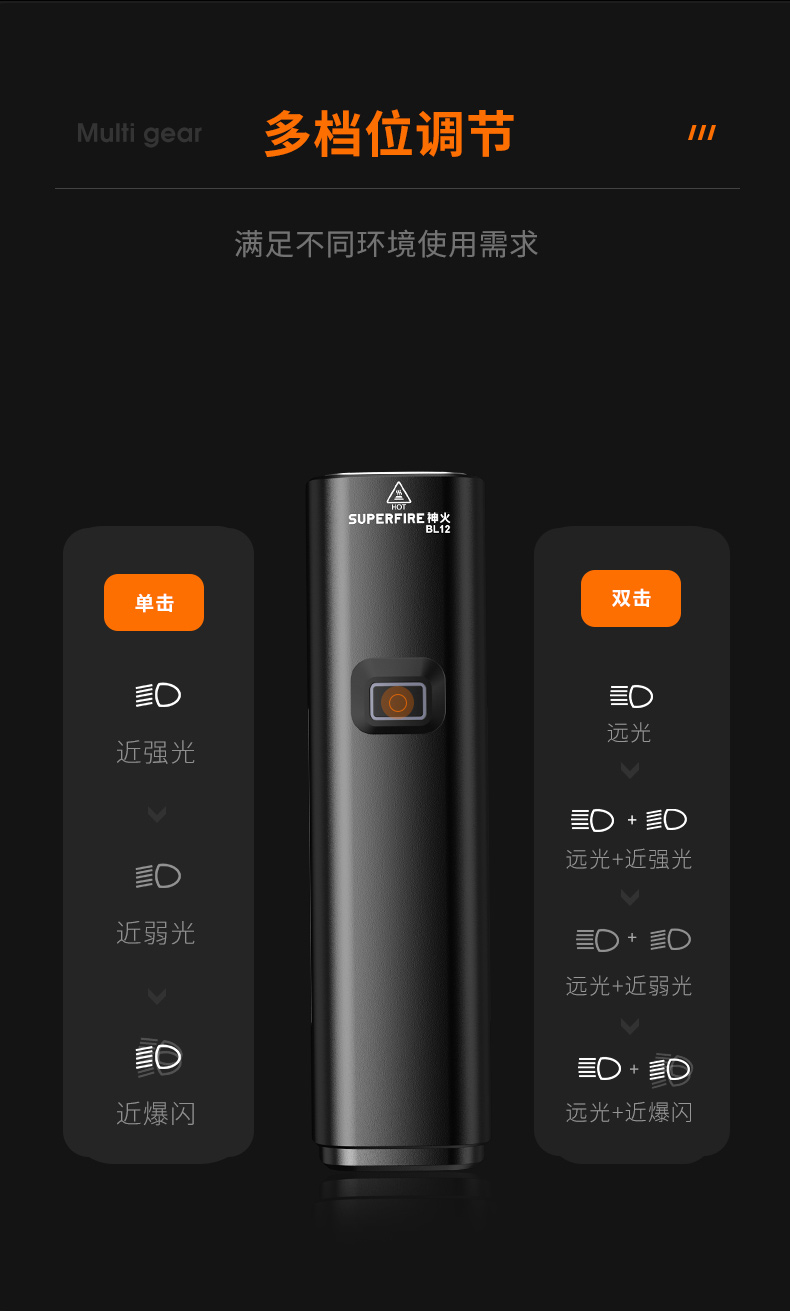 SUPERFIRE神火BL12自行车灯前灯强光远射夜骑防水USB充电长续航远近双光骑行装备