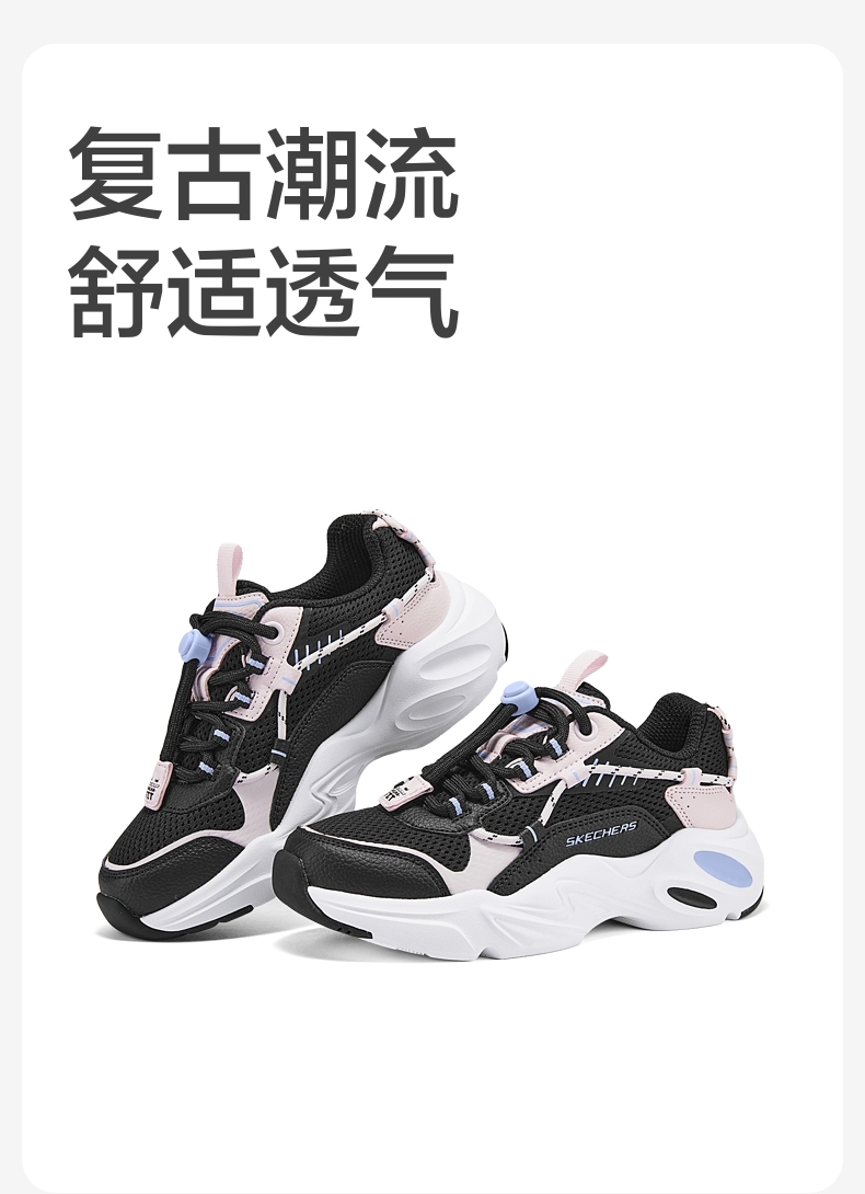 【代发】Skechers斯凯奇儿童男女快速系带陨星熊老爹鞋时尚休闲鞋子