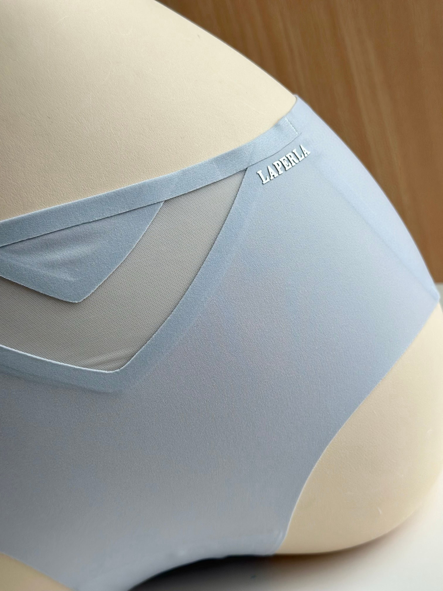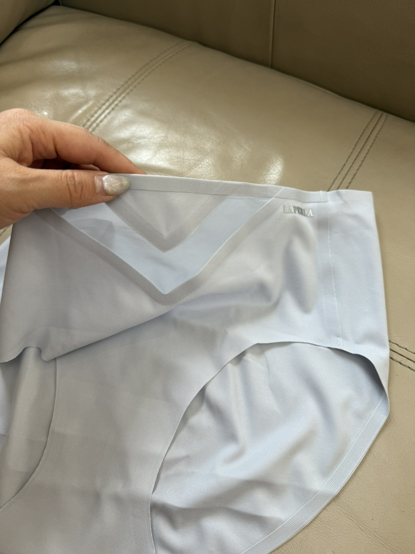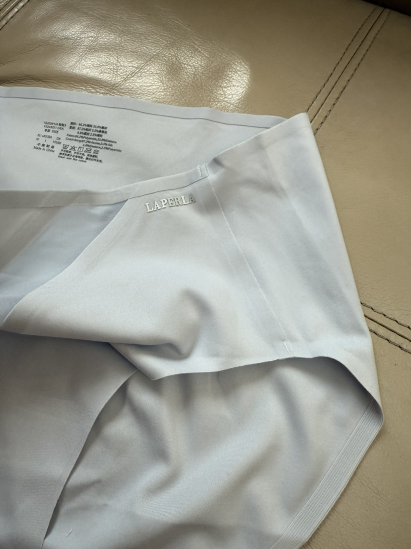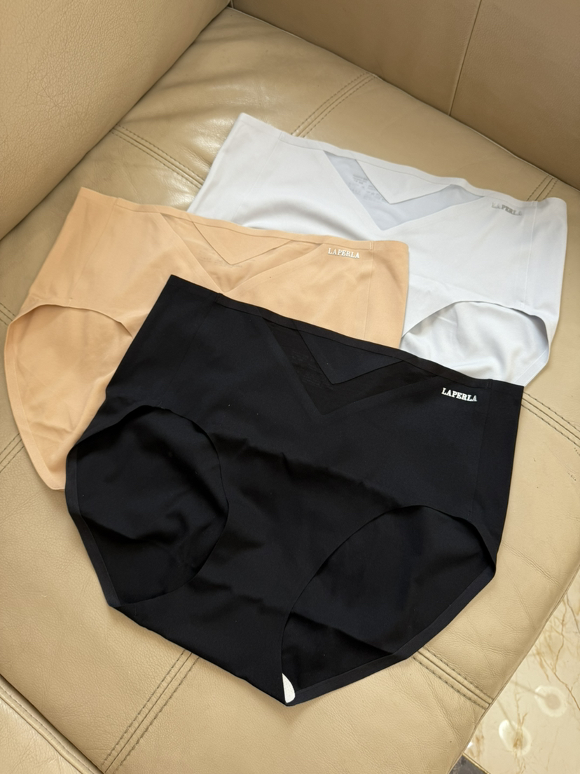 Lp新款一片式无痕镂空中腰女士内裤 贸易公司特定面料 66.2%锦纶 +33.8%氨纶的配比,非常高级,面料很柔软 弹力相当大,摸上去像软糯糯的面膜一样,穿上包裹的非常好,不会勒住半个屁股,大腿根包裹的也很好。中高腰,腰头这里有特色,高度在肚脐下2-3cm,不像老奶奶的内裤,啥裤子裙子都不挑。