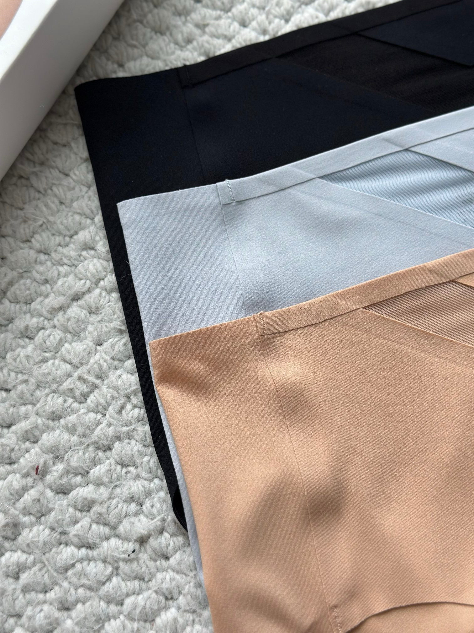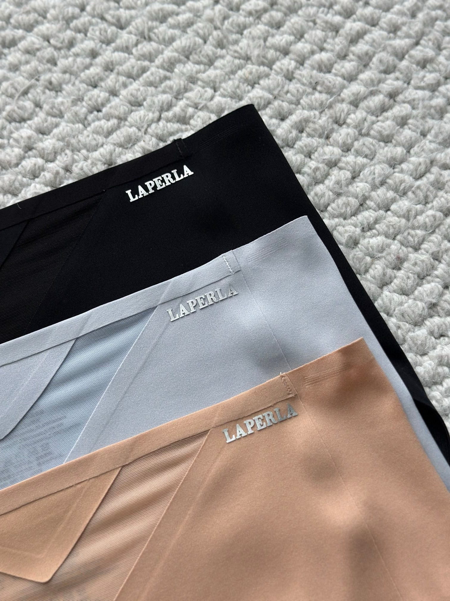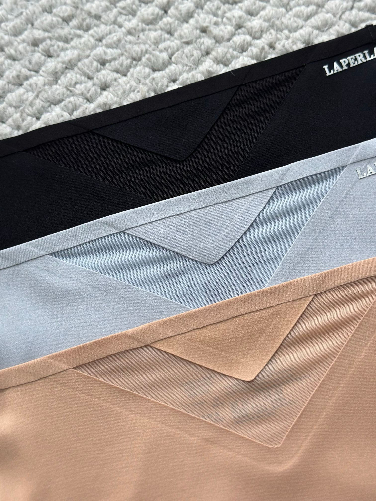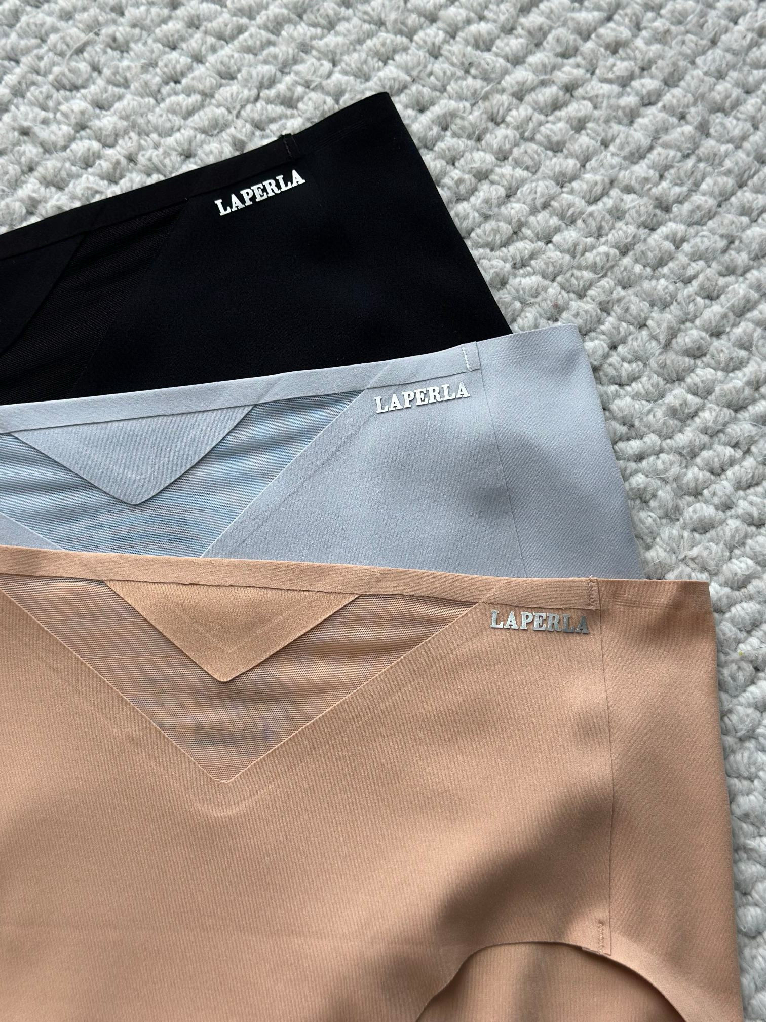 Lp新款一片式无痕镂空中腰女士内裤 贸易公司特定面料 66.2%锦纶 +33.8%氨纶的配比,非常高级,面料很柔软 弹力相当大,摸上去像软糯糯的面膜一样,穿上包裹的非常好,不会勒住半个屁股,大腿根包裹的也很好。中高腰,腰头这里有特色,高度在肚脐下2-3cm,不像老奶奶的内裤,啥裤子裙子都不挑。