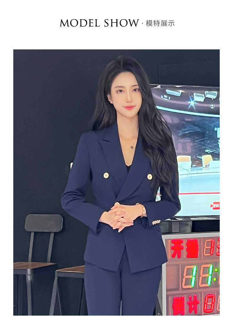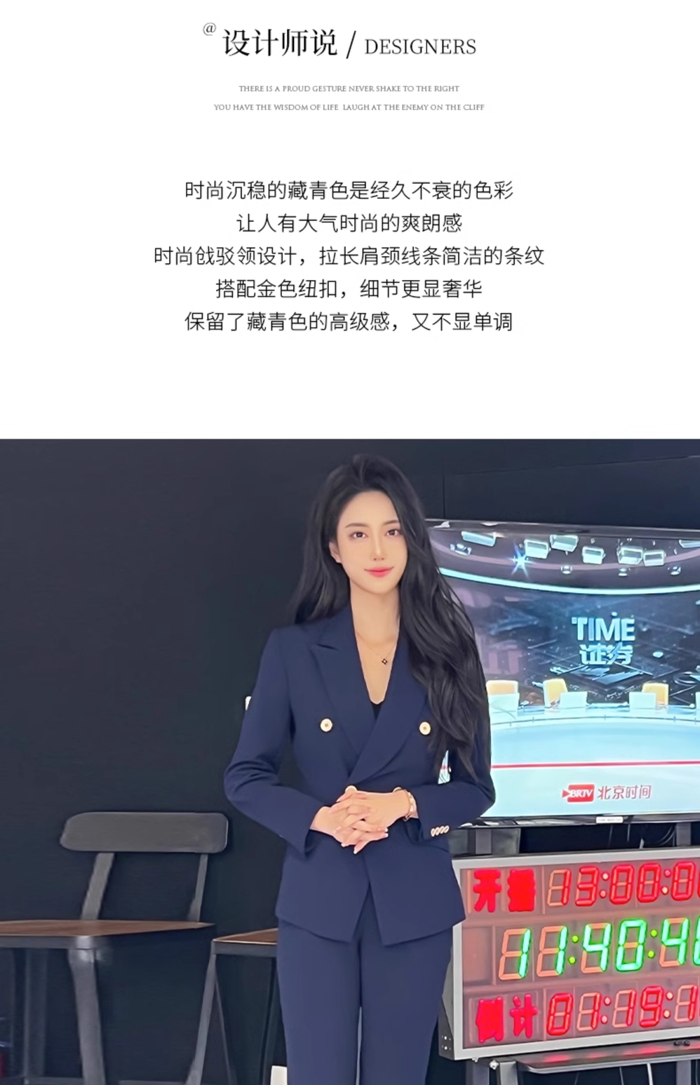 IWY/藏青色职业套装女秋冬2023新款修身西装商务经理正装工作服C11355+P31356