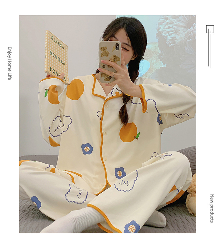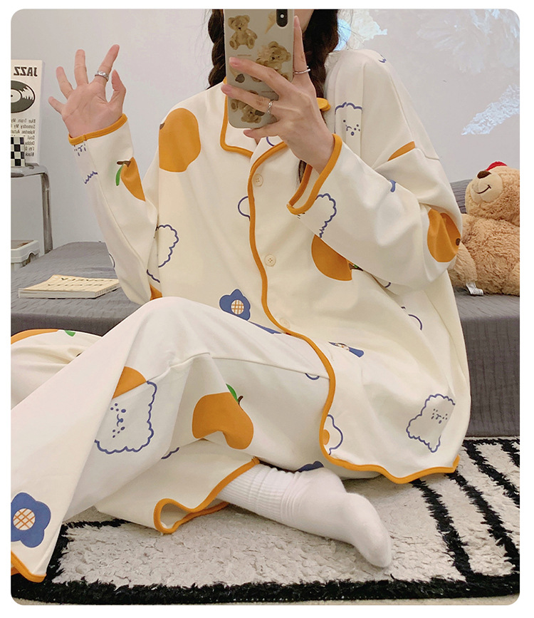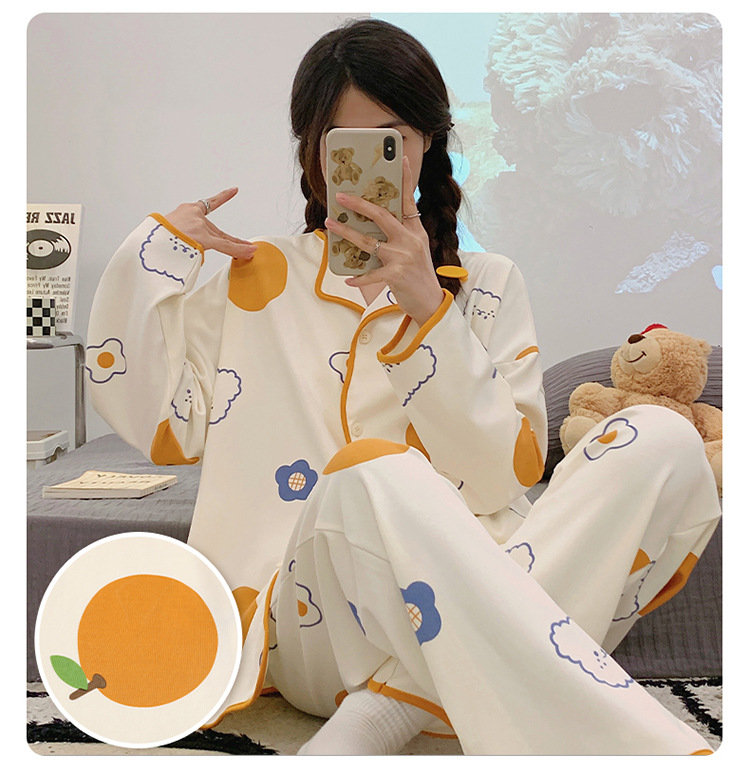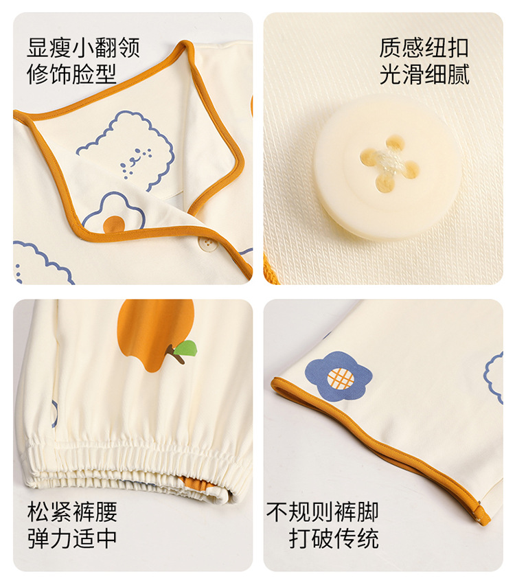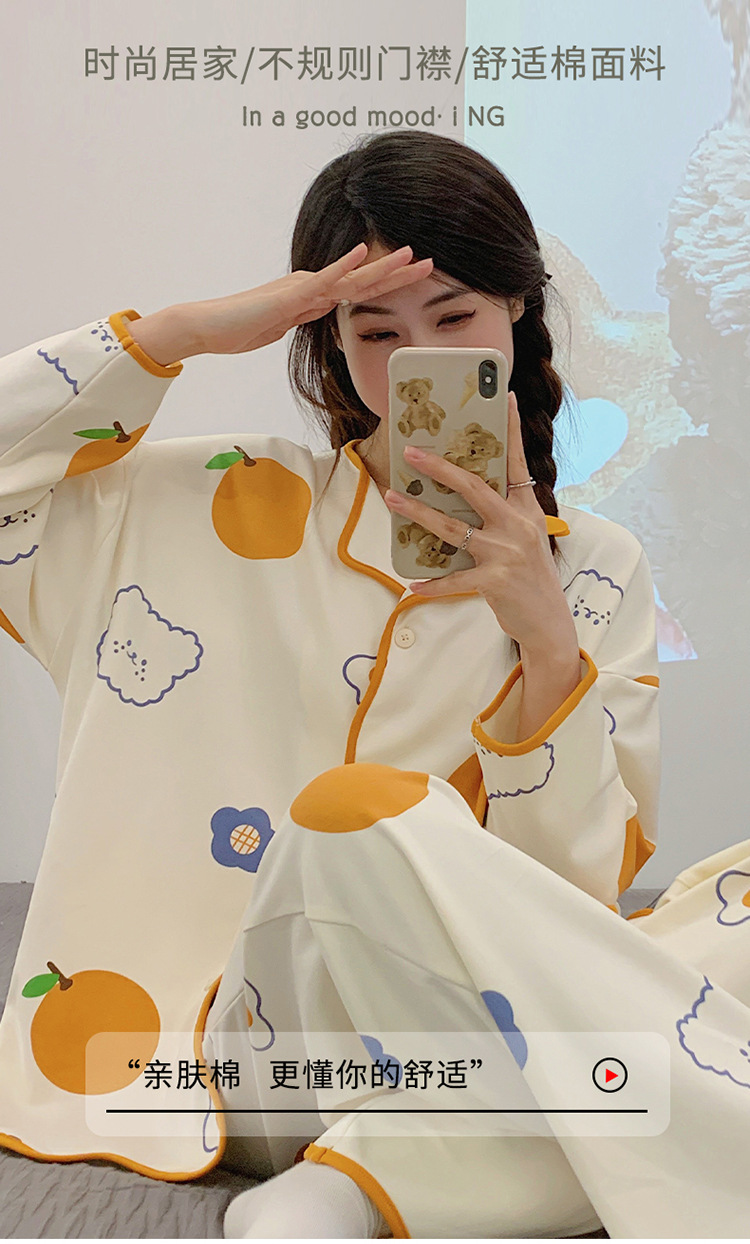 敲好看【柔软亲肤!吸湿透气】睡衣女春秋冬季长袖长裤开衫套装韩版ins风加大码印花女士家居服套装。ra