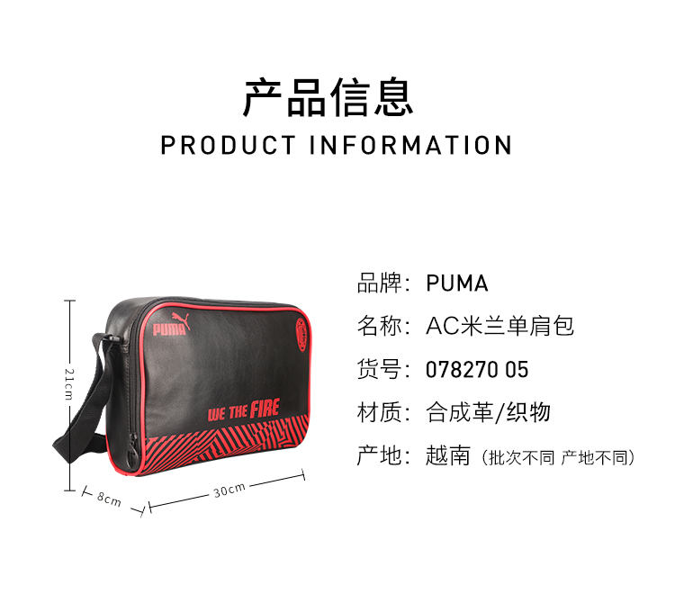正品PUMA/彪马AC米兰足球运动休闲收纳单肩包男078270-05