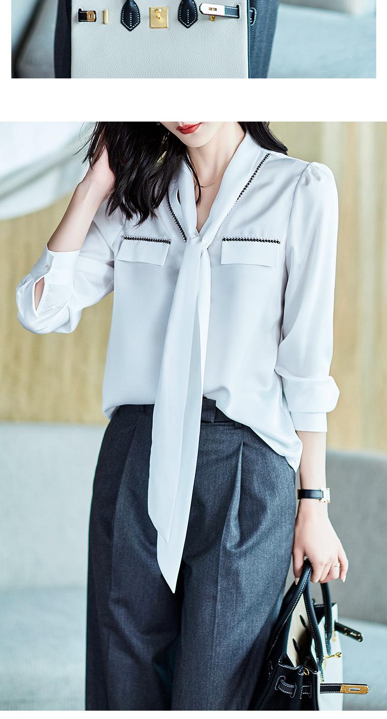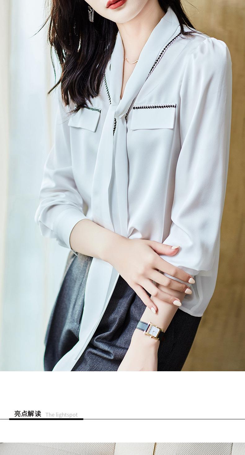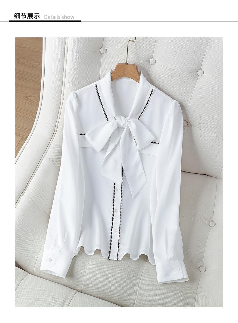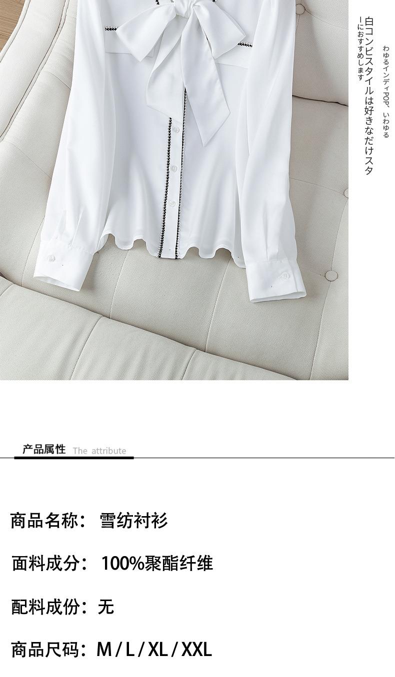 2023秋装新款衬衫女长袖宽松雪纺衫白色女士衬衣A2727