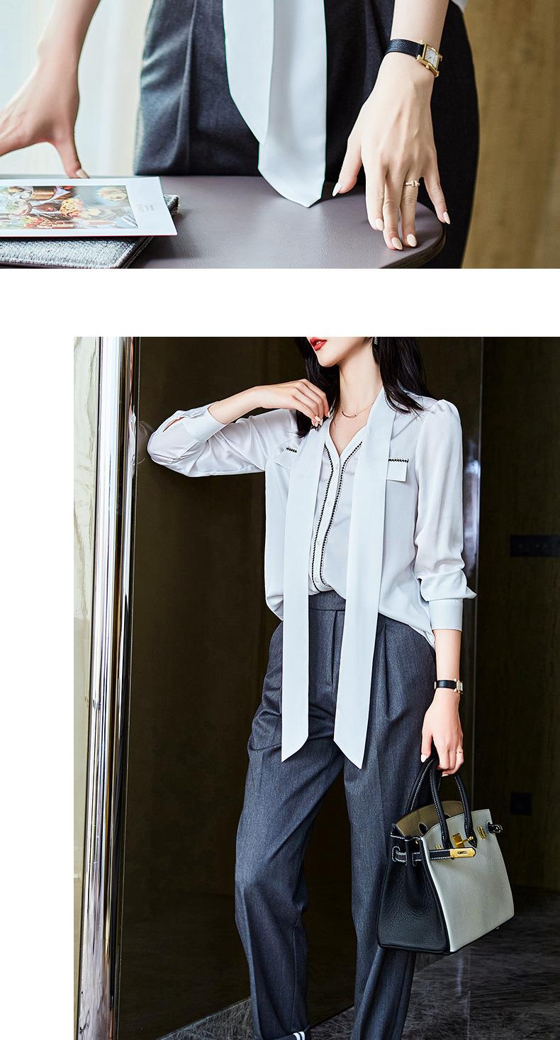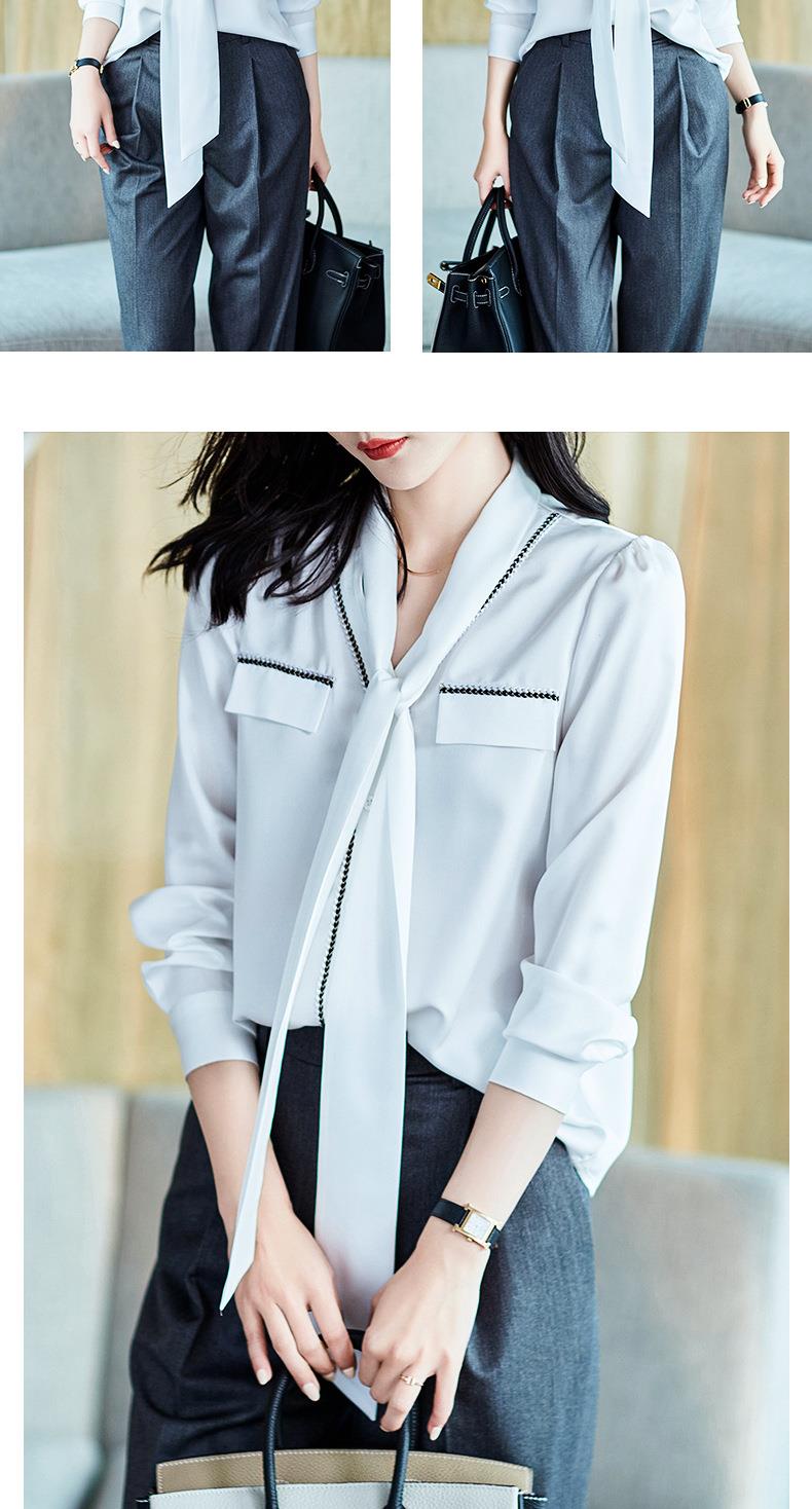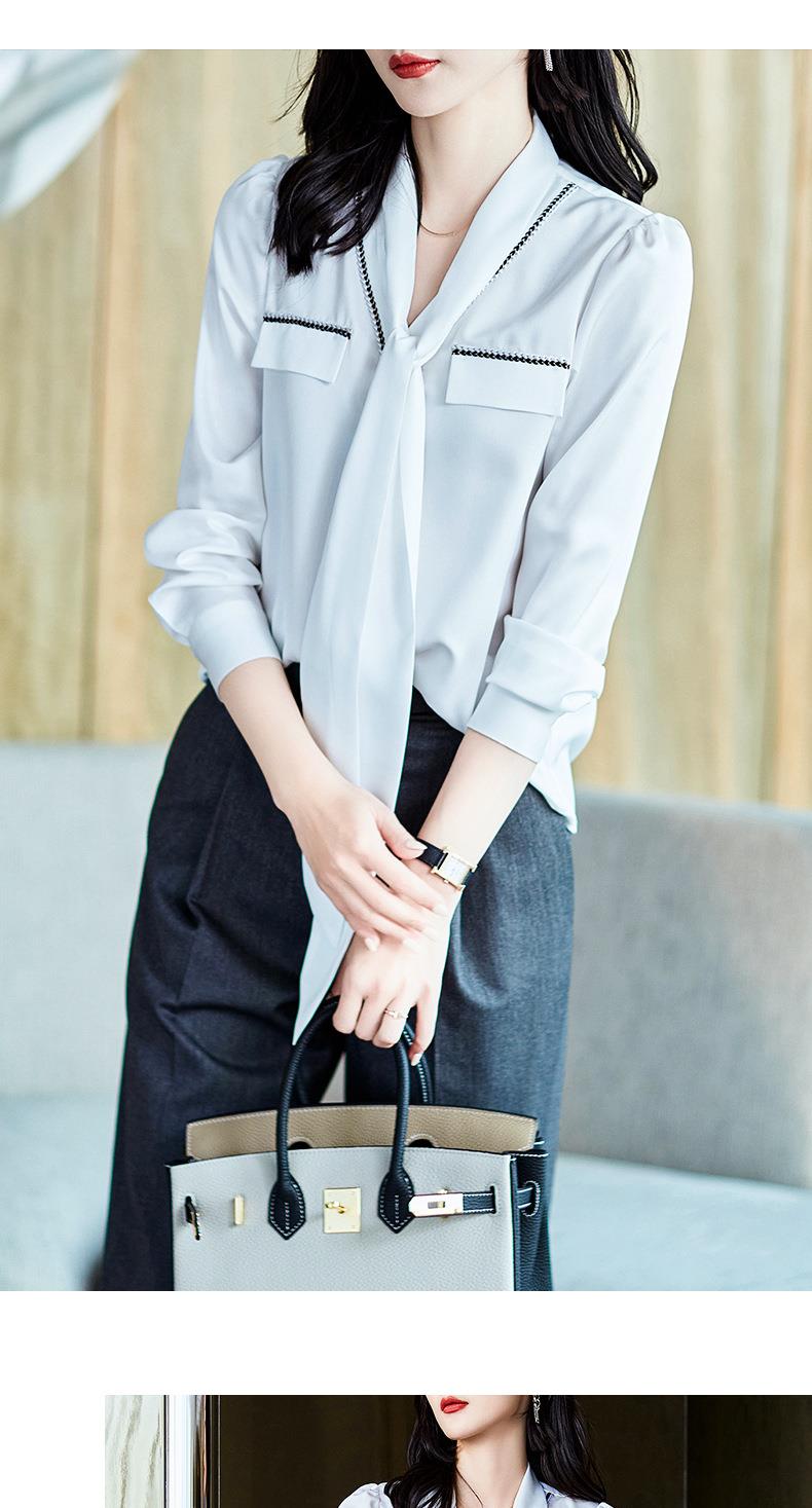 2023秋装新款衬衫女长袖宽松雪纺衫白色女士衬衣A2727