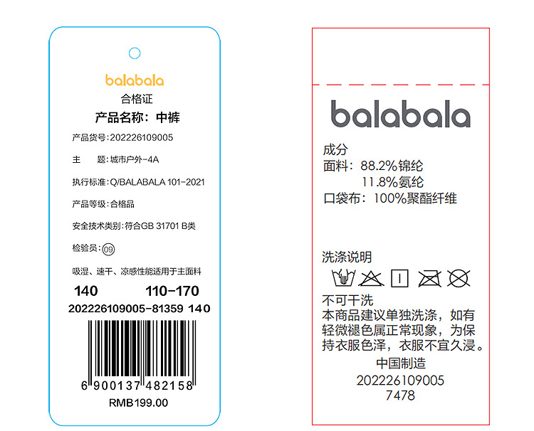 【商场同款】巴拉巴拉童装儿童中裤女童短裤2026夏工装七分裤速干