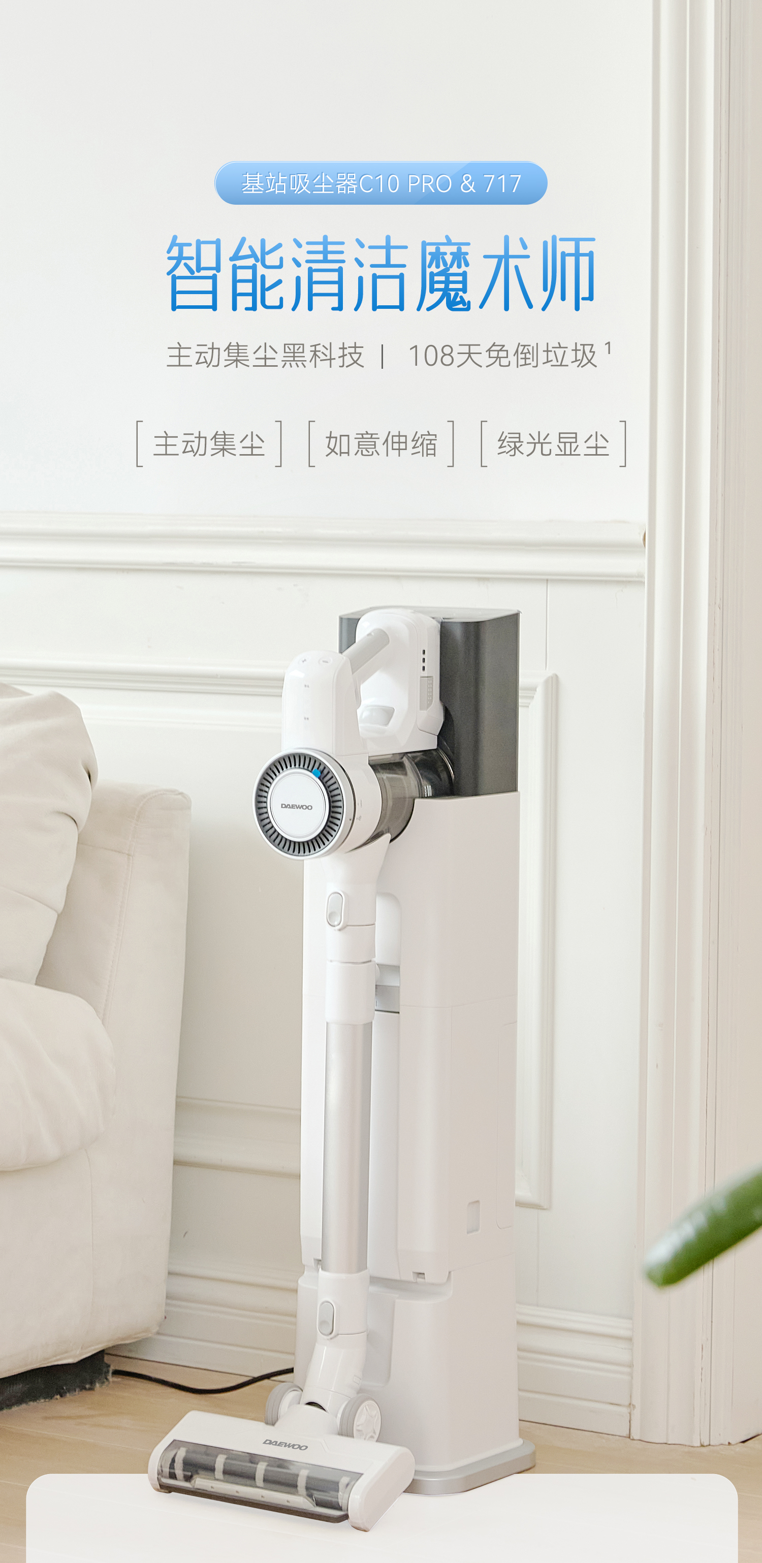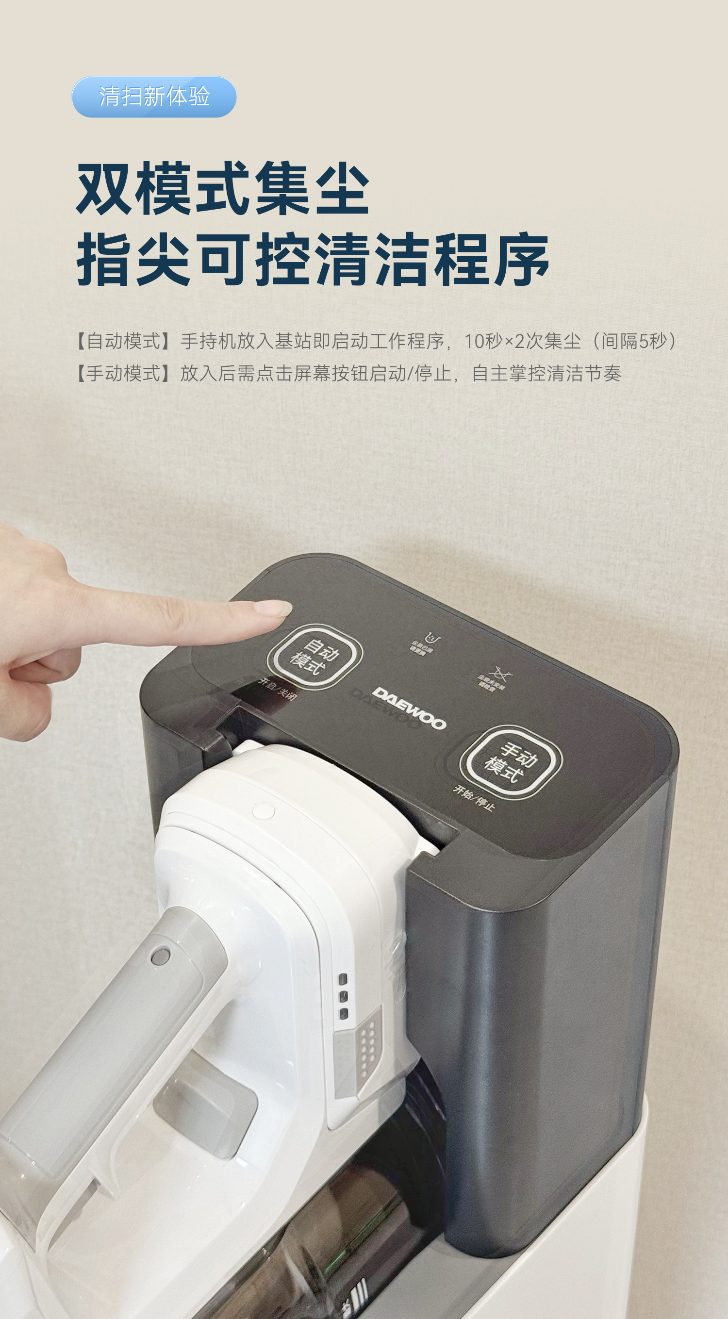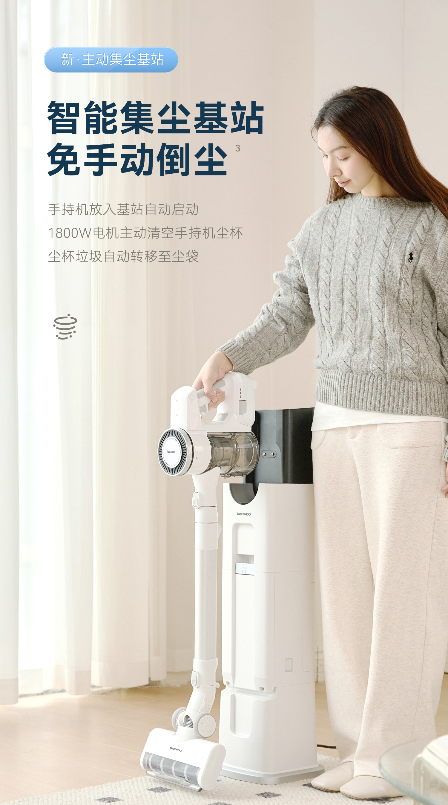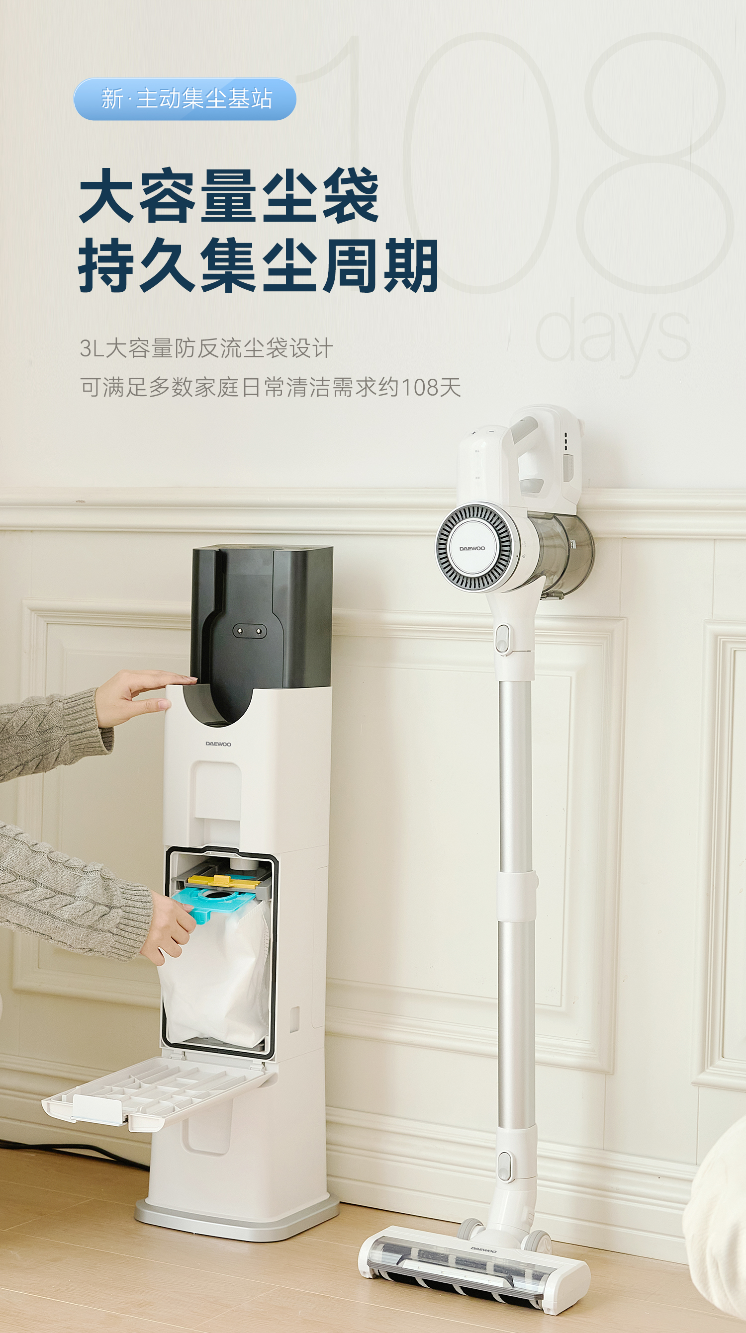 DAEWOO大宇自动集尘无线吸尘器家用大吸力吸猫毛智能基站吸尘机