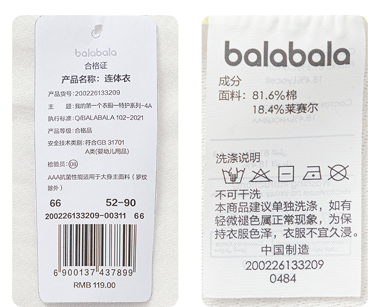 【商场同款】巴拉巴拉宝宝连体衣婴儿抱衣哈衣2026新款简约舒适萌