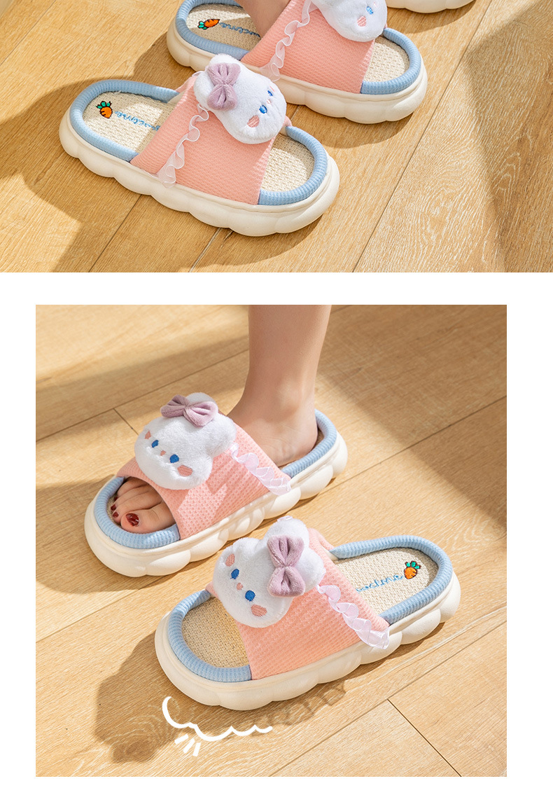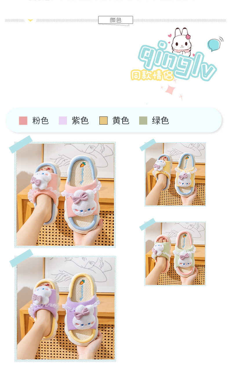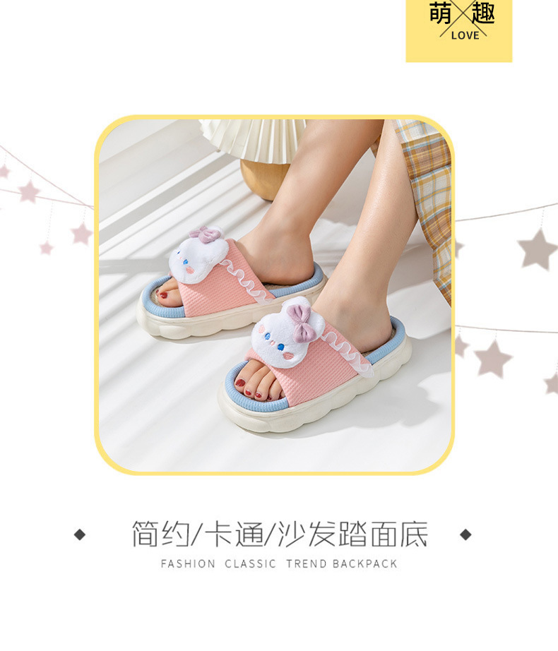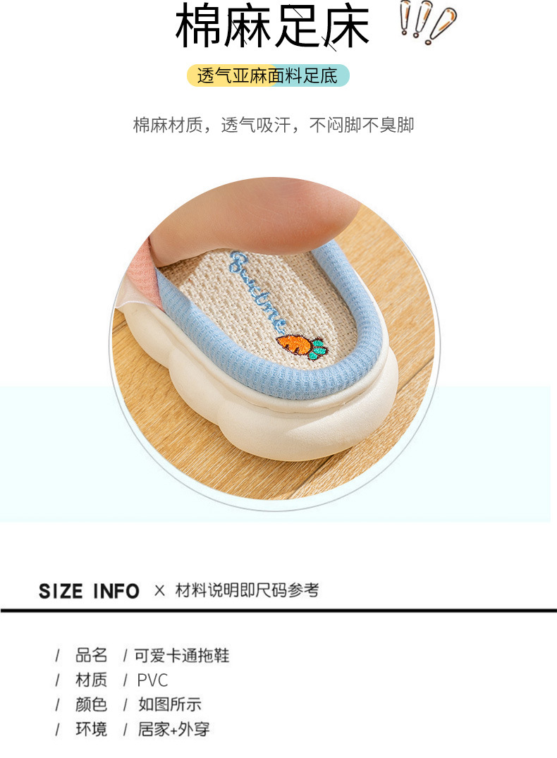 【超萌卡通拖鞋】春夏亚麻拖鞋女四季室内防滑透气厚底静音棉麻防臭情侣地板拖鞋男,鞋面添加可爱元素造型,色泽光亮, 看起来有质感、柔软。ry