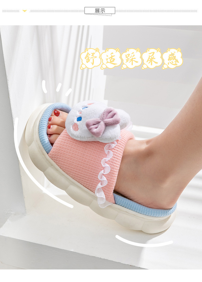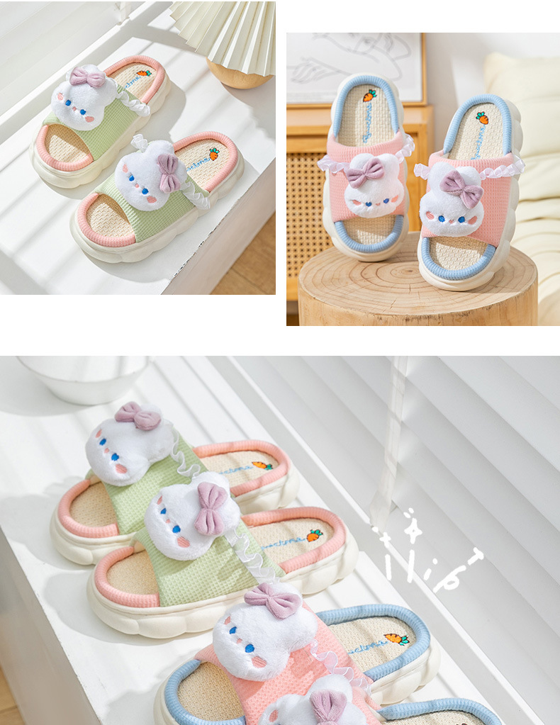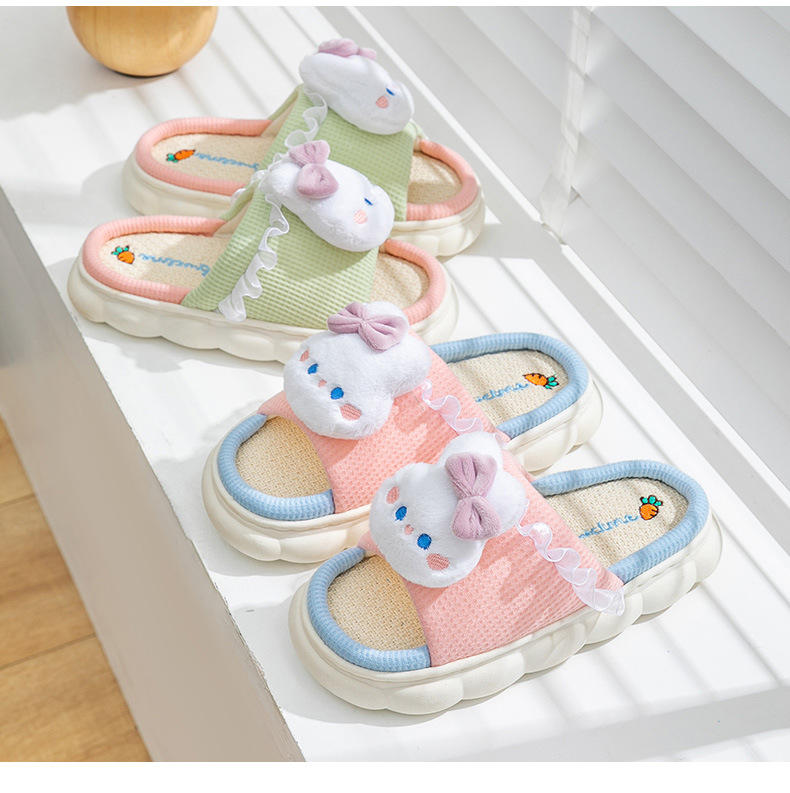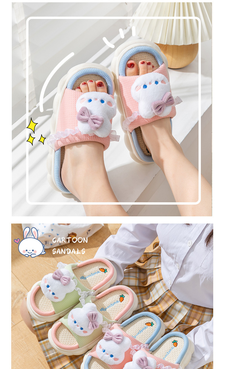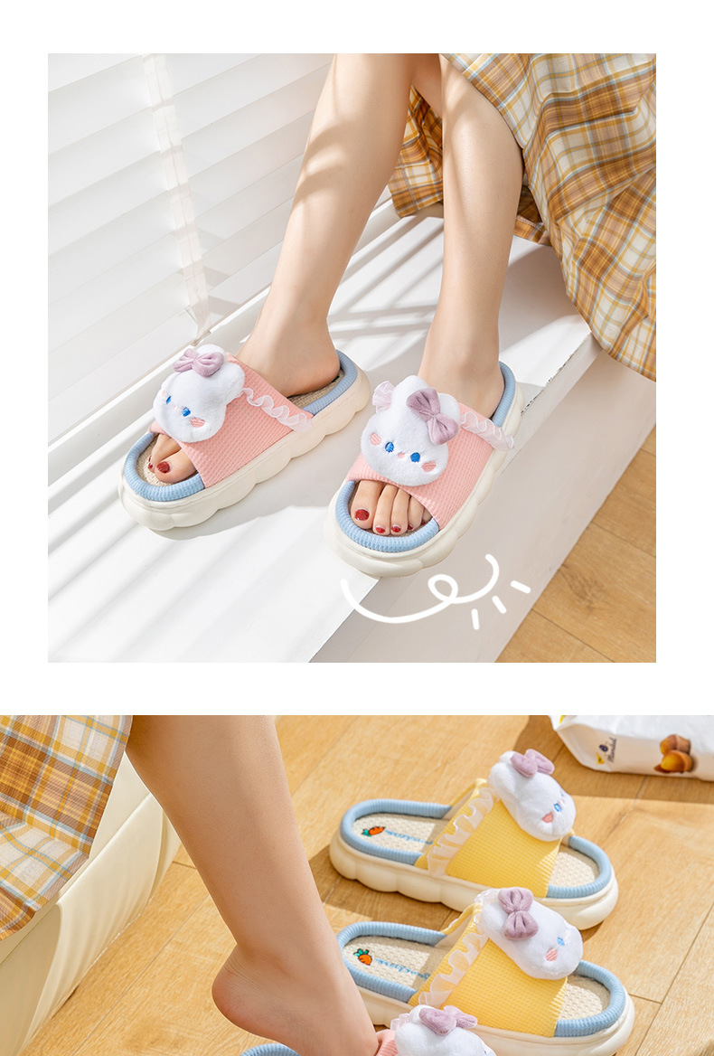 【超萌卡通拖鞋】春夏亚麻拖鞋女四季室内防滑透气厚底静音棉麻防臭情侣地板拖鞋男,鞋面添加可爱元素造型,色泽光亮, 看起来有质感、柔软。ry