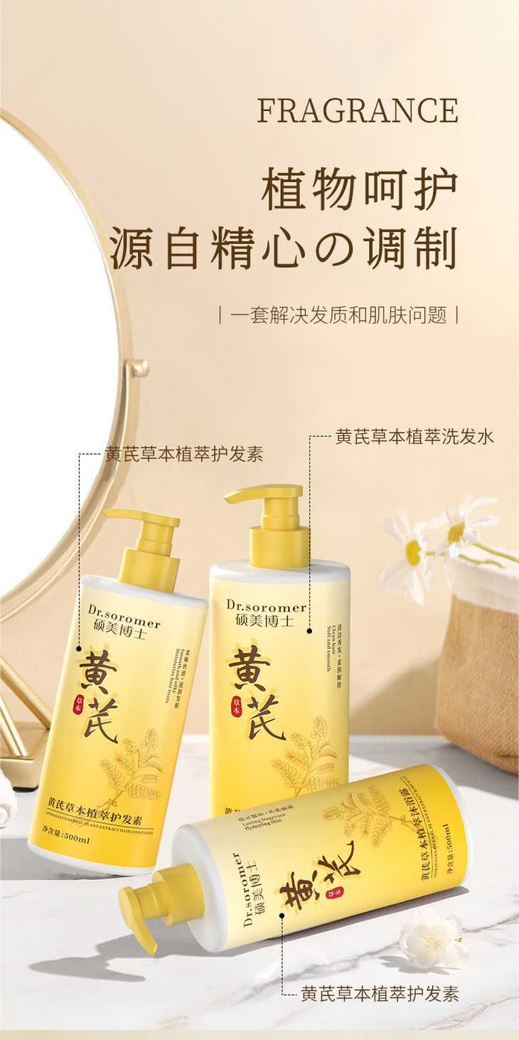 【黄芪草本植萃洗护沐套装】滋润保湿留香深层清洁清爽控油洗护沐
