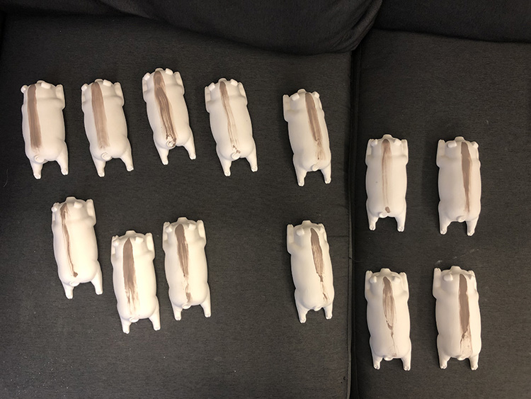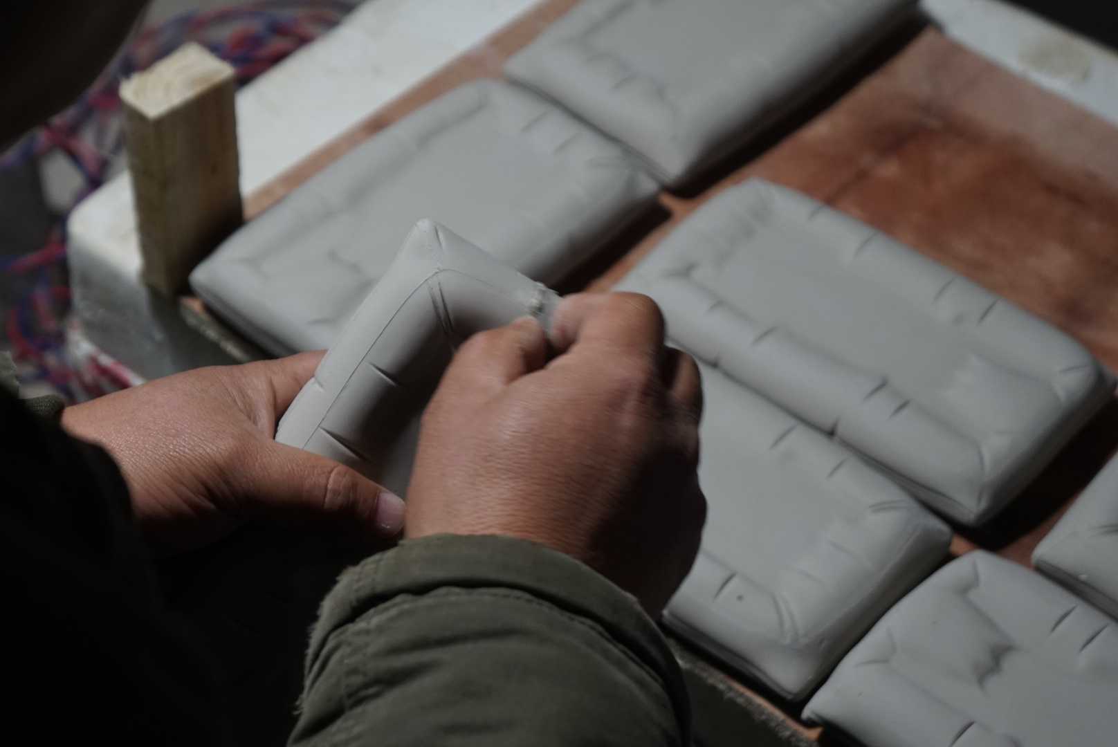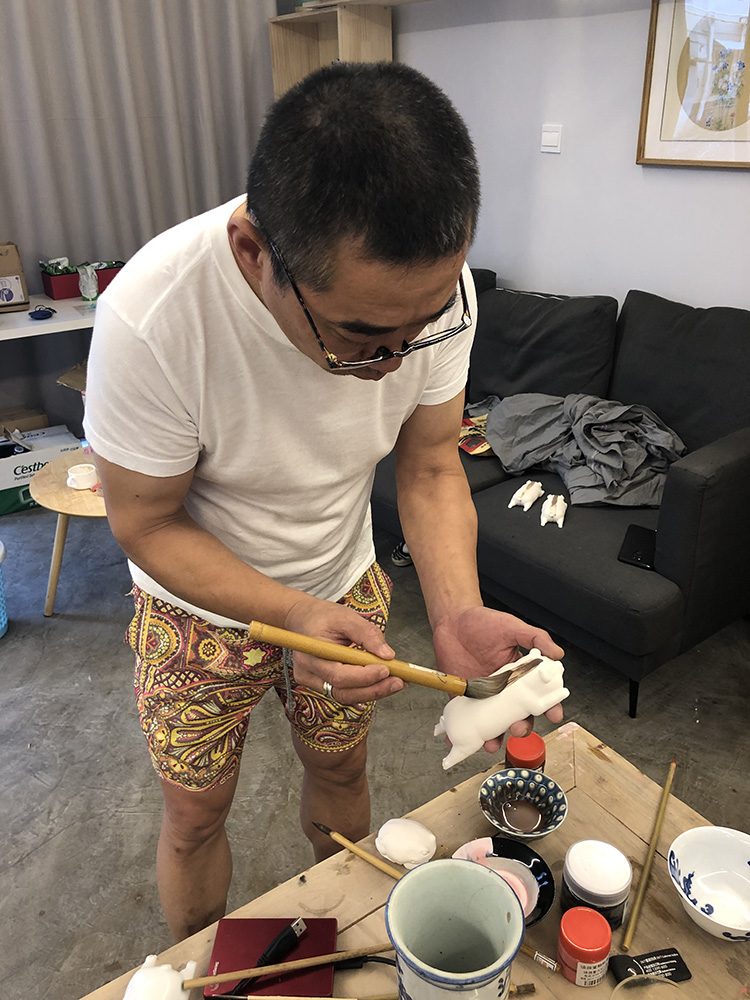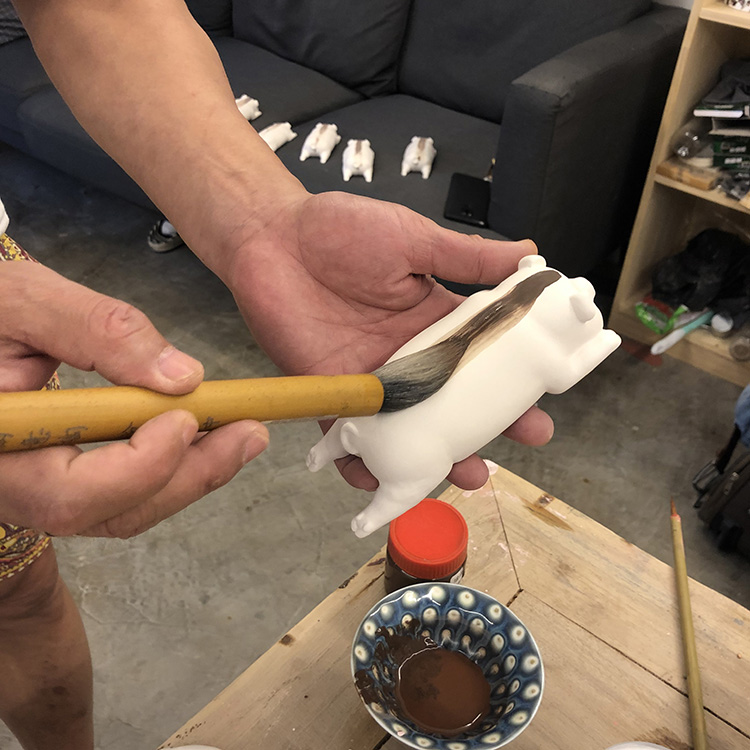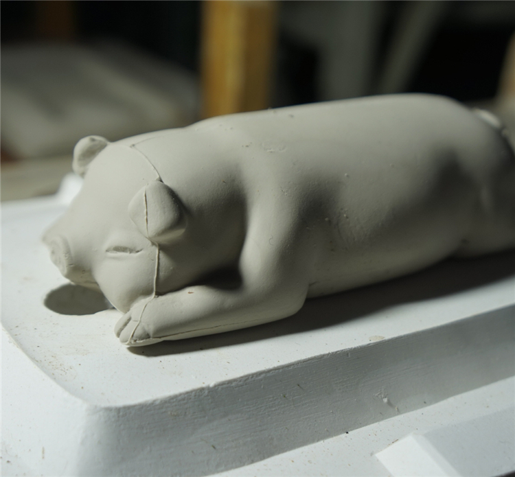 招财卧猪,憨厚可爱,置于雅致文房,在外诸事吉利财库猪和财库枕可以自行搭配 猪加枕头,长:18cm,宽:10cm,高:5.5cm一笔神鬃财库猪每一只皆为薛老师亲笔绘制,神采奕奕,一笔神鬃。一只瓷猪的诞生要经过十几个工序,首先制作陶泥雕塑,再用硅胶模翻制成树脂模型,经过打磨修整再次翻制成模种,整个制作打磨都由薛继业老师亲手完成,陶瓷雕塑的翻制必须使用石膏活模,一只小猪要切割成五个部分才能完整的把所有细节翻制出来,再把五个部分用泥浆衔接起来,一套模具在正常天气仅仅能做五只,冬天只能三只,成型的小猪泥坯要经过一周的阴干,入窑素烧500后喷上影青釉高白釉再次入窑烧制八小时,温度达到1310,出窑冷却后再用砂轮修整底面,贴上底款贴花,再次入窑烧至800终完成,只有景德镇特有的优质瓷泥和釉料,才能烧制出如此玲珑剔透、温润洁白的财库猪。1、陶瓷猪增强人际关系 猪的个性不争不抢,非常好相处,所以如果把猪的风水摆件摆放在家中或者办公室中合理的位置,潜移默化间,对于主人的人际关系改善也很有帮助。 但是在摆放的时候需要注意,记得摆放在吉位上,这样功效才能发挥到化。 改善主人急躁的脾气 猪的形象不但是圆滚滚,福气的象征,而且也是忠厚老实的象征。所以如果家中有人脾气比较急躁,遇到事情容易冲动,建议在家中合适位置摆放猪的风水摆件。 2、陶瓷猪求财 一般的祭拜中都有猪的出现,就是取其增进财源的意思,我们可以选择家中或工作场所放置风水猪来旺动财源摆设位置相当重要,基本上除了厕所浴室的位置不宜外,其他皆可,不过还是摆设在财位上。如果为了求财,风水猪的制材以黄金,这样才能完全发挥旺财旺动的能力,假如用陶瓷猪的存钱罐,日日投零钱,如此也能让灵动能力更加旺动,不过切忌不可移动。 3、陶瓷猪转运 陶瓷猪摆件除了吸纳财富这一个本领之外,还能够镇守家宅,催旺福气,保佑家人安康,这是因为猪的体质强,通常少生病,故而被成为安康之兽。镇守家宅是因为猪体积大、属重量级,有镇宅辟邪的功效。催旺福气则是因为猪能吃能睡,心宽体胖。陶瓷猪的寓意: 1、陶瓷猪的寓意 猪,在中国传统文化历史上势财富、吉祥的象征。“家”字的宝盖象征房屋,下部”“亥”就是猪。房屋加上“亥”字(财富)等于家。所以有家的地方就应该有庇佑猪。猪的外表胖胖圆圆的,是传统所认为的财富、福气的象征,所以人们在打造风水,选用助运饰品的时候就对陶瓷猪特别的青睐。 2、小孩挑食用陶瓷猪 如果家里小孩有挑食的习惯,或者甚至还有营养不良的,这个问题着实让大人感到头痛。不妨试试可以在餐厅里对着小孩的地方摆放风水猪摆件,因为我们都知道,猪的食欲是非常好的,对于食物也从不挑剔,有什么吃什么,如果这样摆放的话,小孩挑食不长个的情况也能得到缓解。财库枕