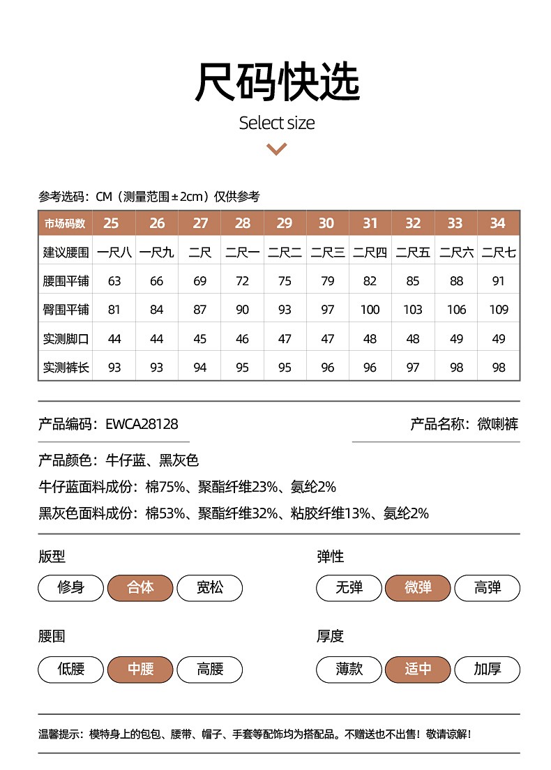 逸阳微喇牛仔裤女2023年春秋季新款高腰牛仔裤女修身显瘦喇叭裤8128