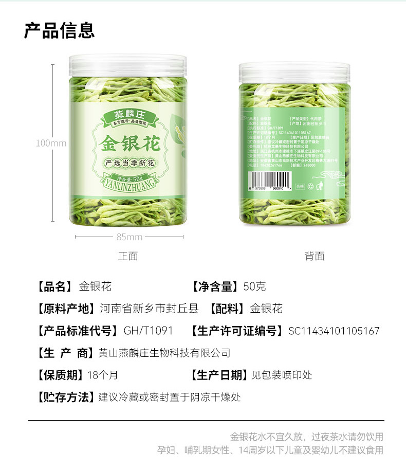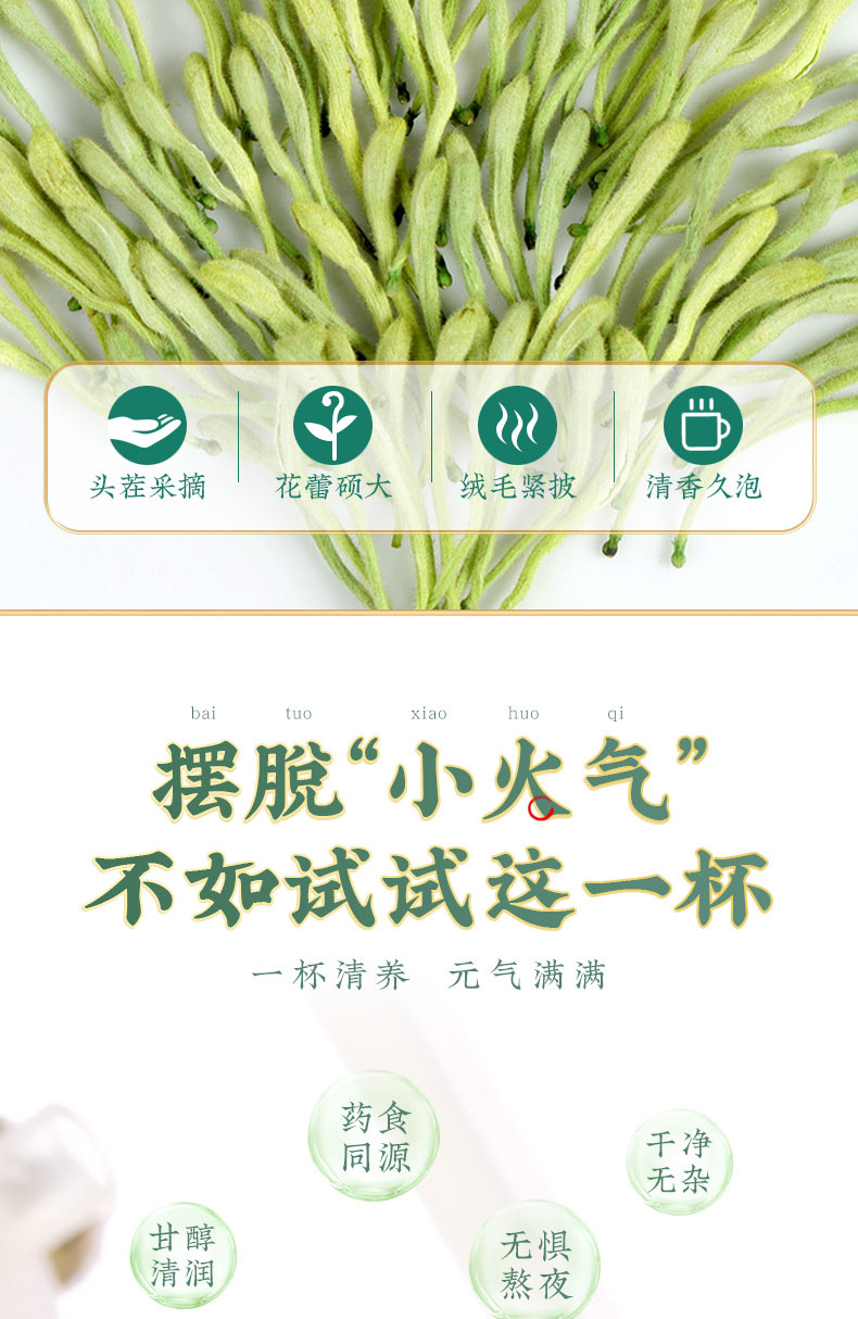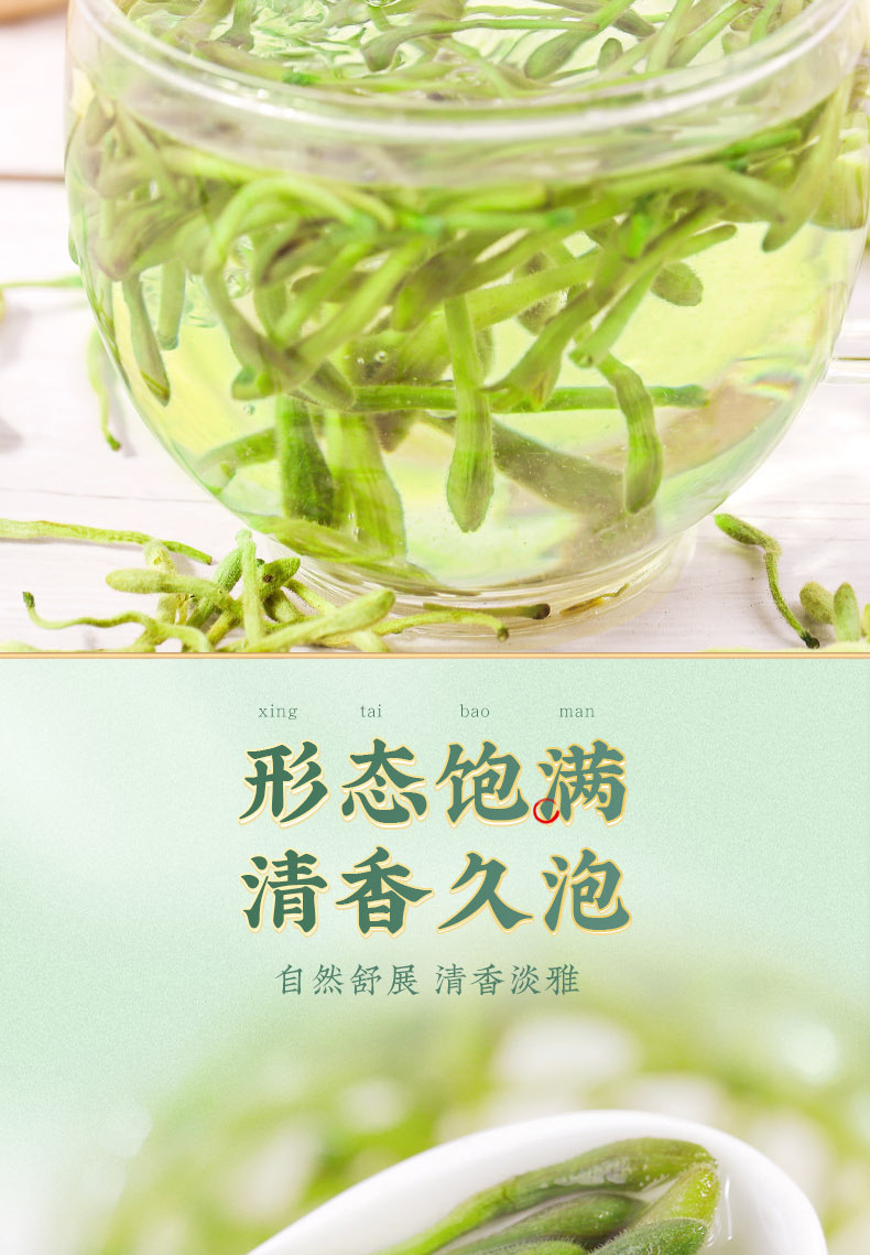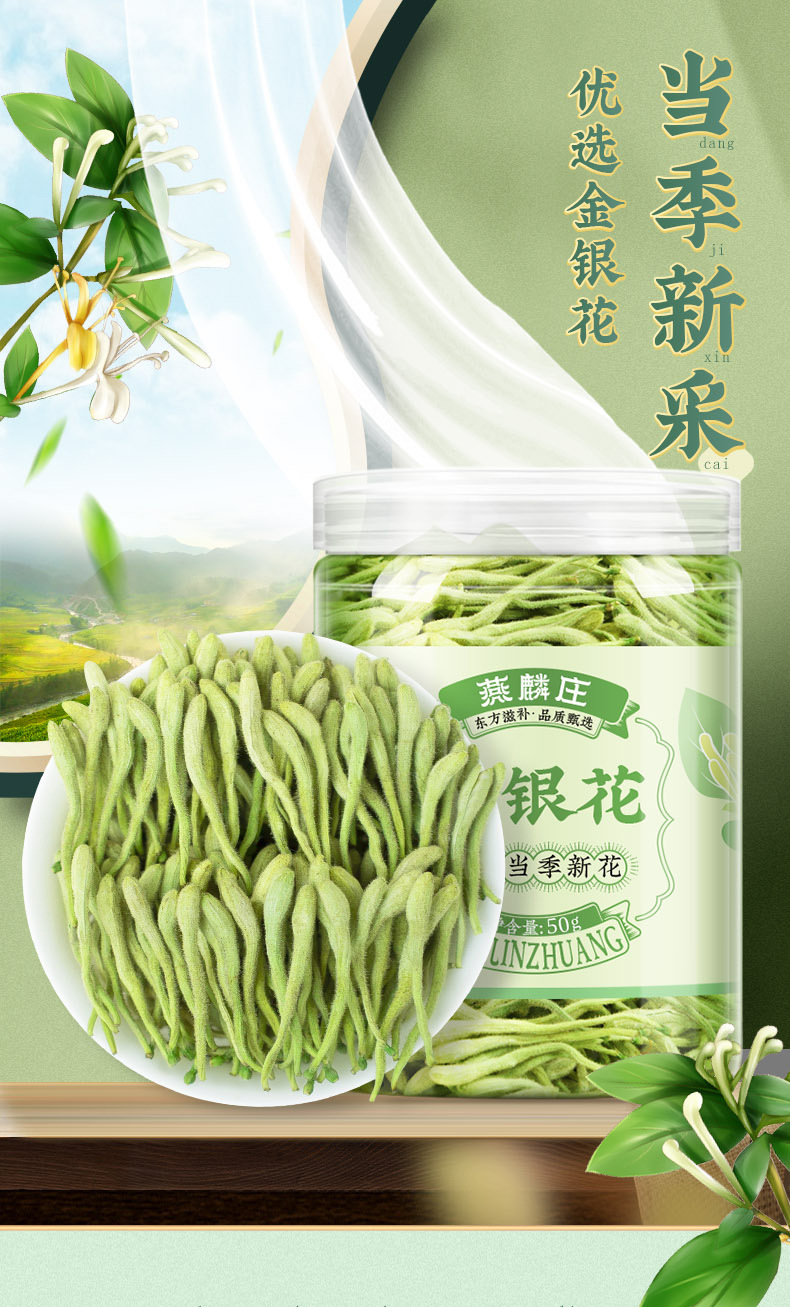 【当季新采,优选金银花】金银花茶50g罐装层层筛选严格把控,传统干燥呈现产品本色,金银花干配菊花茶养生茶茶叶入口清新舒爽回味悠久QQ