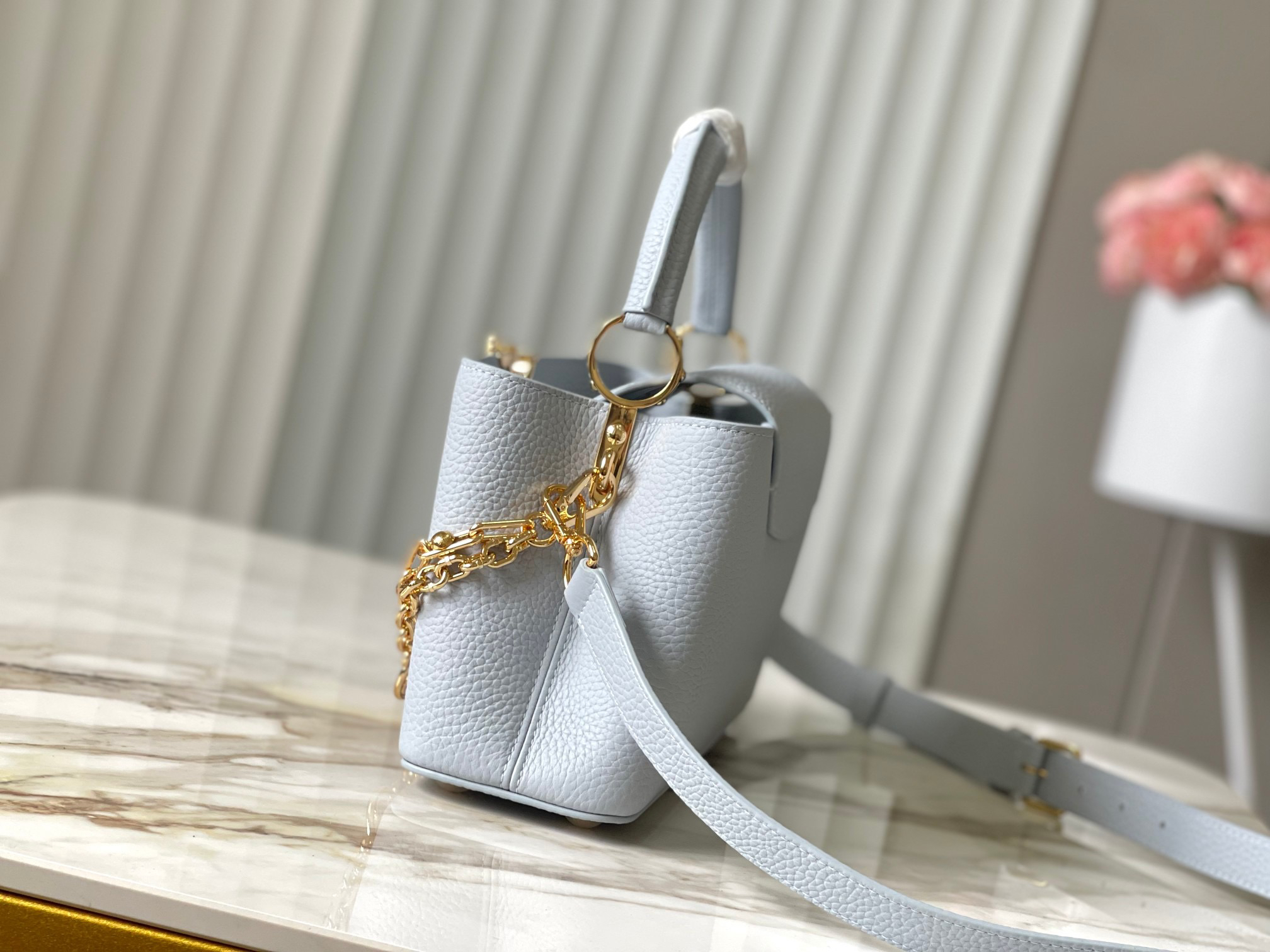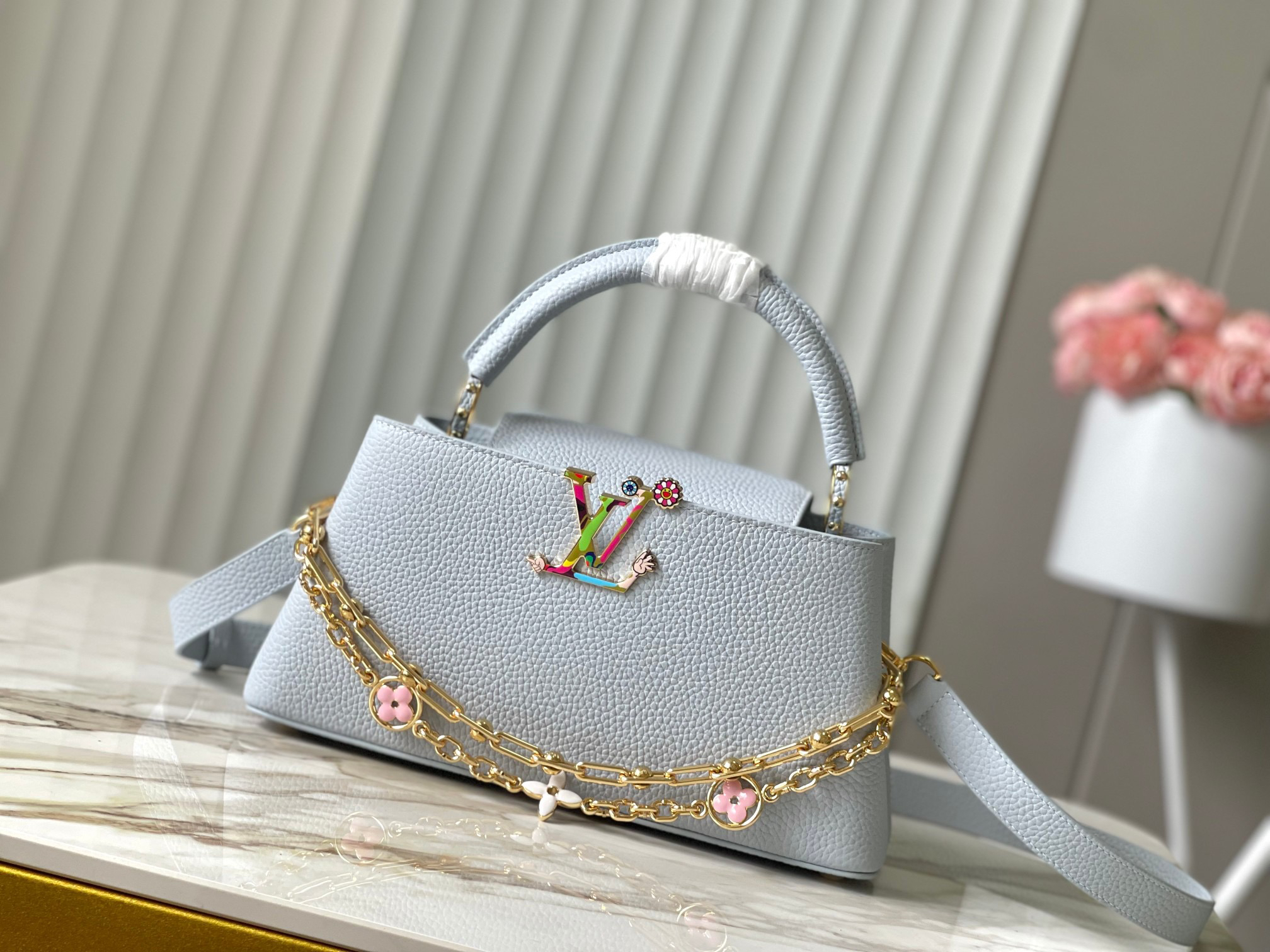秋冬特惠💰1750 渠道级LV 新品 te级LV 动态芯片 M13707/48865浅灰蓝彩虹二合一链条款 本款Capucines East West手袋