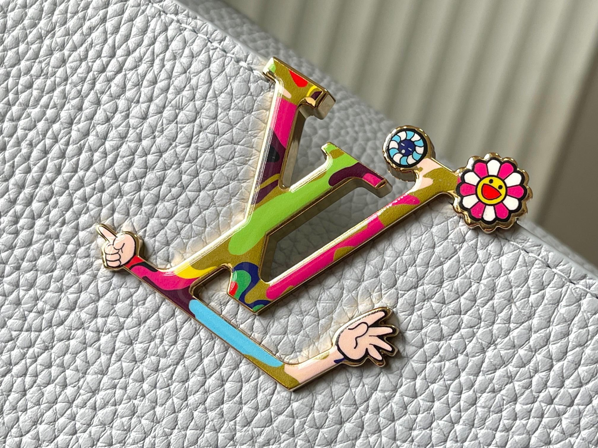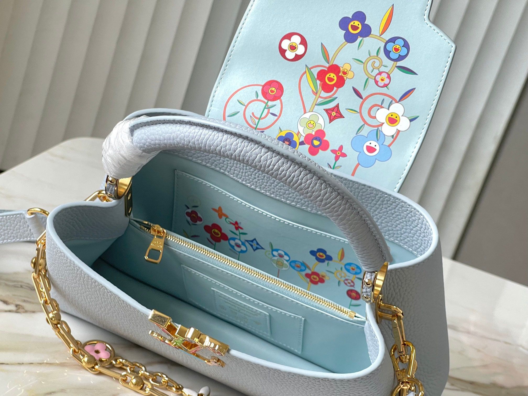 秋冬特惠💰1750 渠道级LV 新品 te级LV 动态芯片 M13707/48865浅灰蓝彩虹二合一链条款 本款Capucines East West手袋奏响路易威登x村上隆再版系列的明丽乐章 雅致Taurillon 牛皮革致意村上隆标志性的彩虹色系 LV字母与链条之上的 Monogram 花卉元素巧妙再现艺术家的“超扁平”风格Size : 30 * 19 * 9 cm