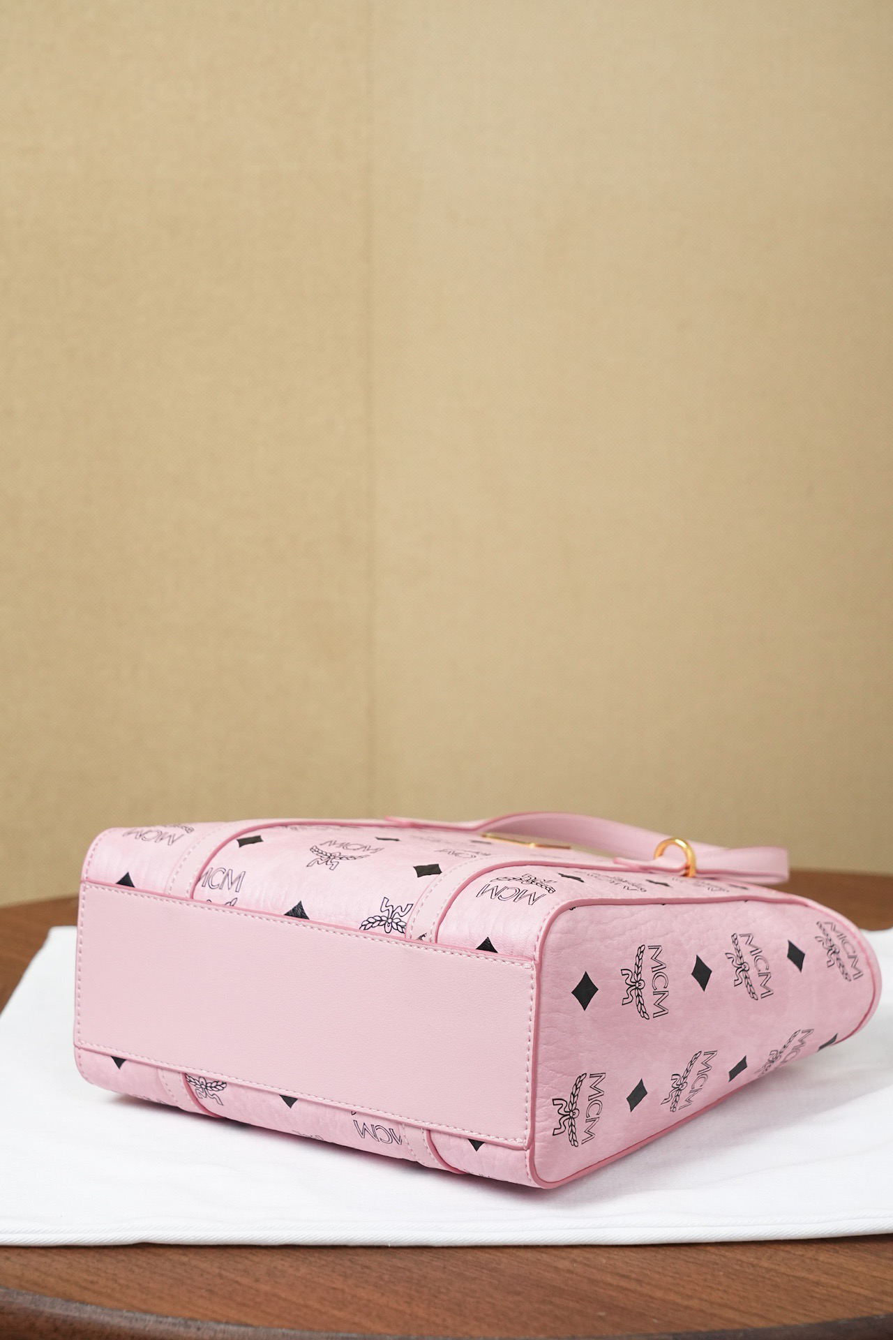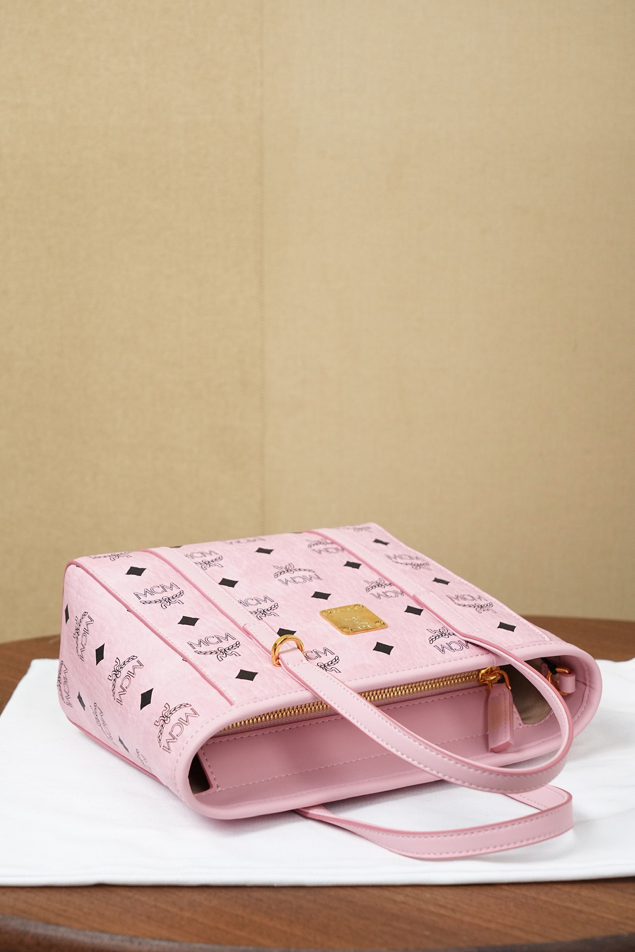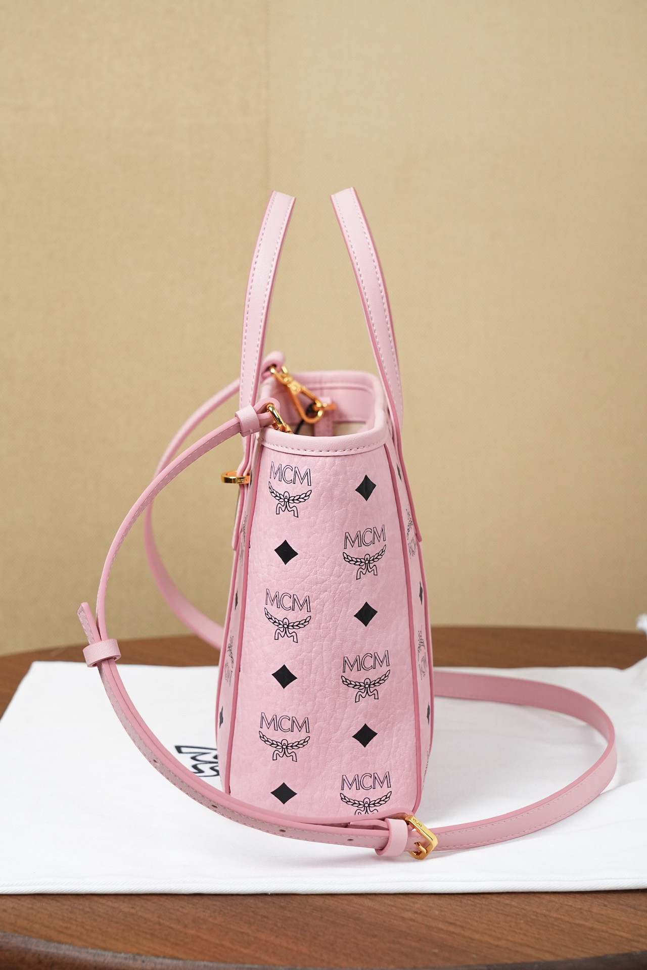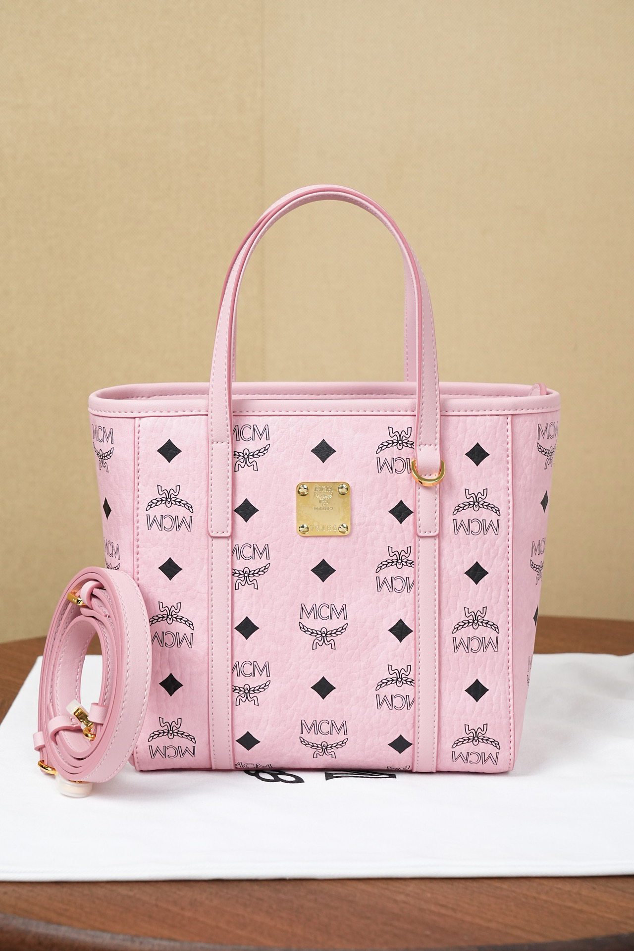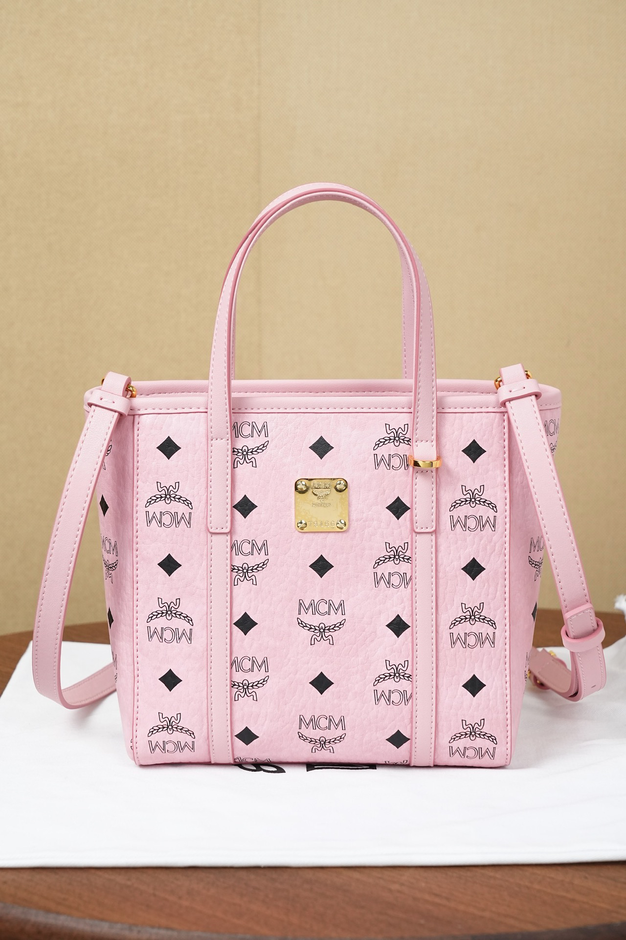 秋冬特惠💰760 原单MCM 原厂皮 桃花粉购物袋菜篮子MWPFSMT06PZ 桃花粉老花满印