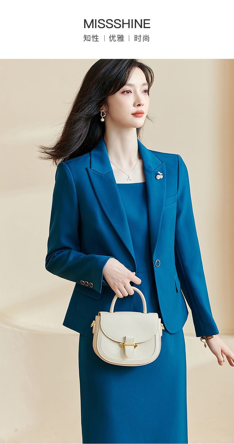 剩S 芳外2024秋季新款通勤OL风净色西装修身显瘦一粒扣长袖外套2431