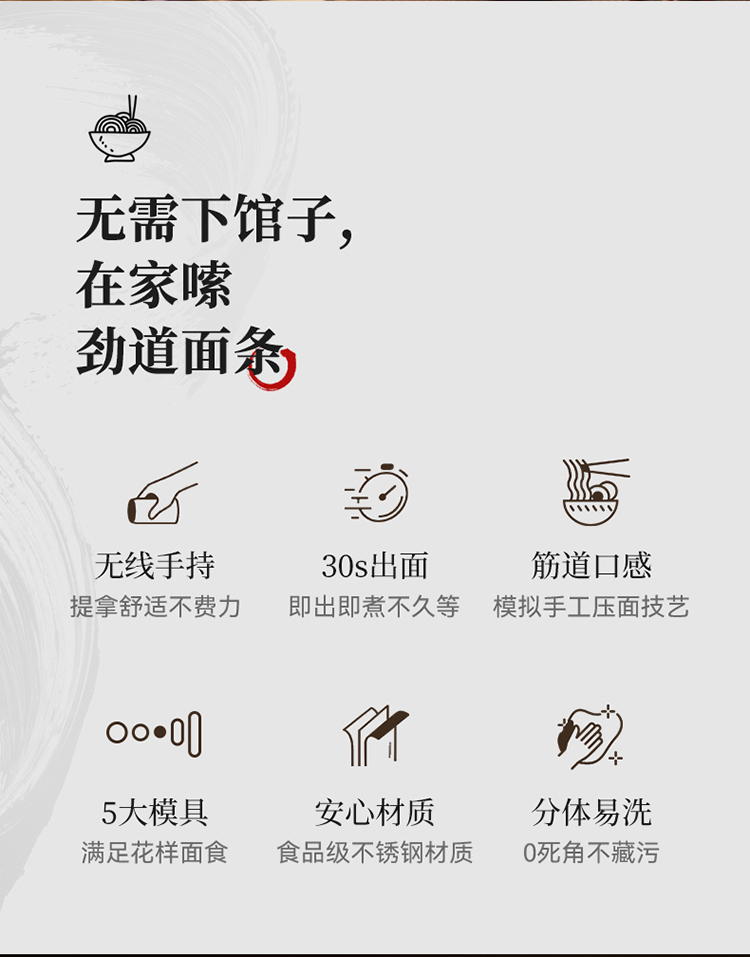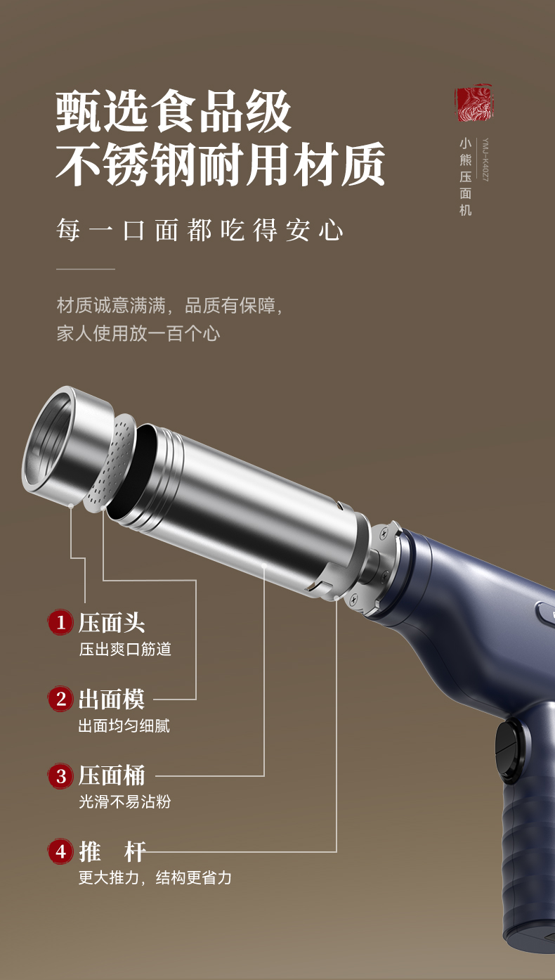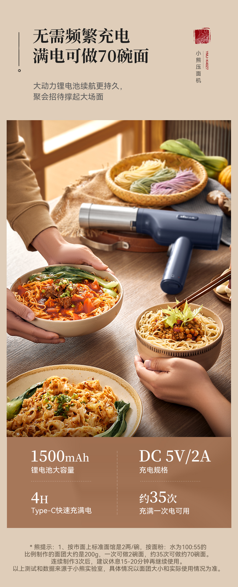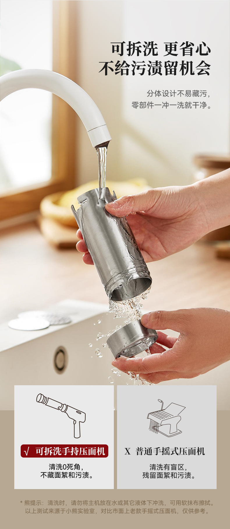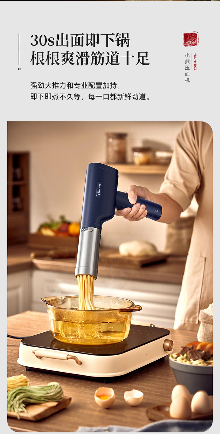 【30S自制手工面】小熊无线手持面条机YMJ-K40Z7 家用无线压面枪 自制无添加手工面 即出即煮 配5大模具 可拆洗