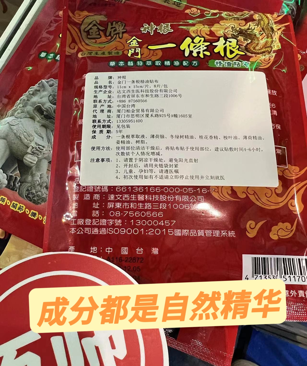 【产品名称】:金门一条根精油贴布
