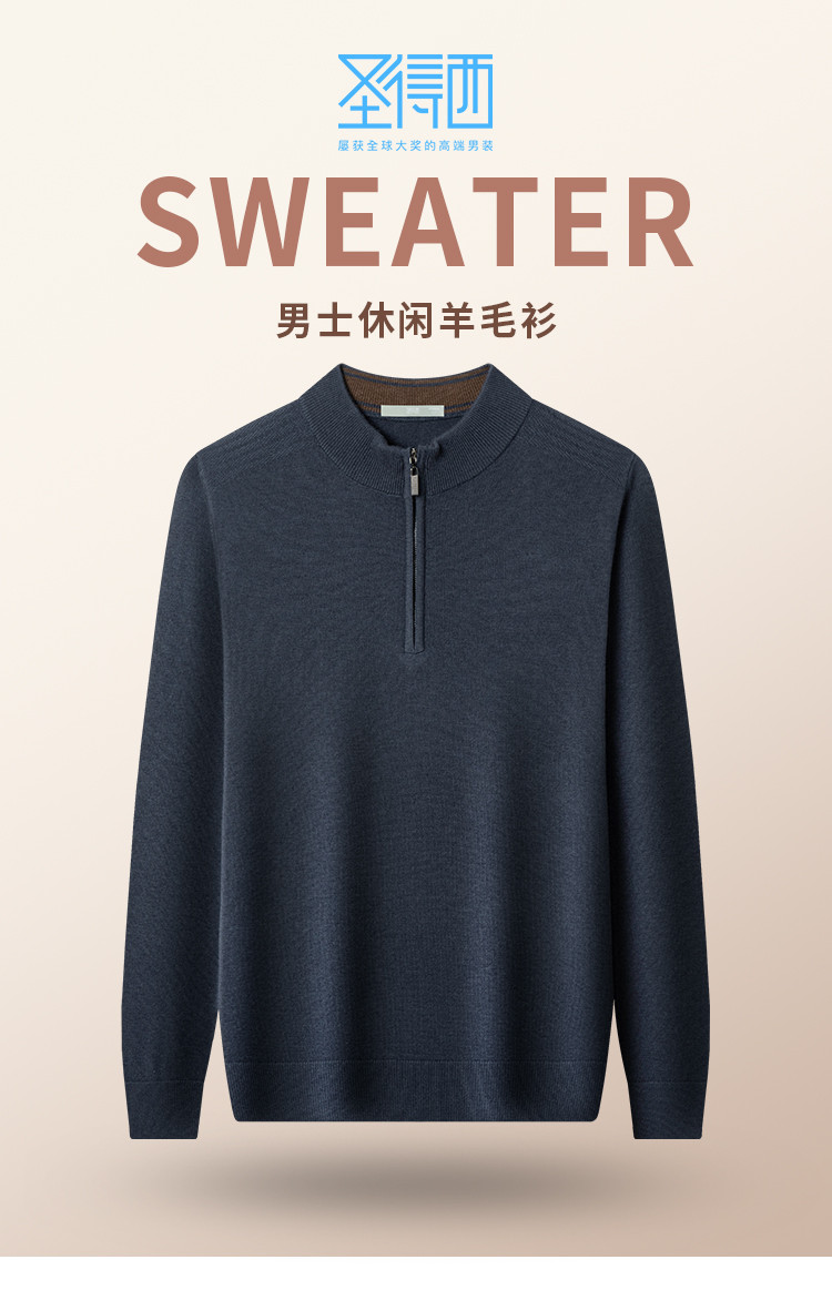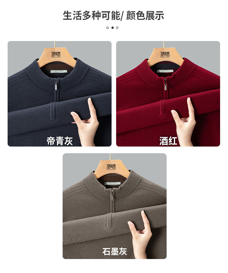 【100%绵羊毛】25早春男士半高拉链羊毛衫多色可选舒适好穿