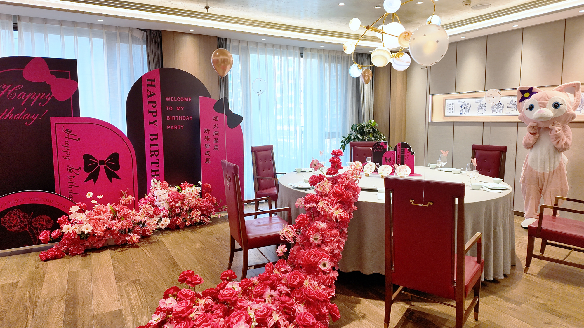 套餐包含:生日宴主题背景装饰+主题瀑布花海+定制生日面+全家福照片+定制礼物+生日玩偶送祝福+生日宴挂幅布置+生日宴挂幅布置+生日宴主持祝福仪+电子照片+生日宴视频剪辑