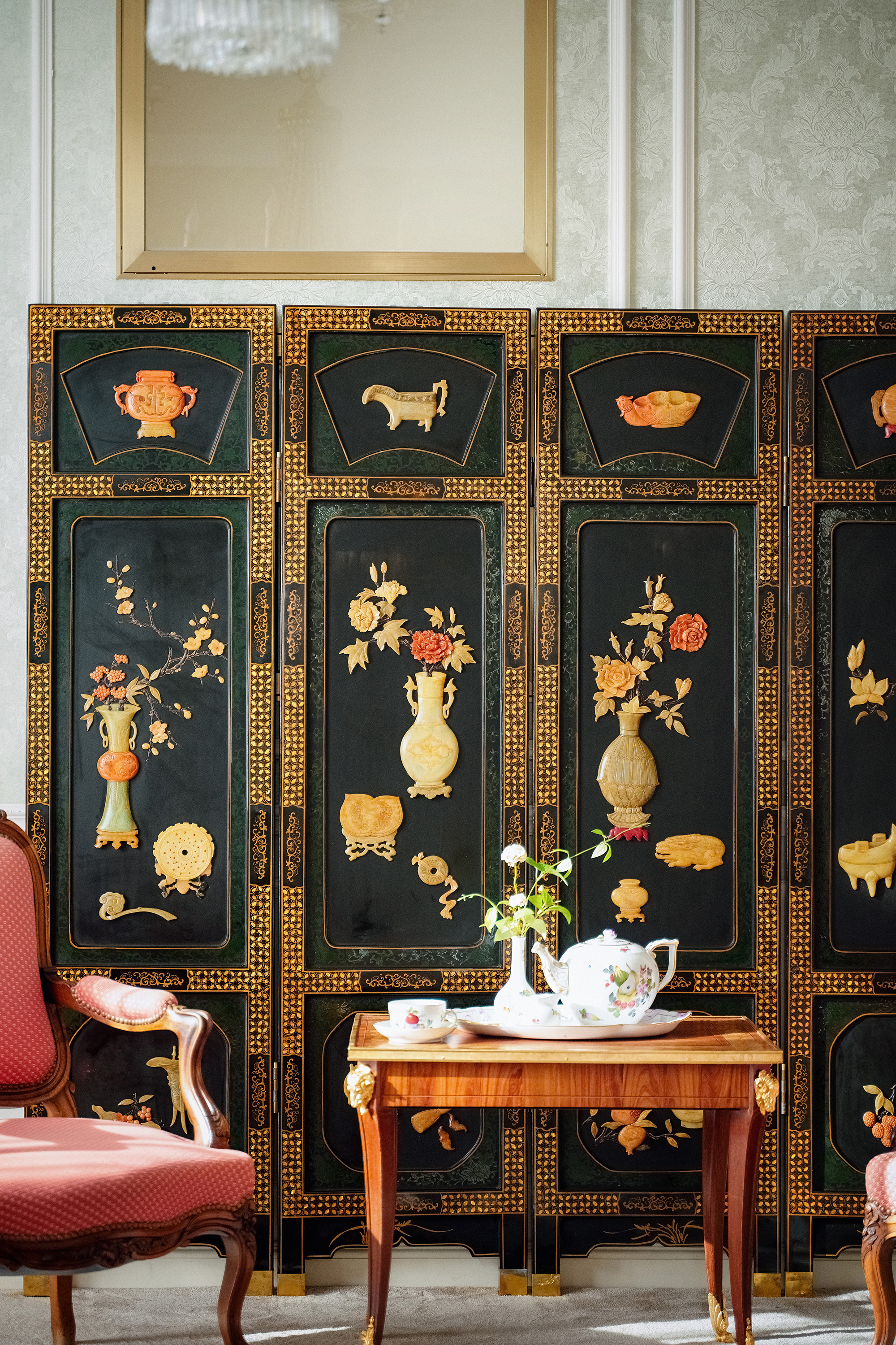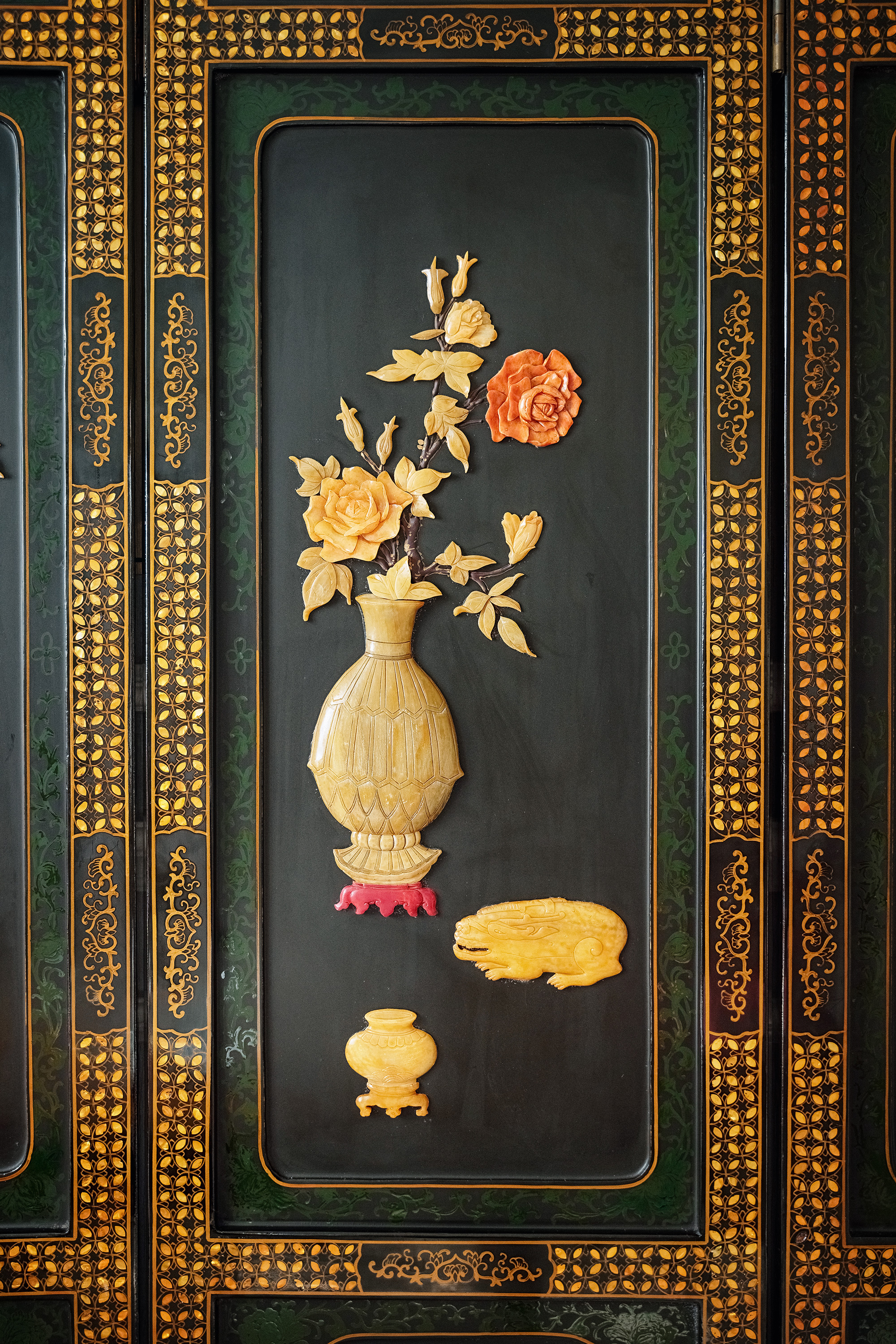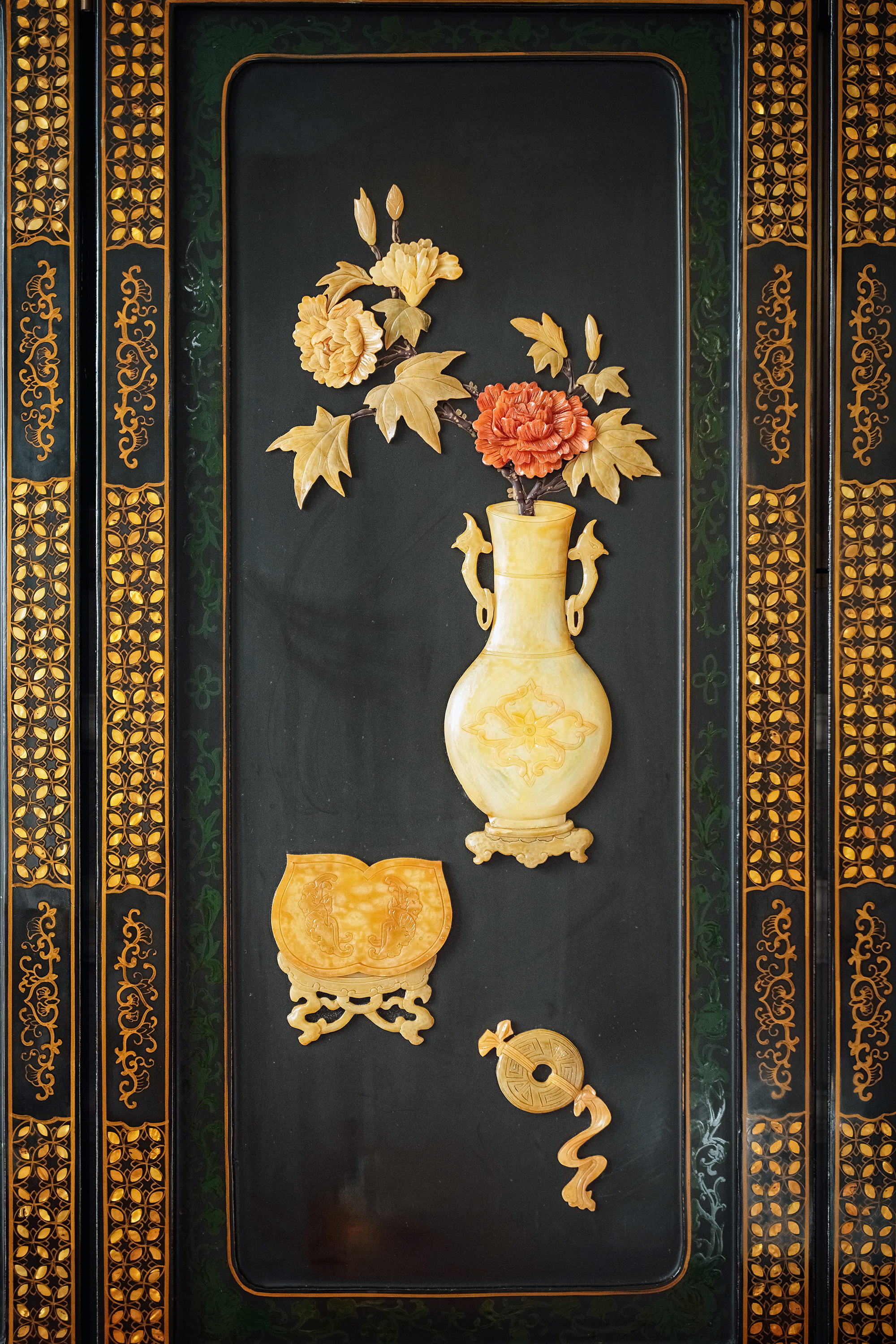 材质: 木胎大漆,百宝镶嵌