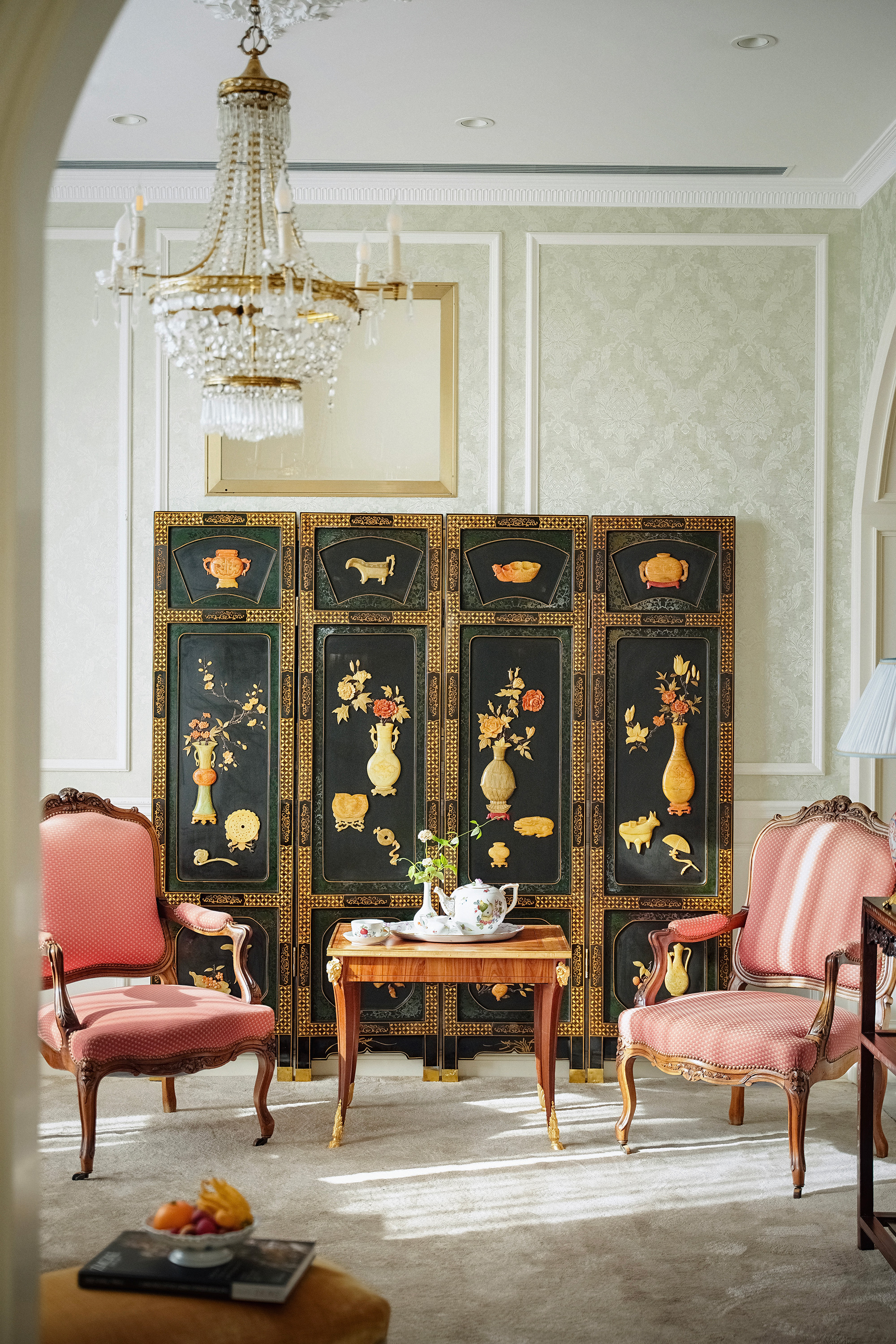 20世纪50-70年代中国创汇时期出品黑漆地百宝嵌博古纹四扇屏风