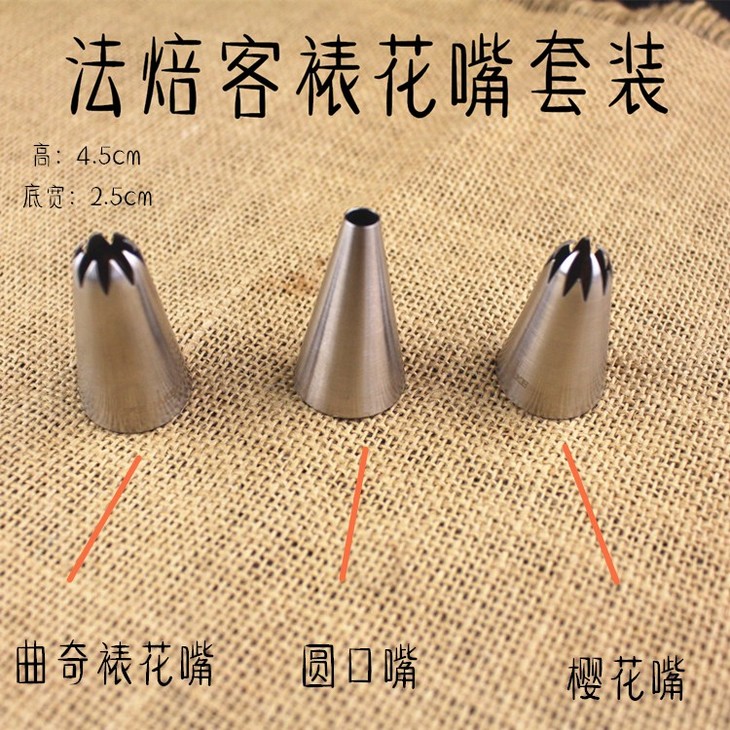 法焙客裱花嘴套装(3粒装 )8齿花嘴、圆孔花嘴、樱花花嘴*1