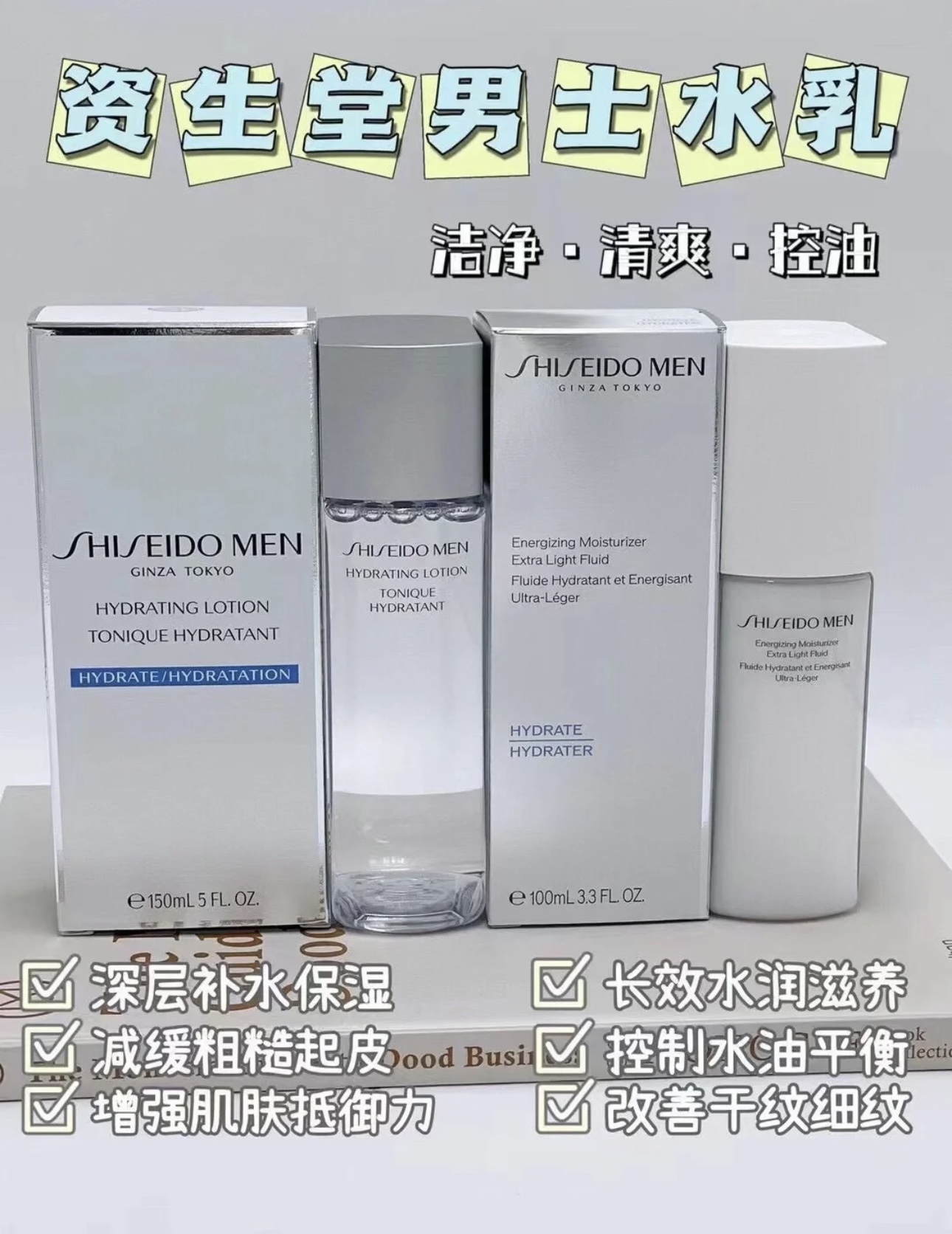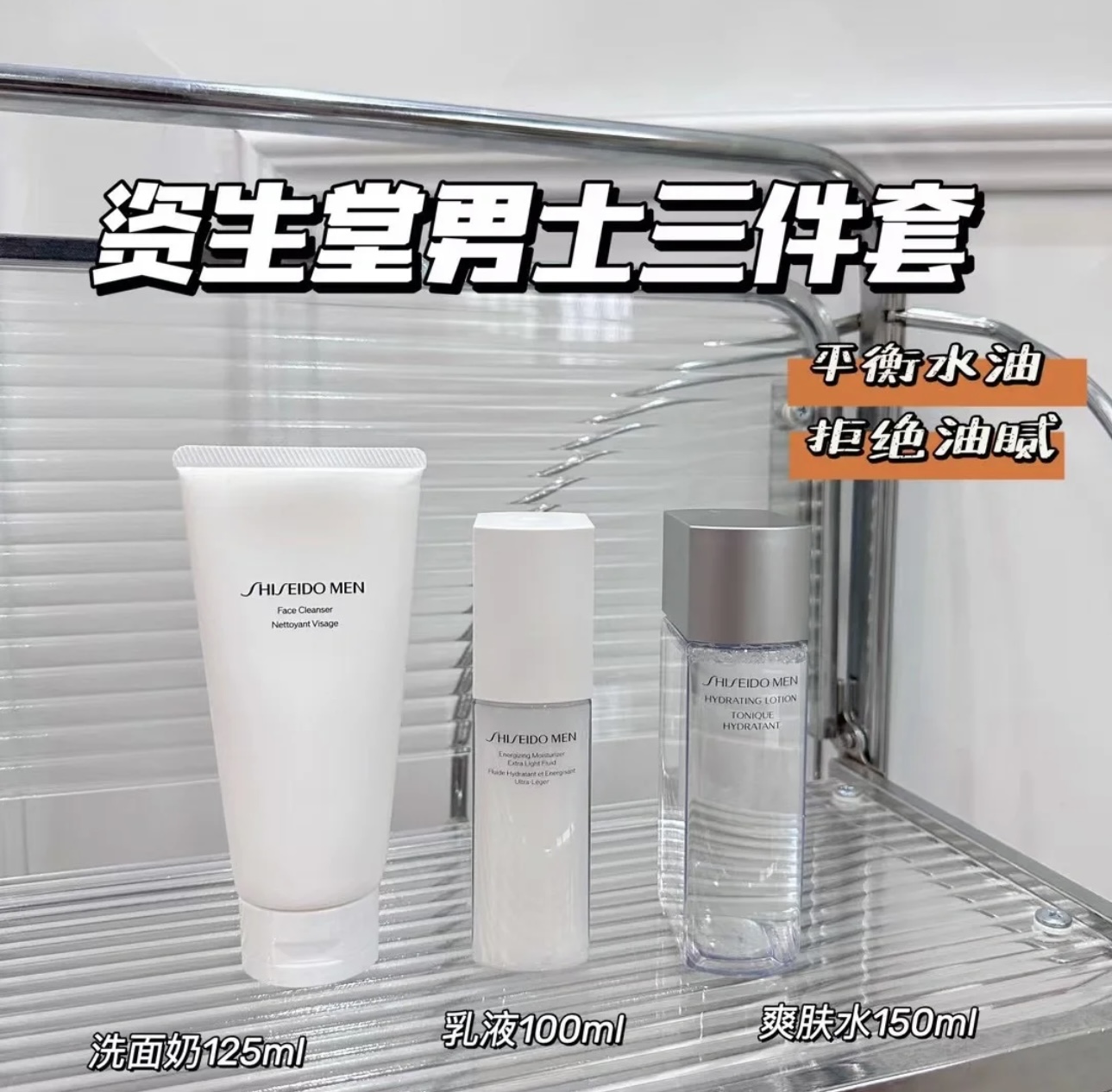 日本Shiseido/资生堂男士水乳护肤套装 爽肤水150ml+乳液100ml+洗面奶125ml 两件套舒缓补水保湿
