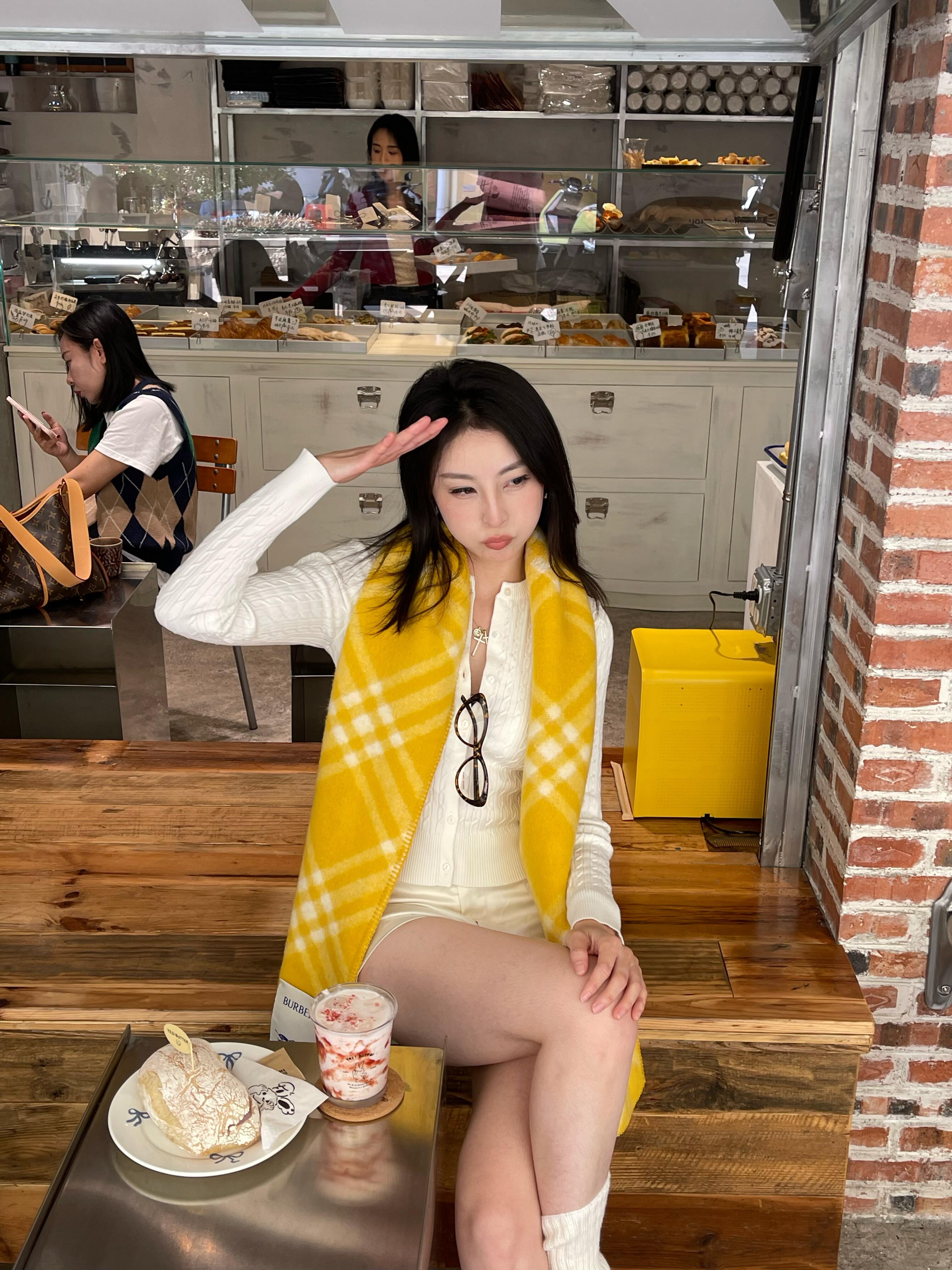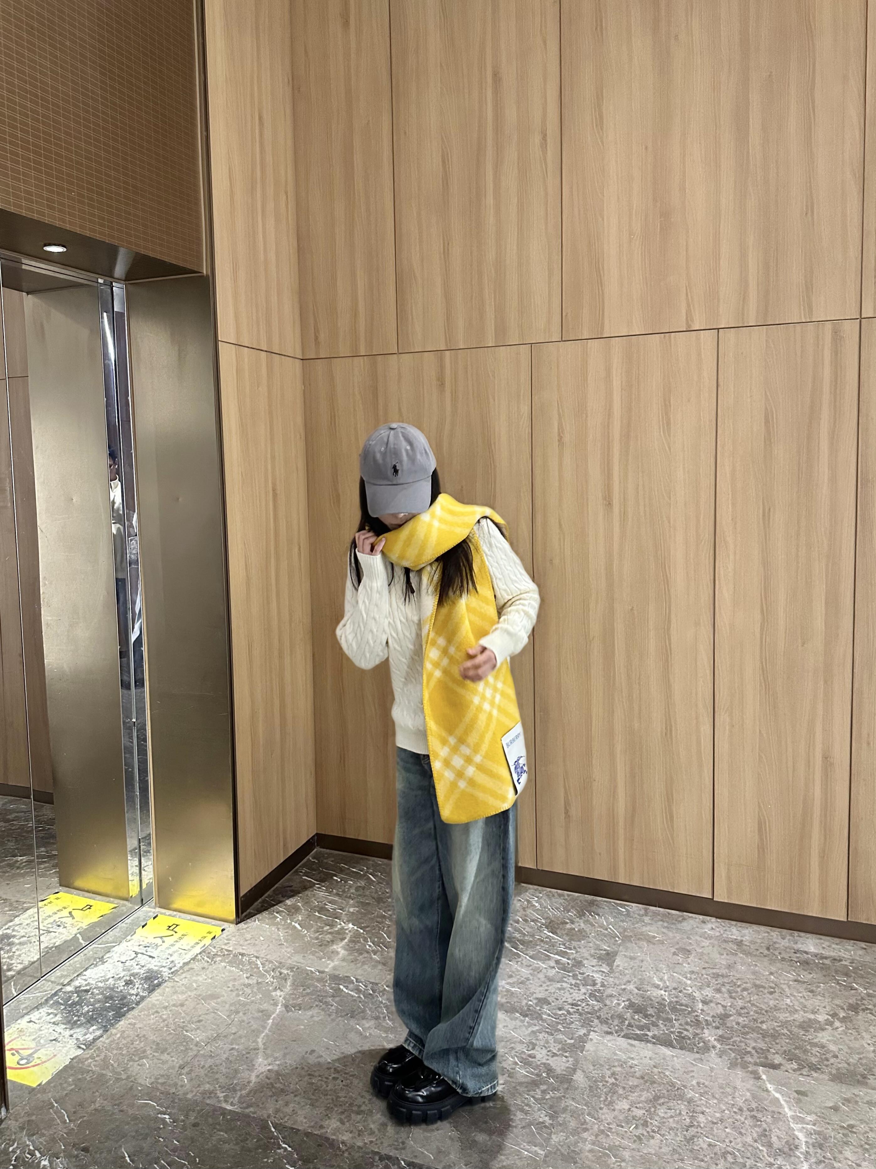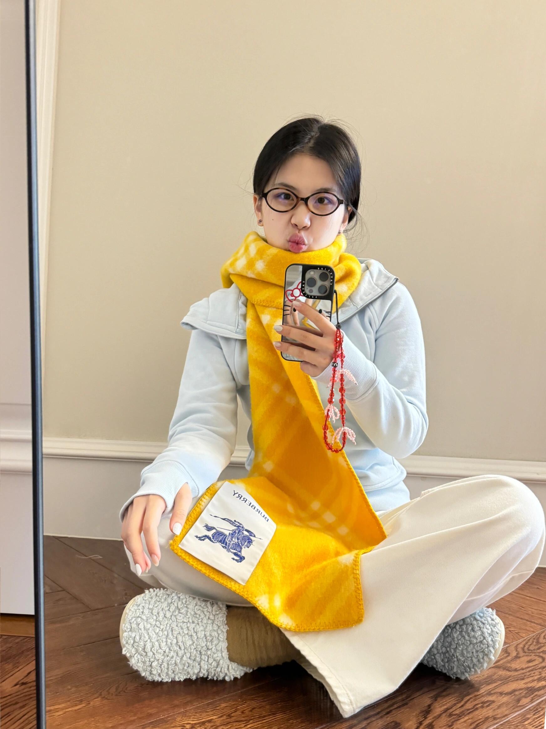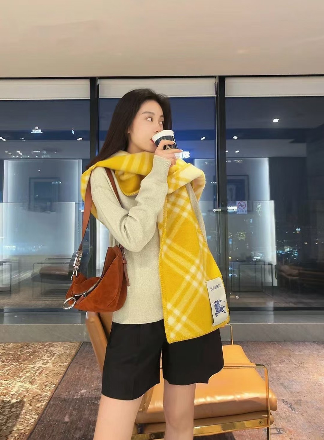 【代购级 出入专柜无压力】全智贤同款Burberry格纹围巾 柜子一上市就售罄 贵气大小姐style 黄色也太太出片了 氛围感穿搭 自带气场!