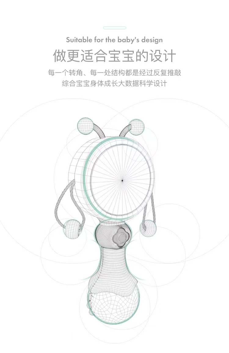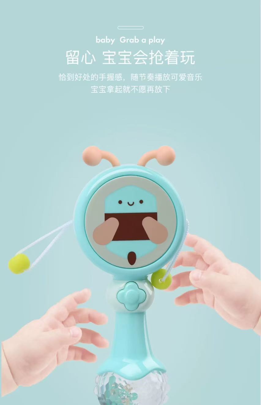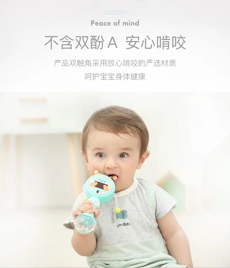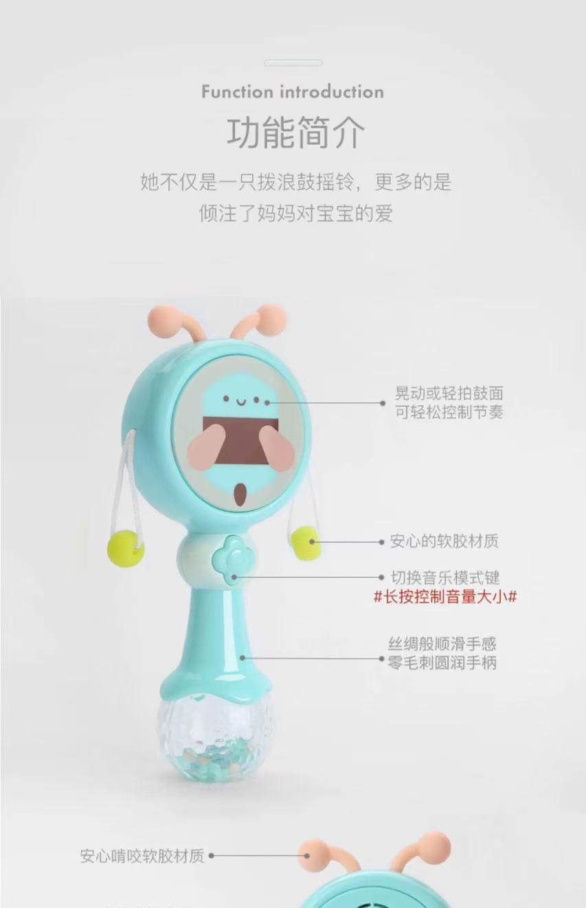 贝恩施婴儿拨浪鼓可啃咬 新生儿益智宝宝手摇铃音乐玩具3-6-个月