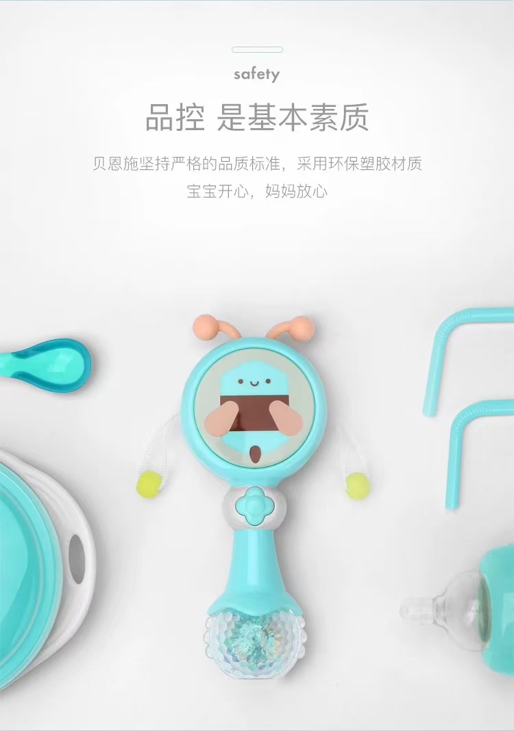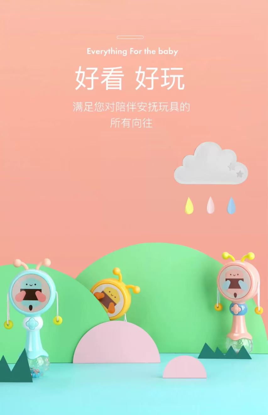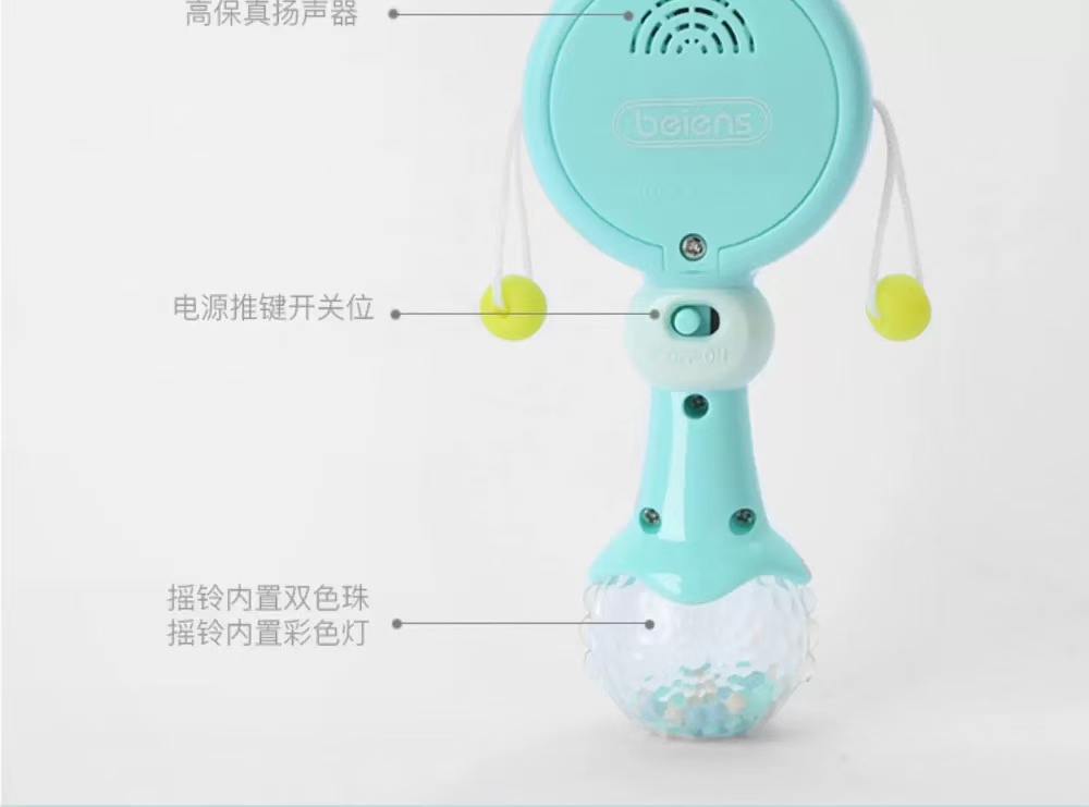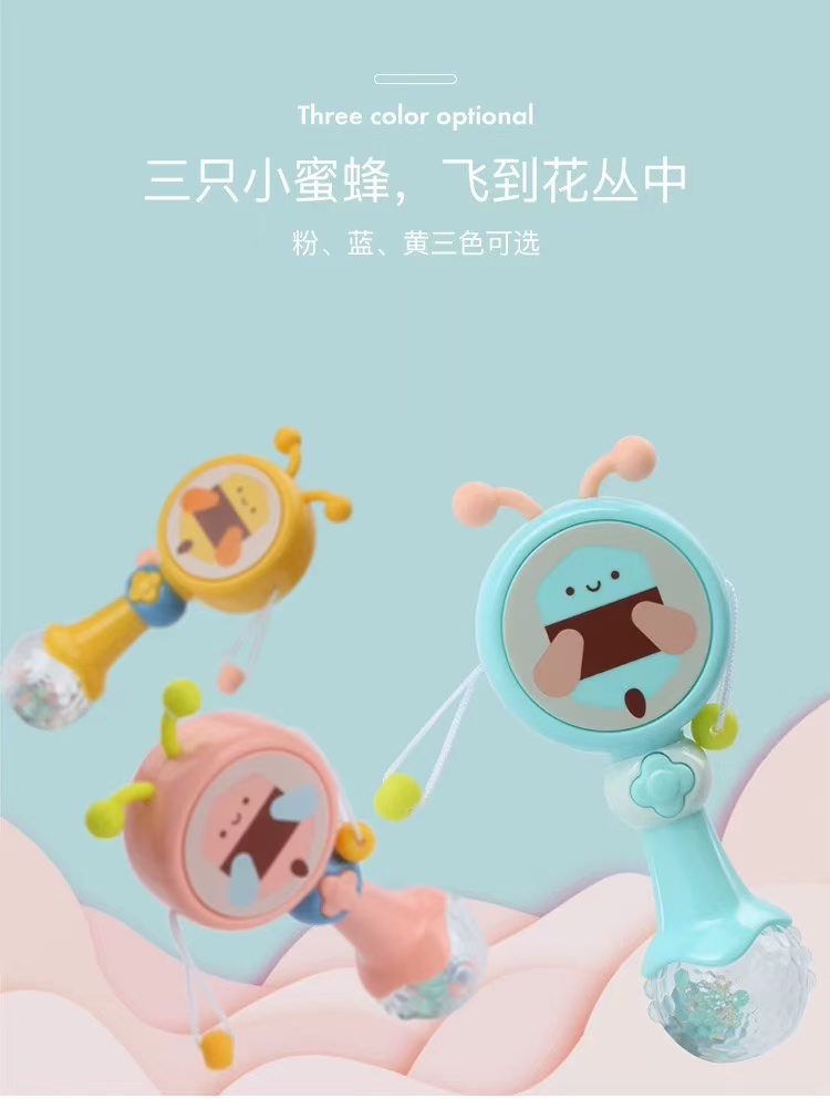 贝恩施婴儿拨浪鼓可啃咬 新生儿益智宝宝手摇铃音乐玩具3-6-个月